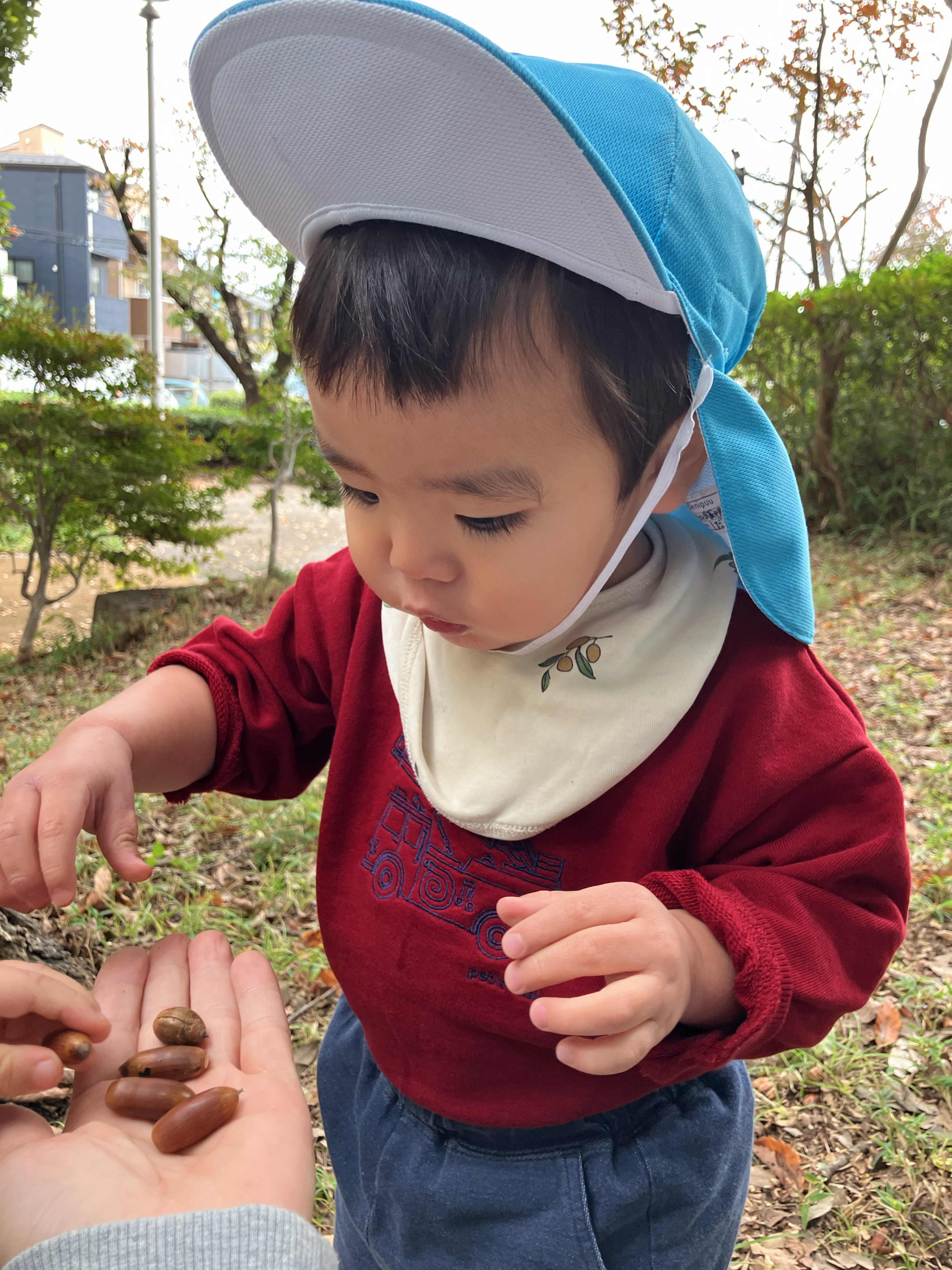 落ち葉の色を教えてくれたり、どんぐりを渡してくれた
