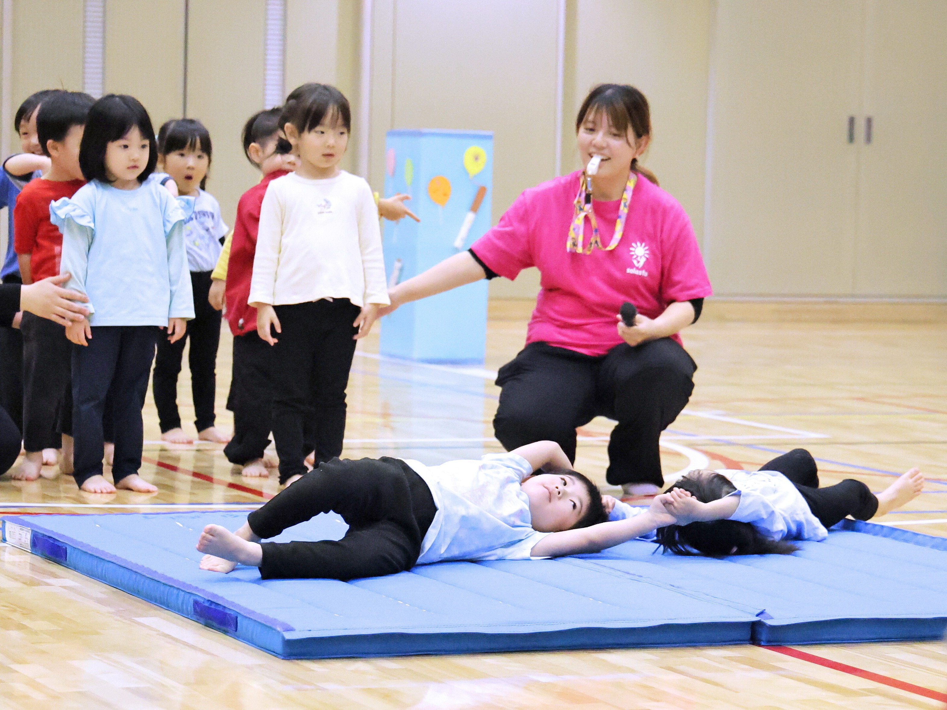 まずはお友だちと手をつないで、おいもに変身してコロコロ...。