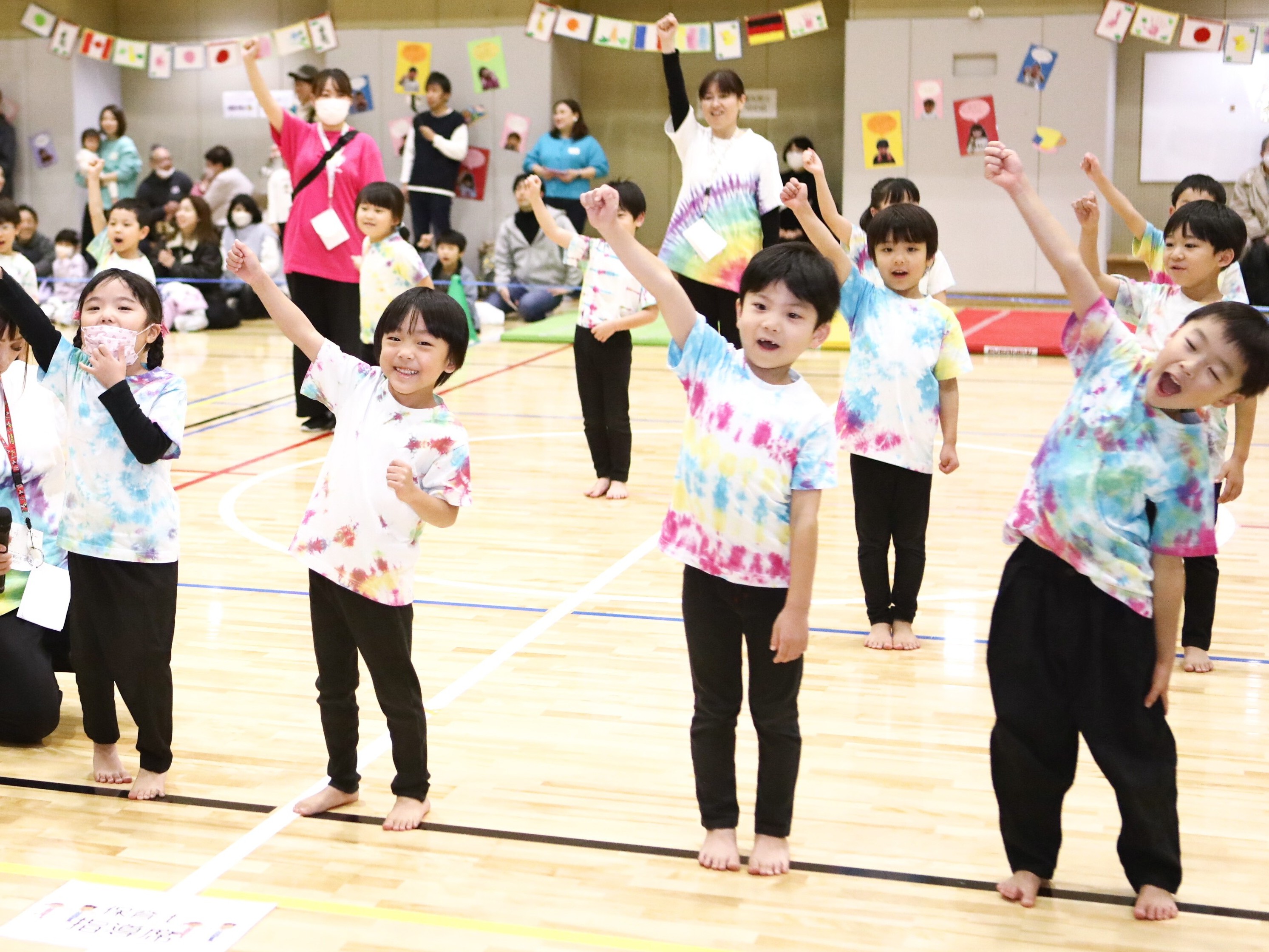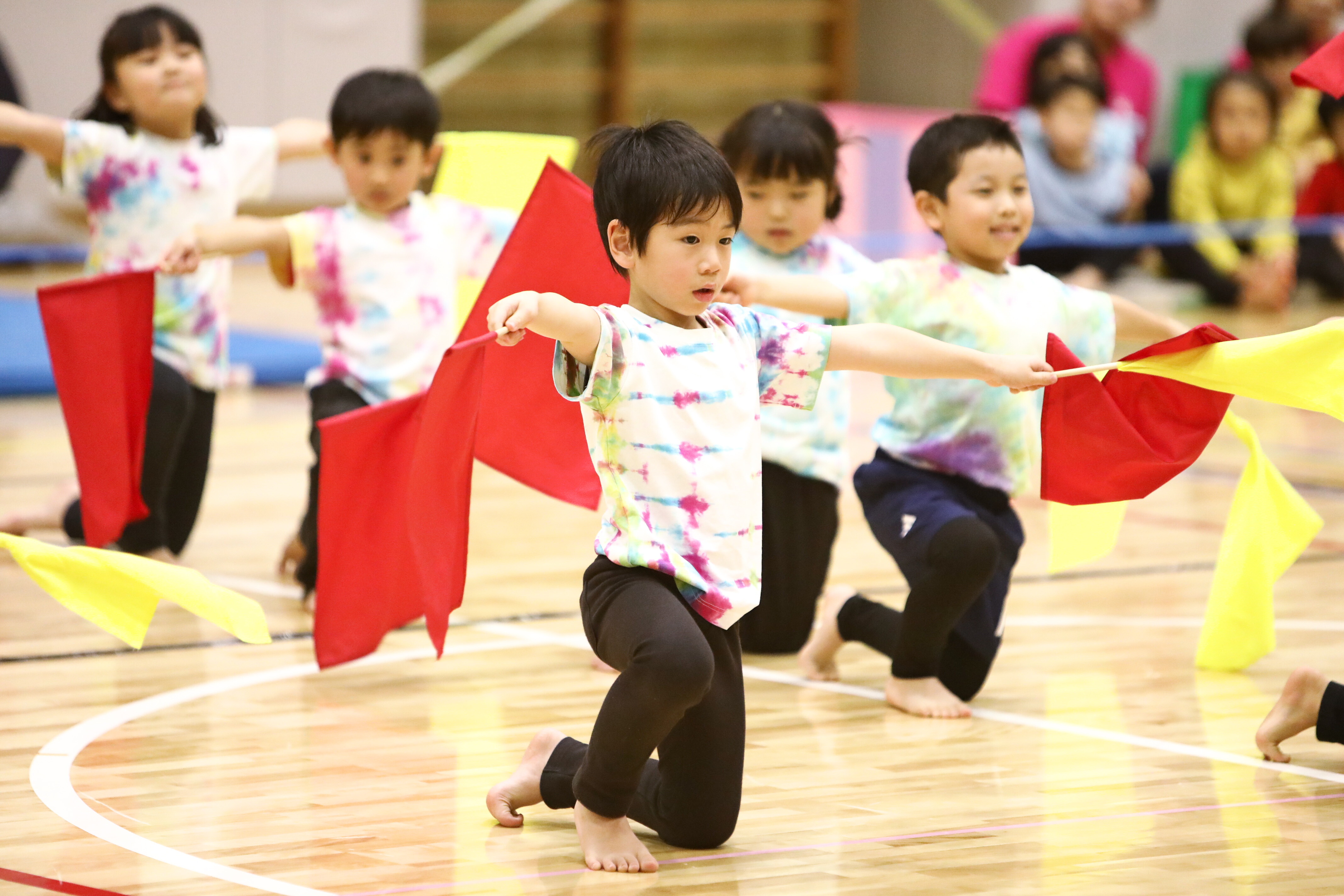 赤チーム黄チーム、気持ちを合わせて踊ったよ♫