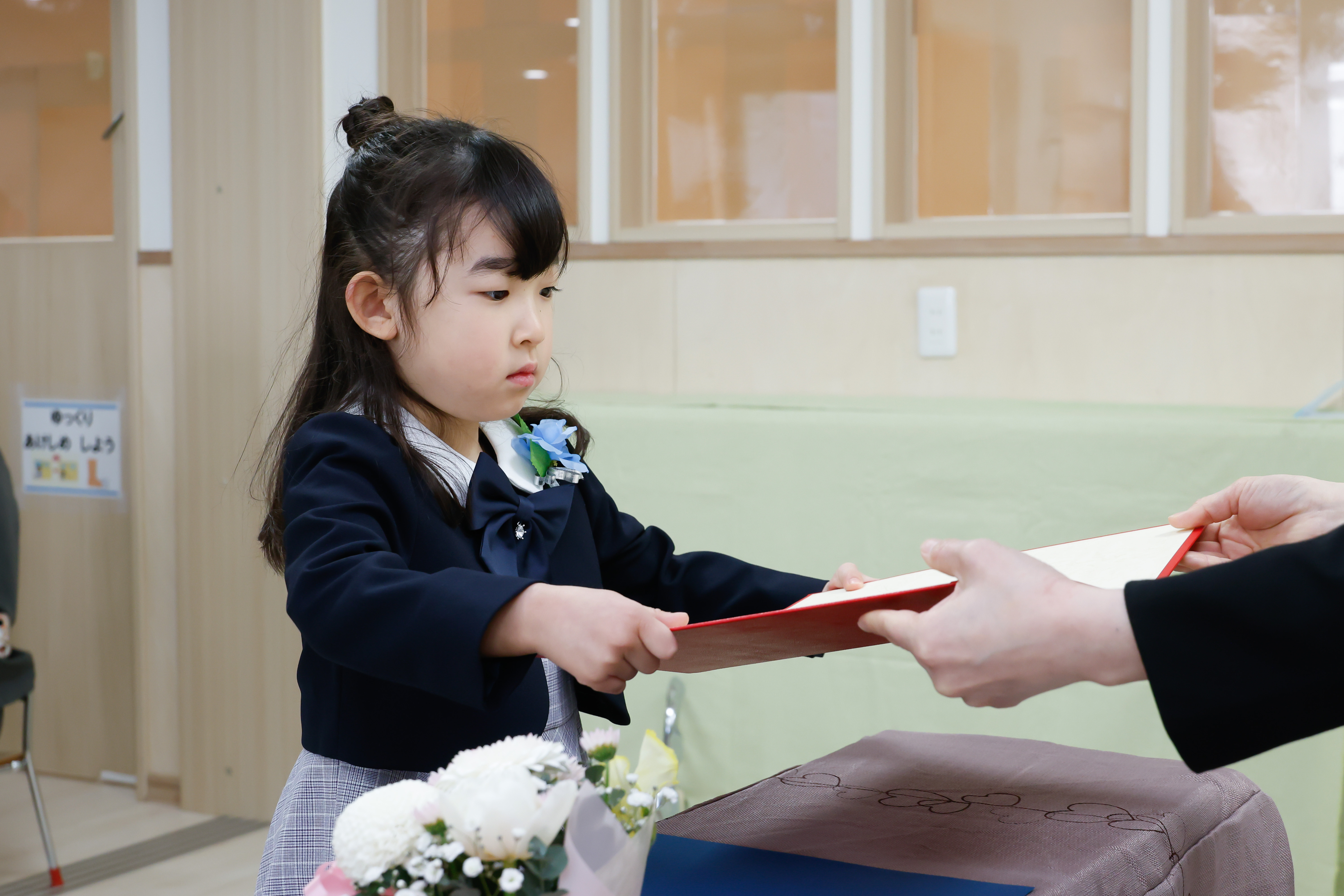 緊張を胸に、笑顔で卒園式を迎えます。