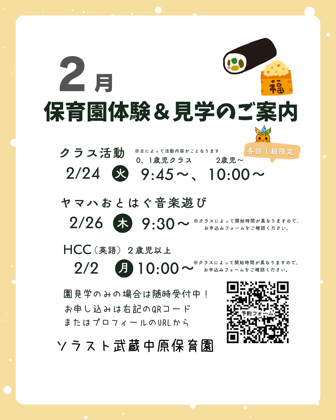 ソラスト武蔵中原保育園☆2月園体験・園見学のお知らせ☆