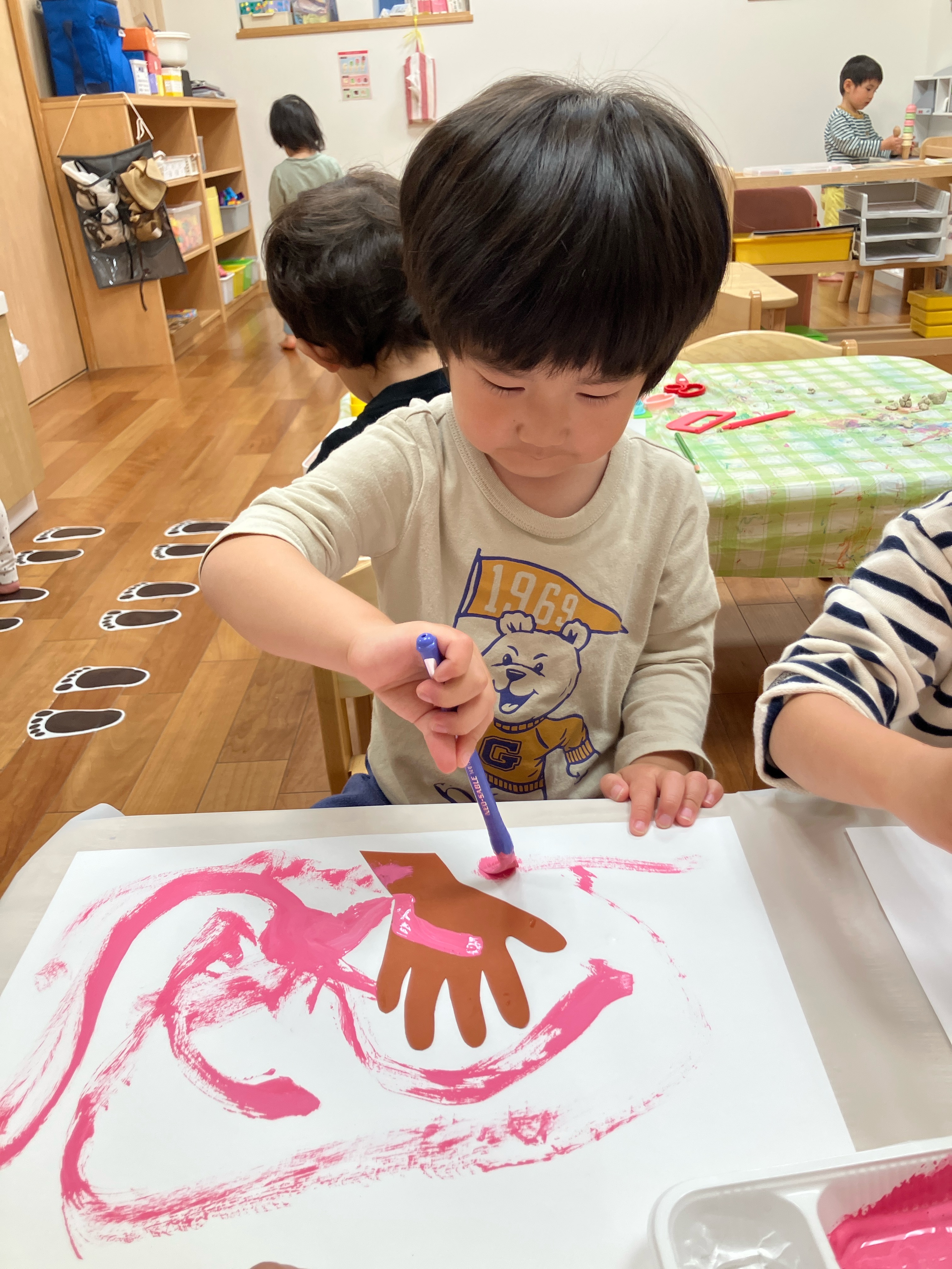 自分の手形を使って桜の木の製作をしました。