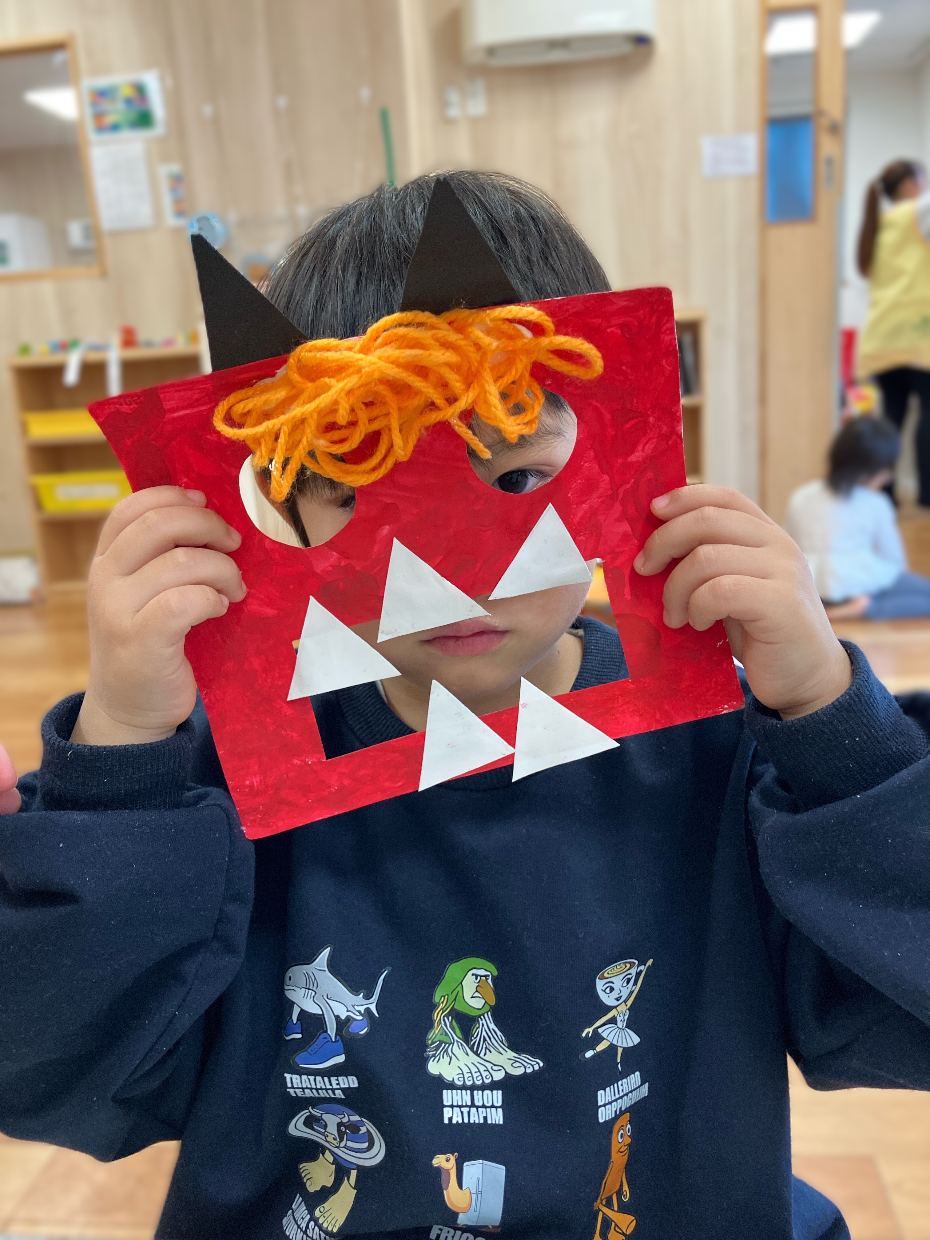 今回は鬼のお面を一緒に作りました!お面の色は自分の