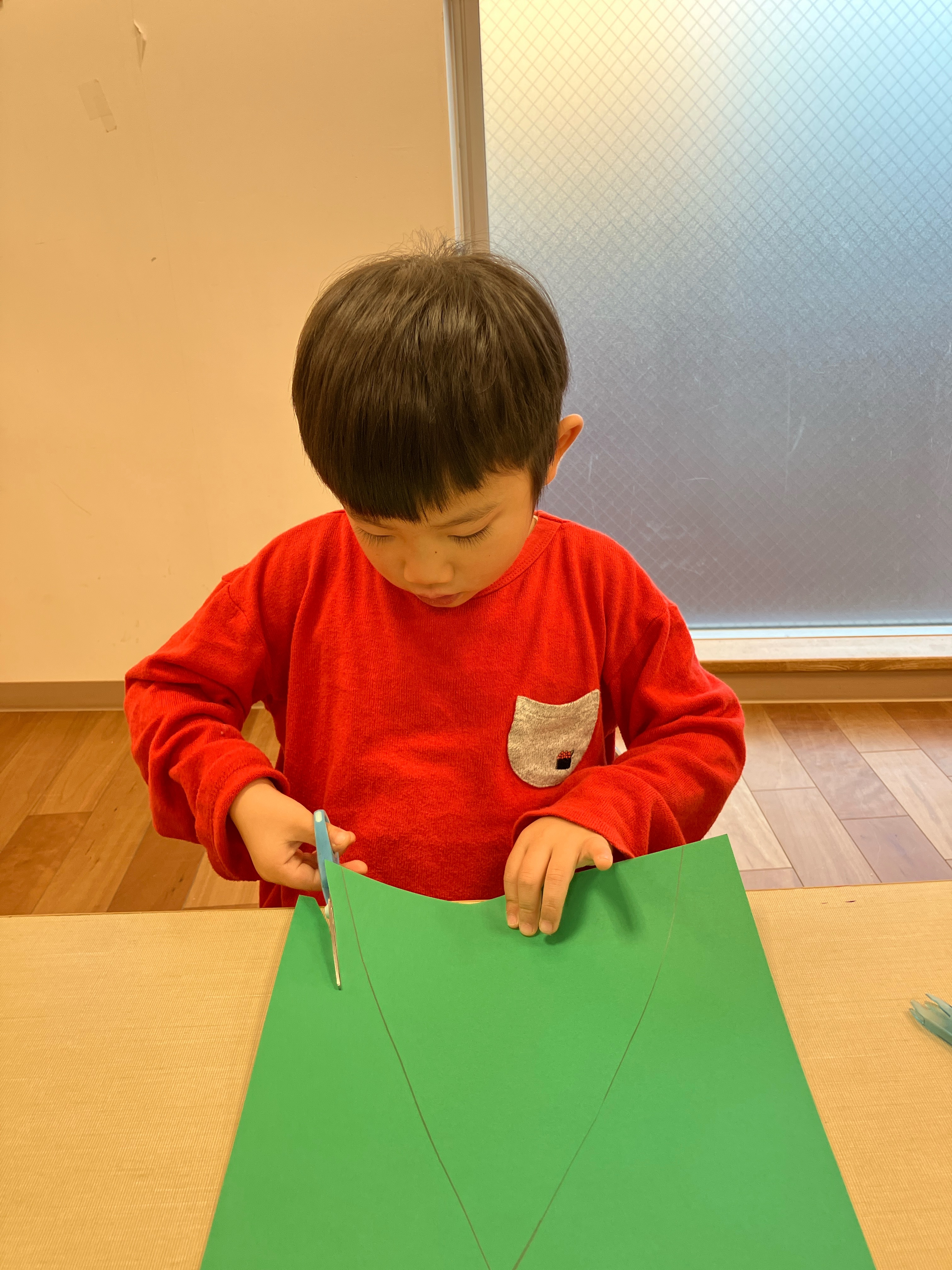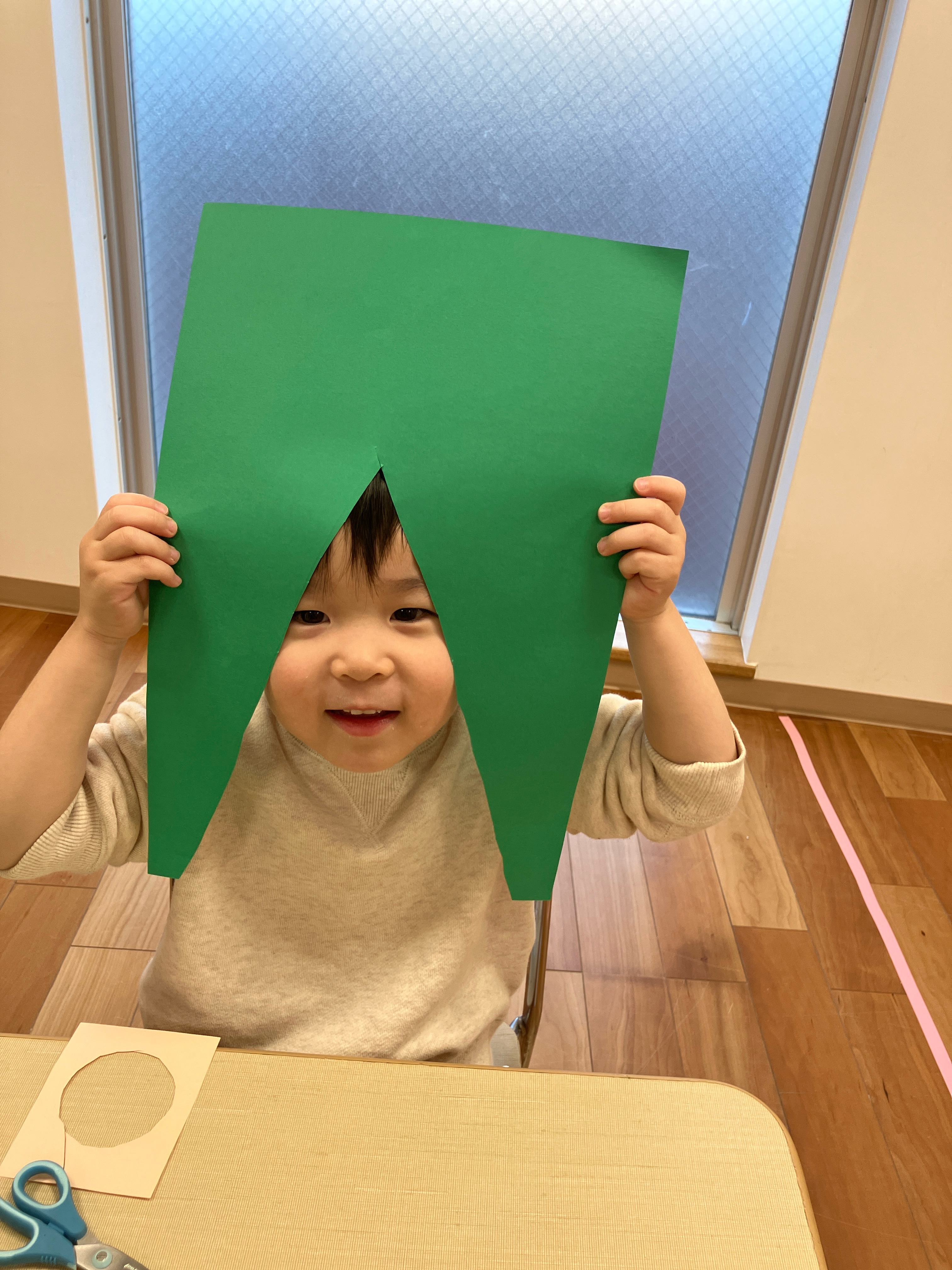 ました!ハサミを使って丸や三角の形に一生懸命切っ