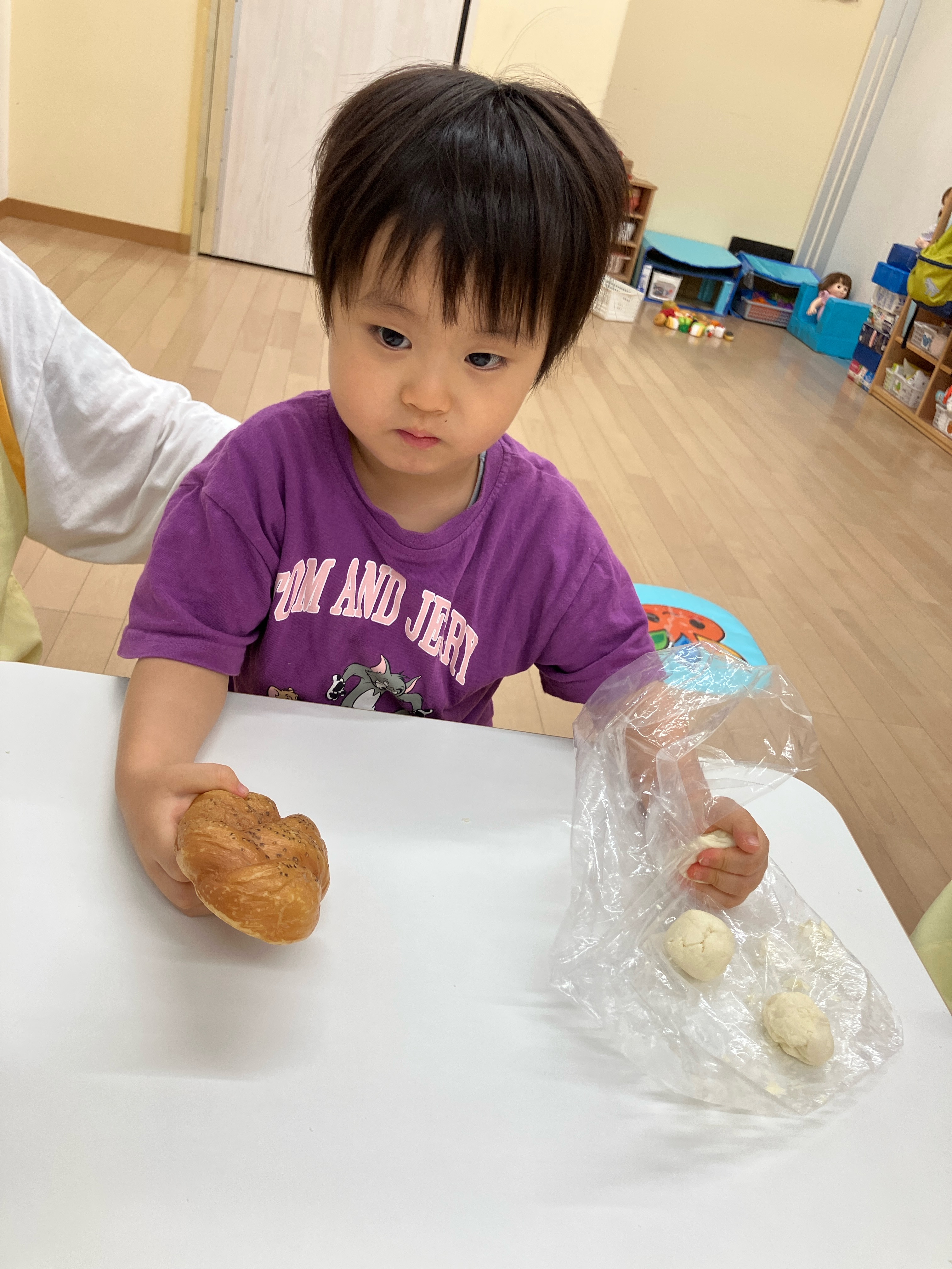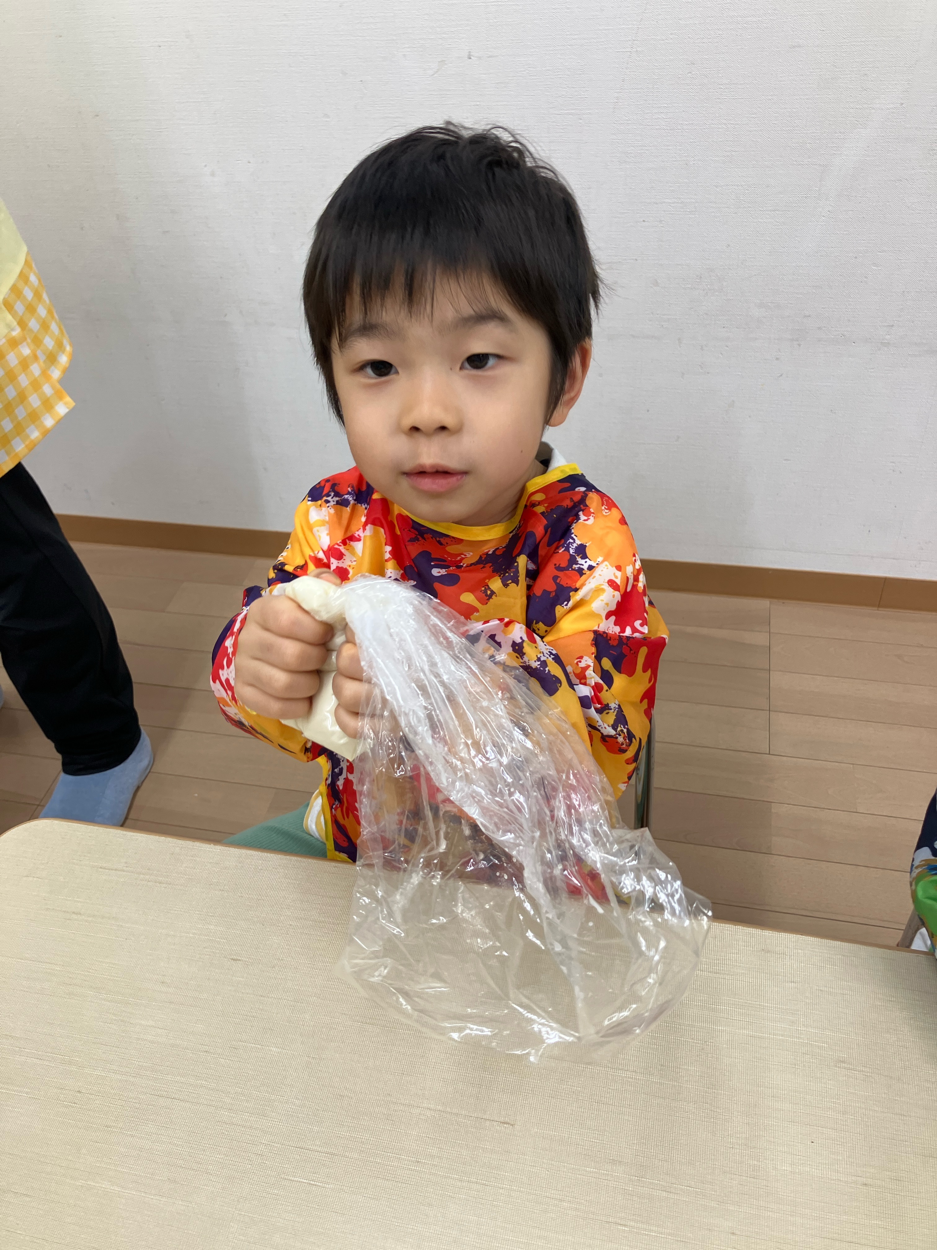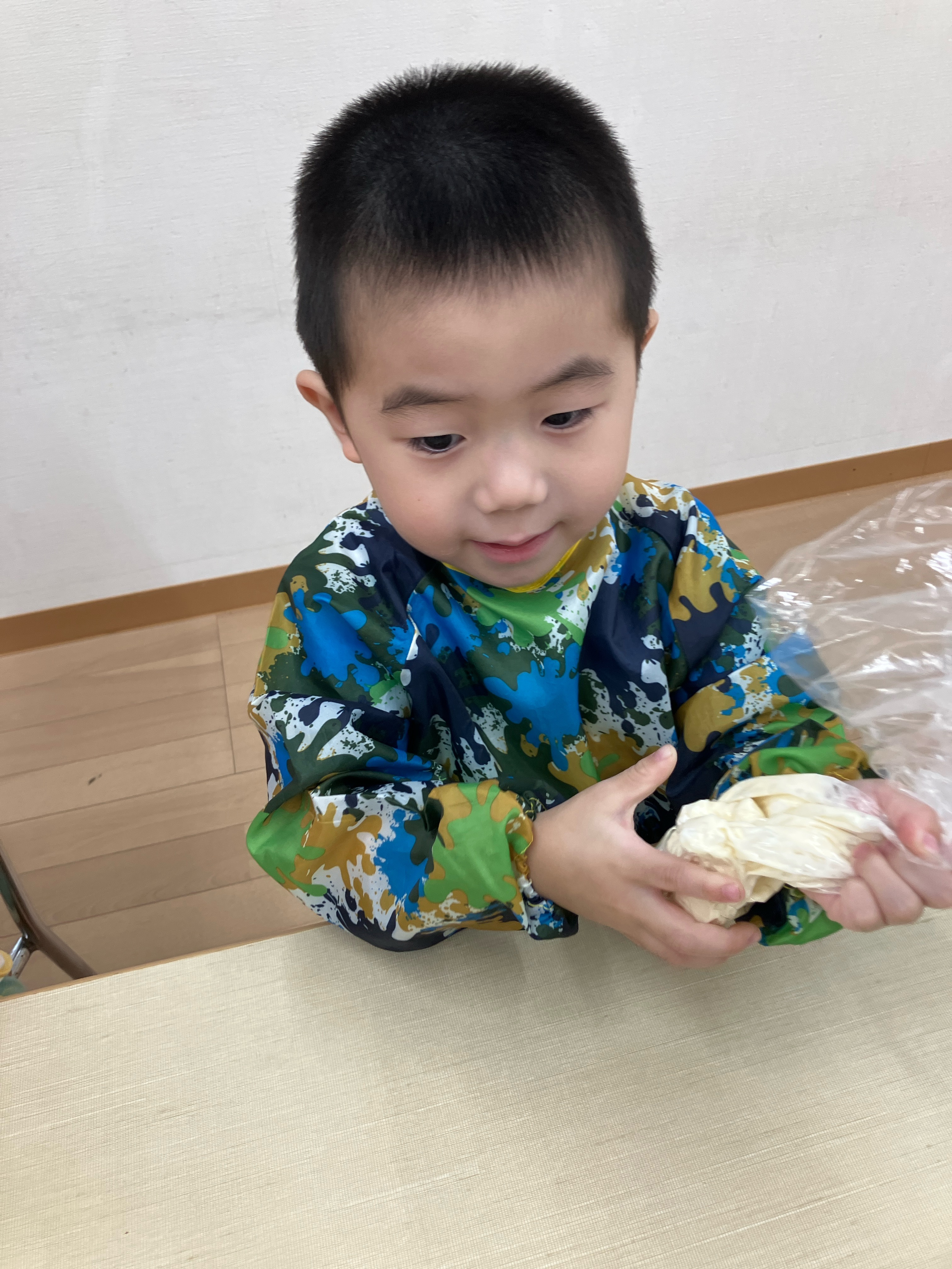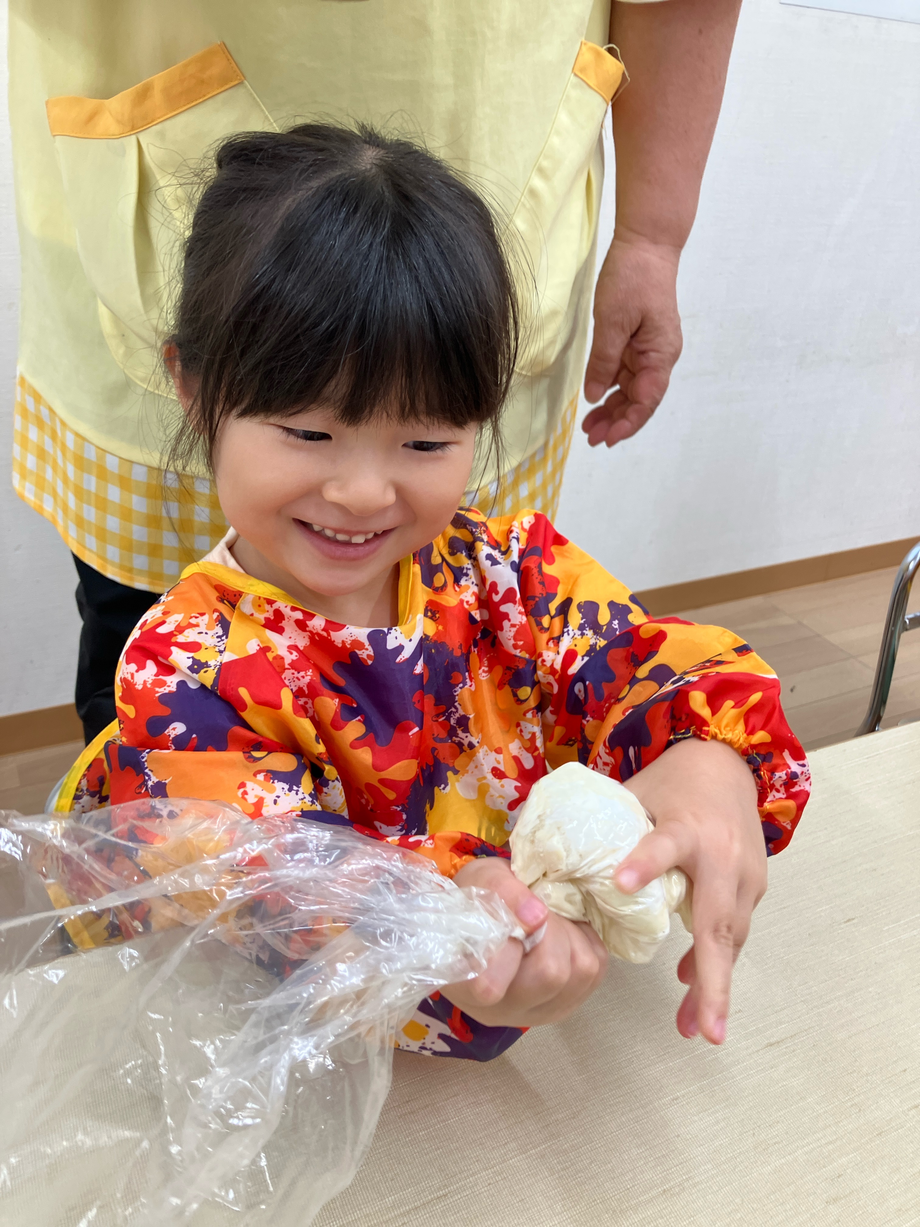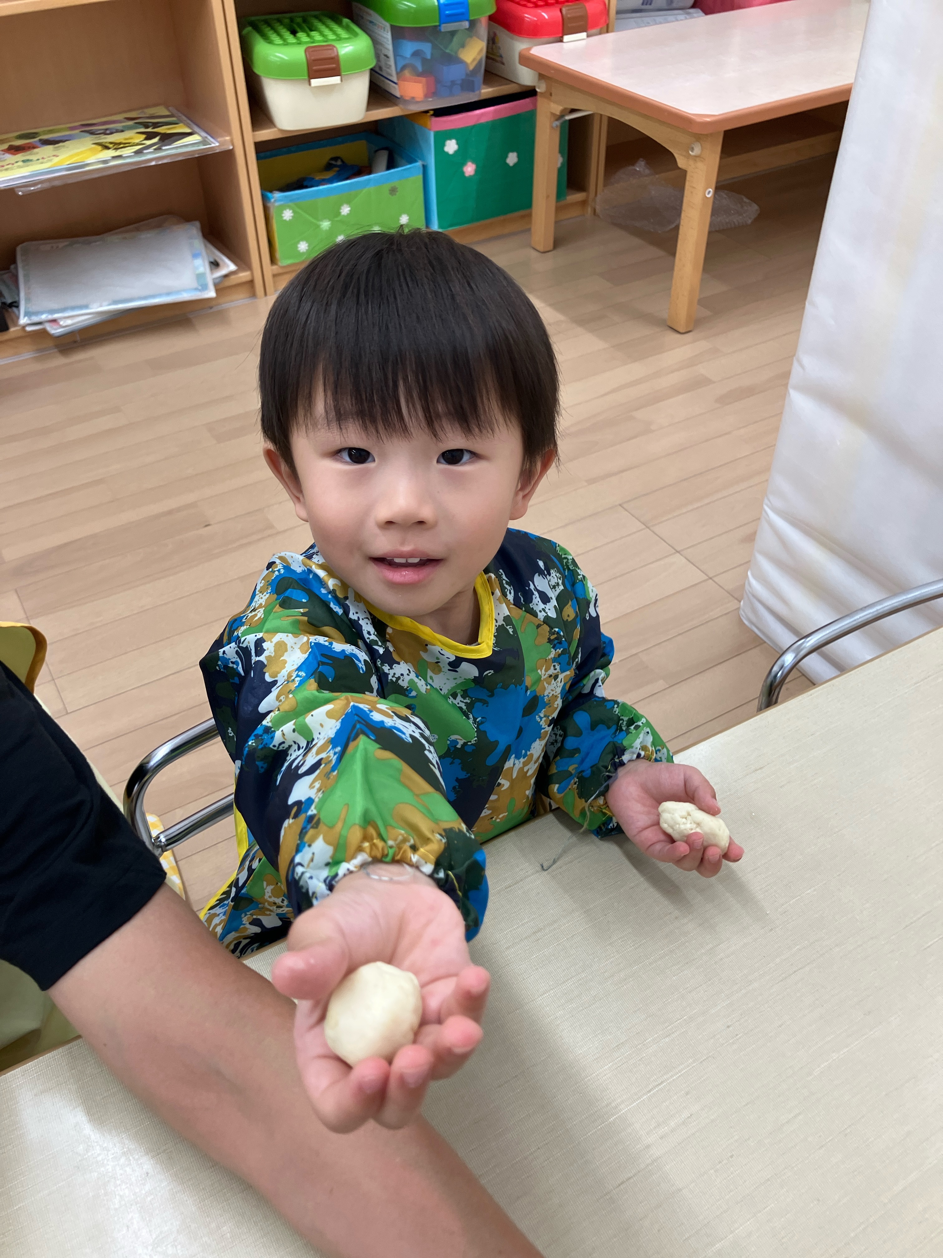 粉にお水を足してこねるとお団子になるよと、楽しく作ることが出来ました。