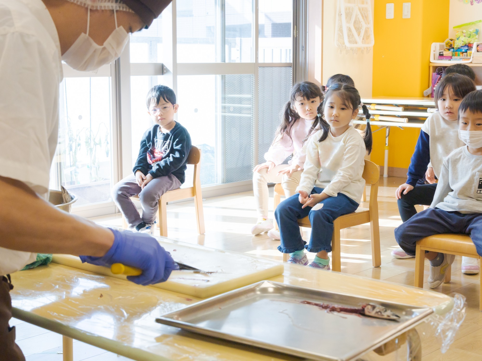 いつもとは違う食育にみんな緊張している様子。