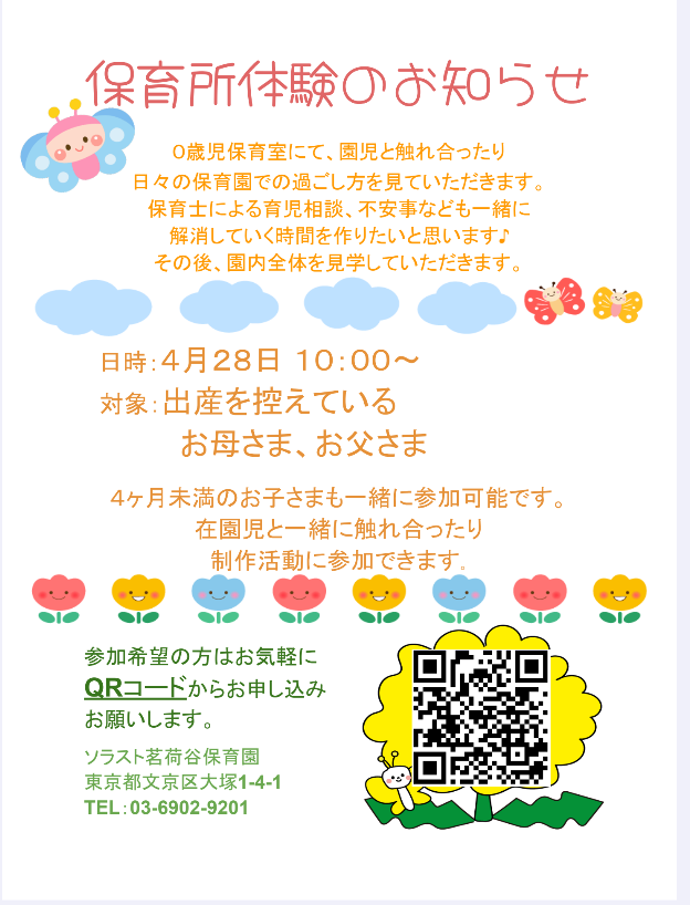 ソラスト茗荷谷保育園☆4ヶ月未満保育所体験