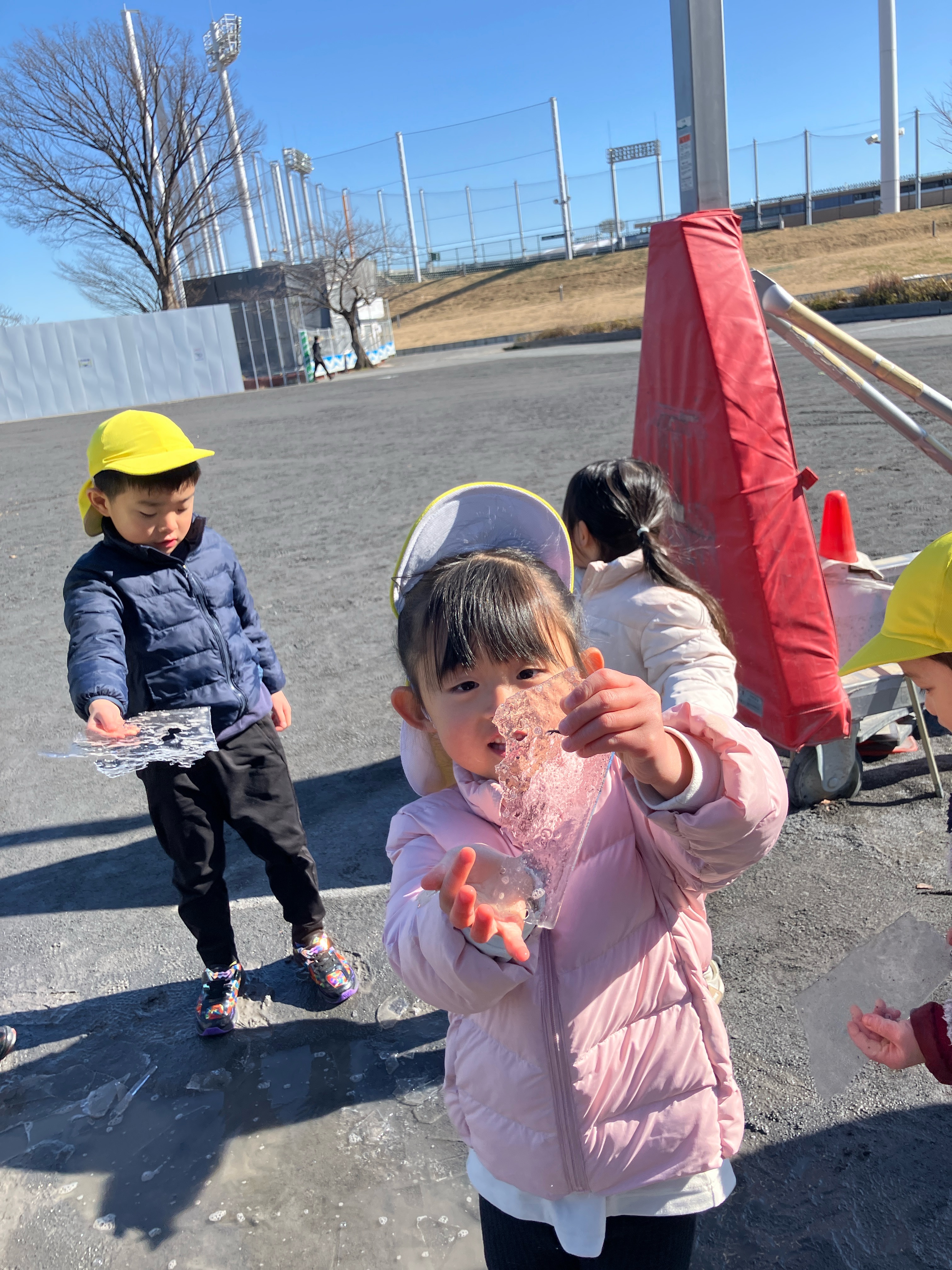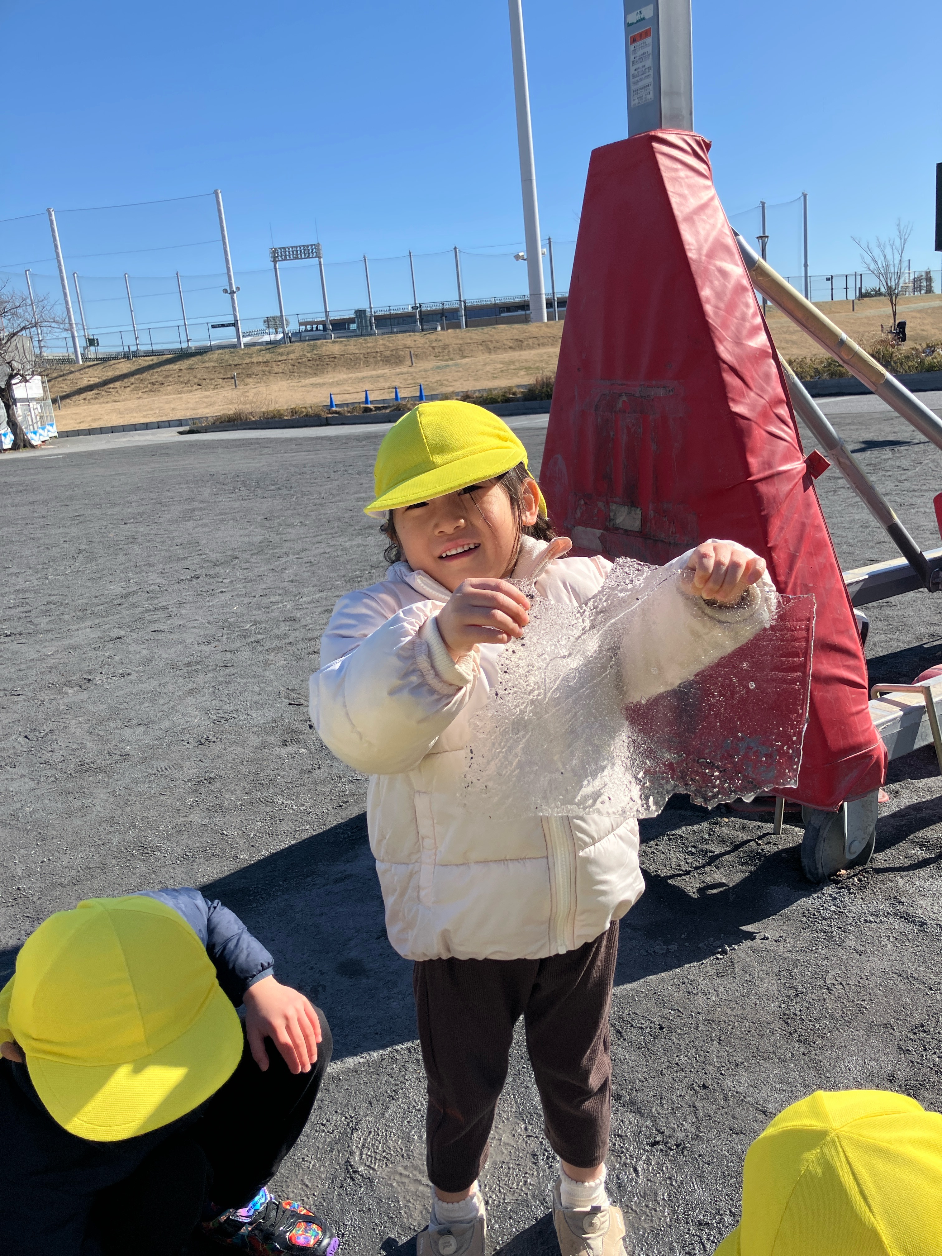 作ったあと、公園に行くと水溜まりの水が凍っているの