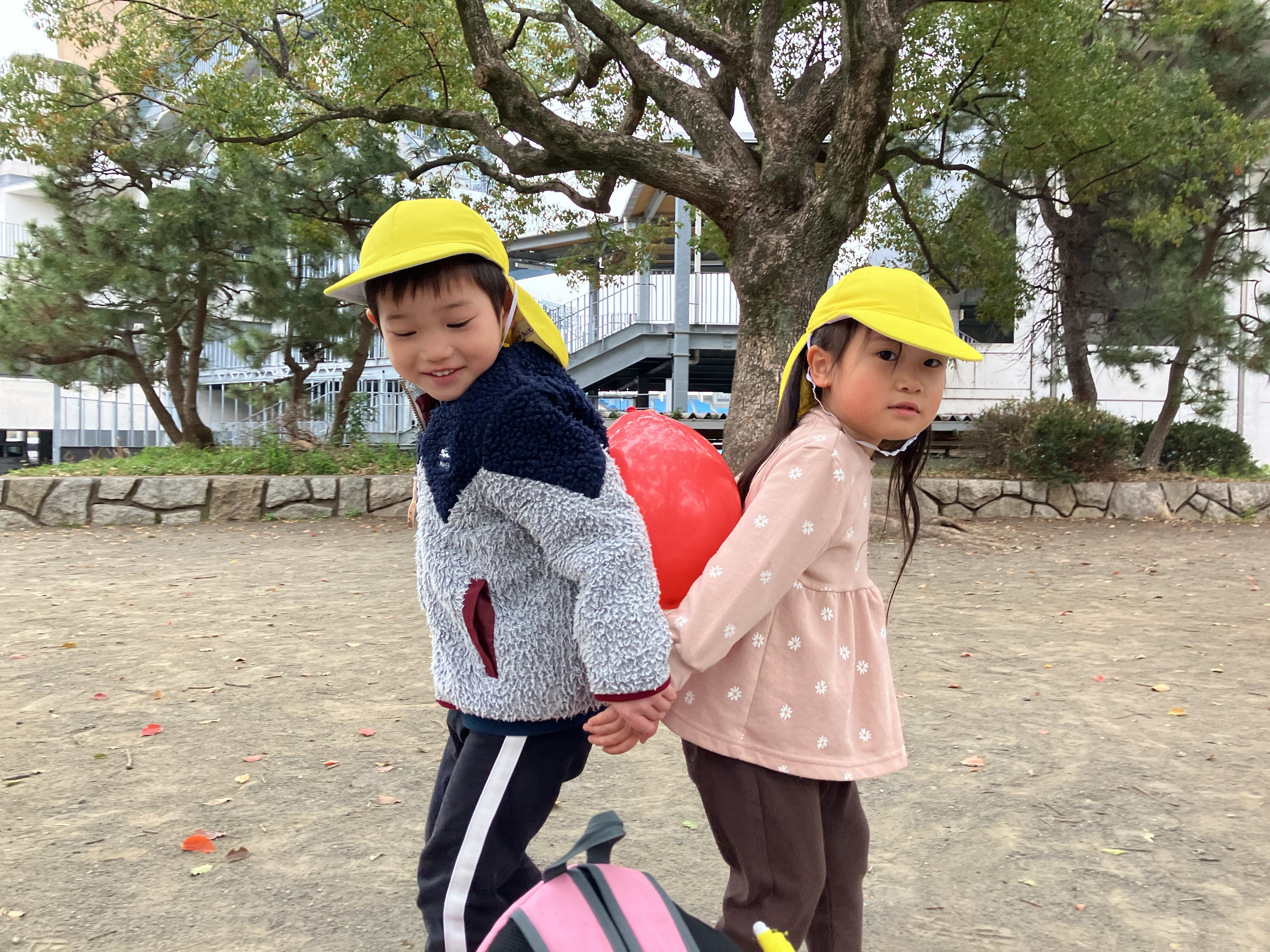 行きました!しっぽ取りゲームをしたり、風船運びの