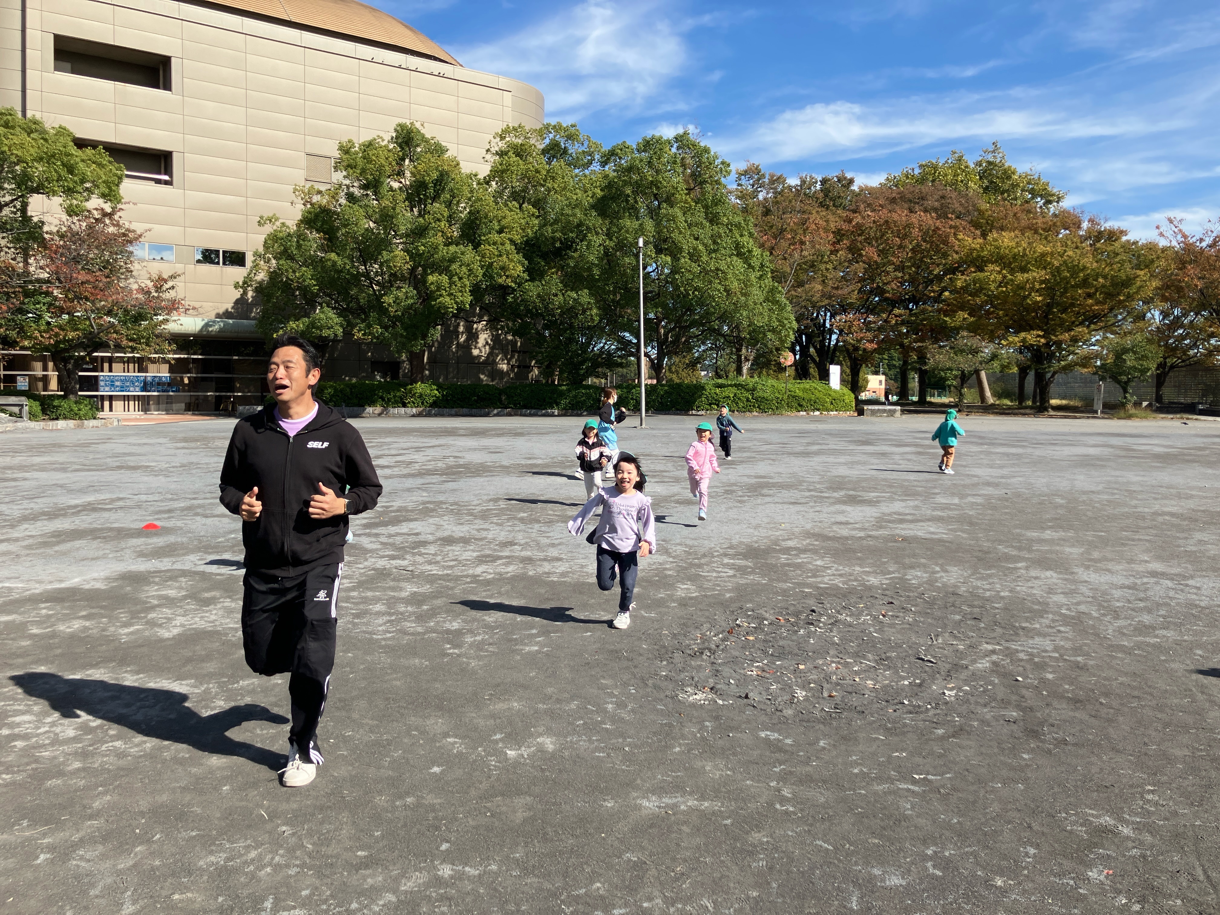 青空の下でのびのびと体を動かし、子ども達もとても気