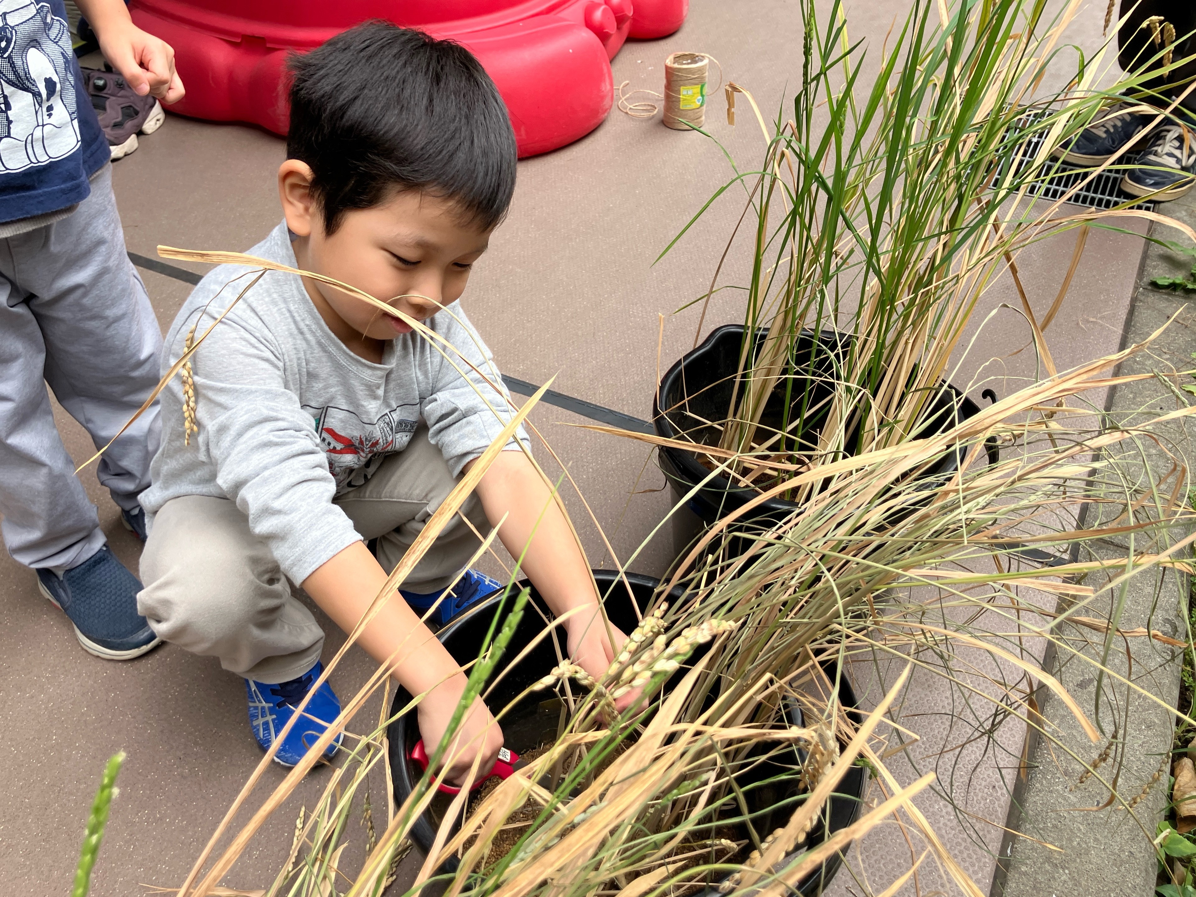 ソラストおおいまち保育園☆バケツ稲の収穫をしました!(5歳児)