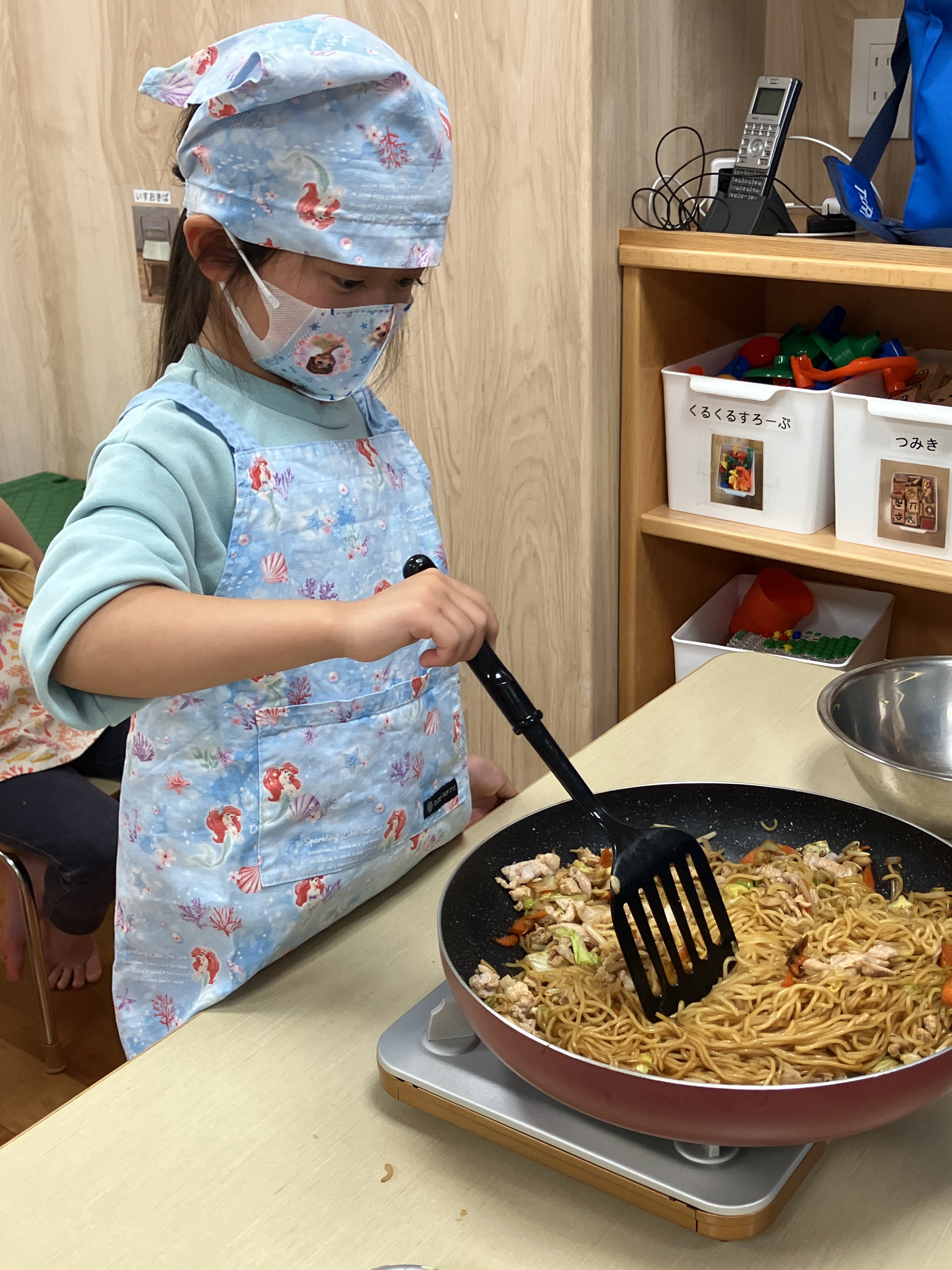 開始!みんなで力を合わせて焼きそばとスープを作りま