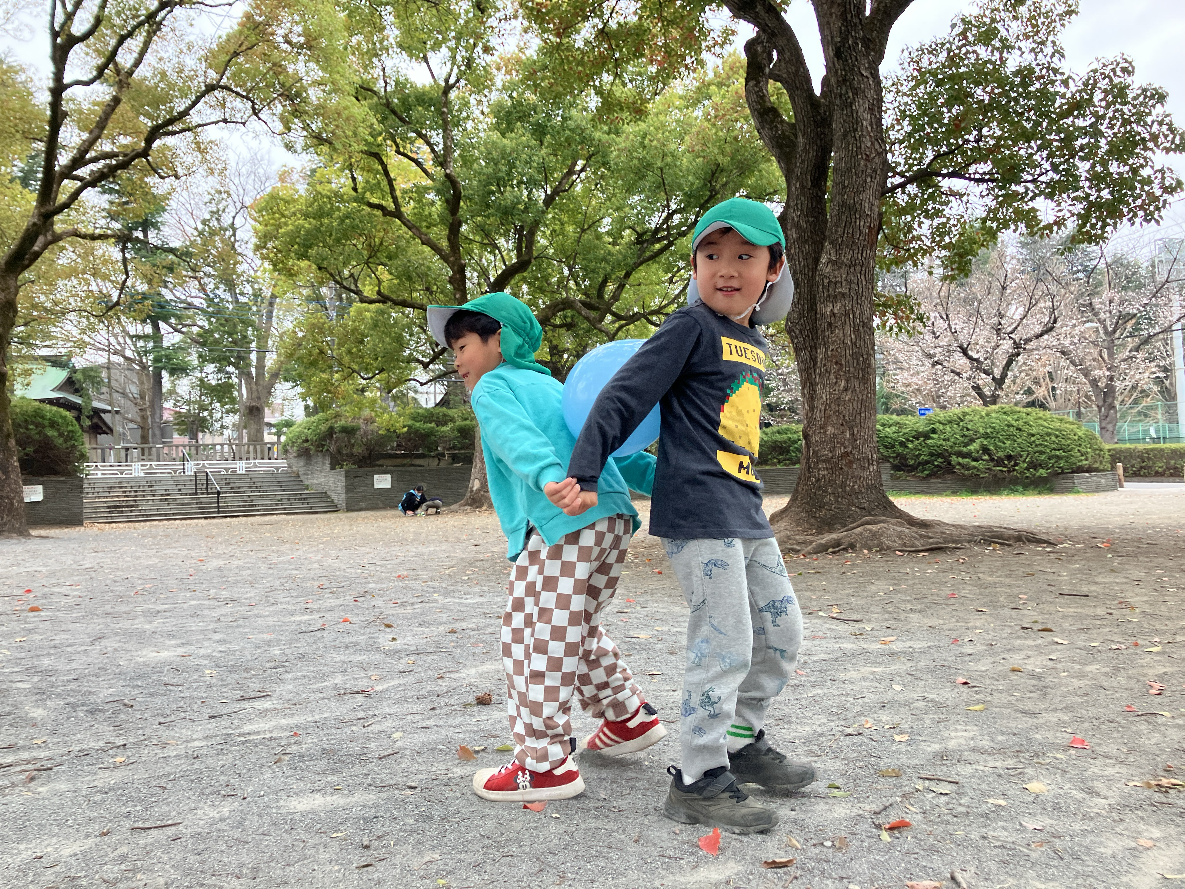 公園では、しっぽ取りゲームや風船運びゲームなどをし