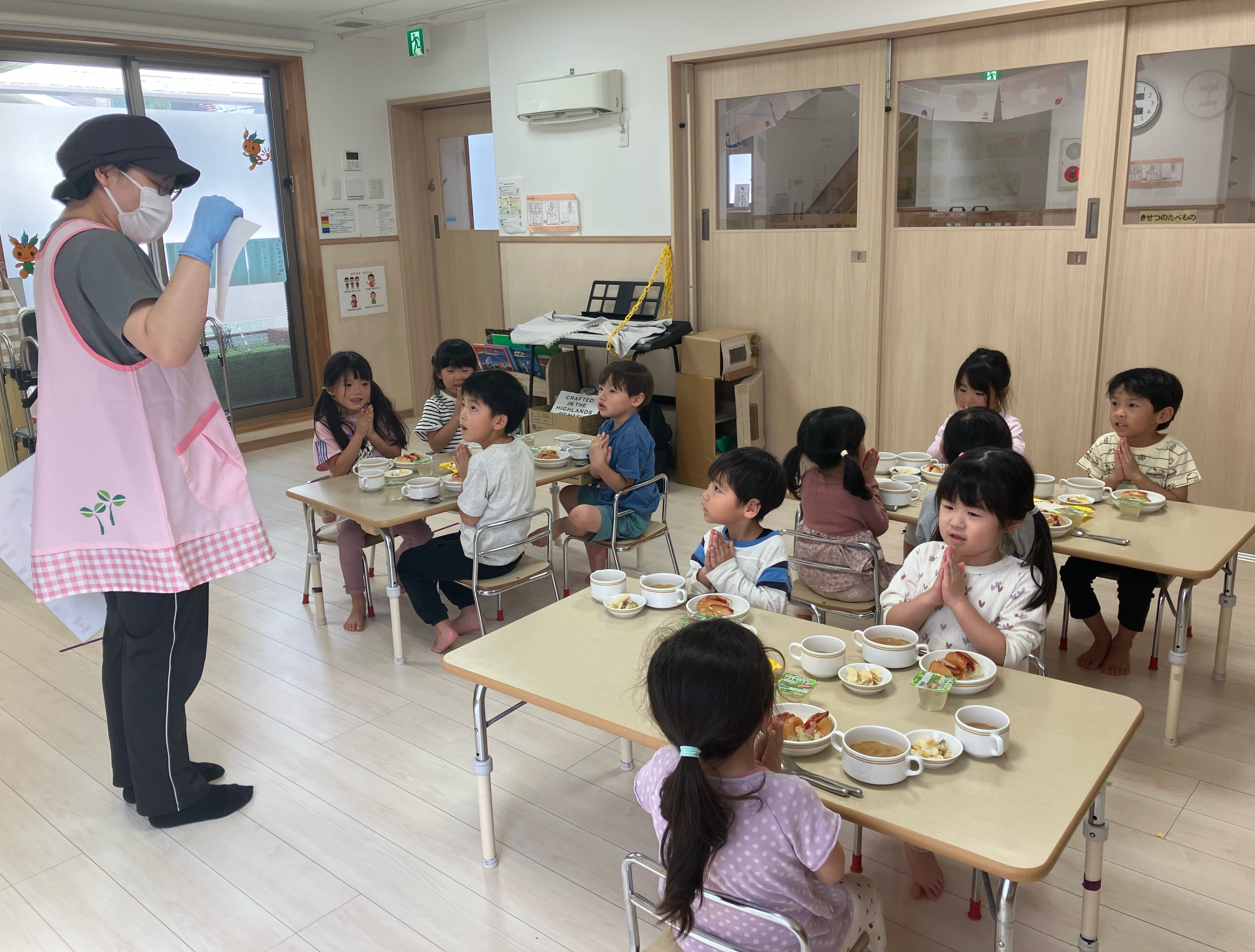 みんなで「Let′s eat!」と元気に挨拶をしてから食べました。