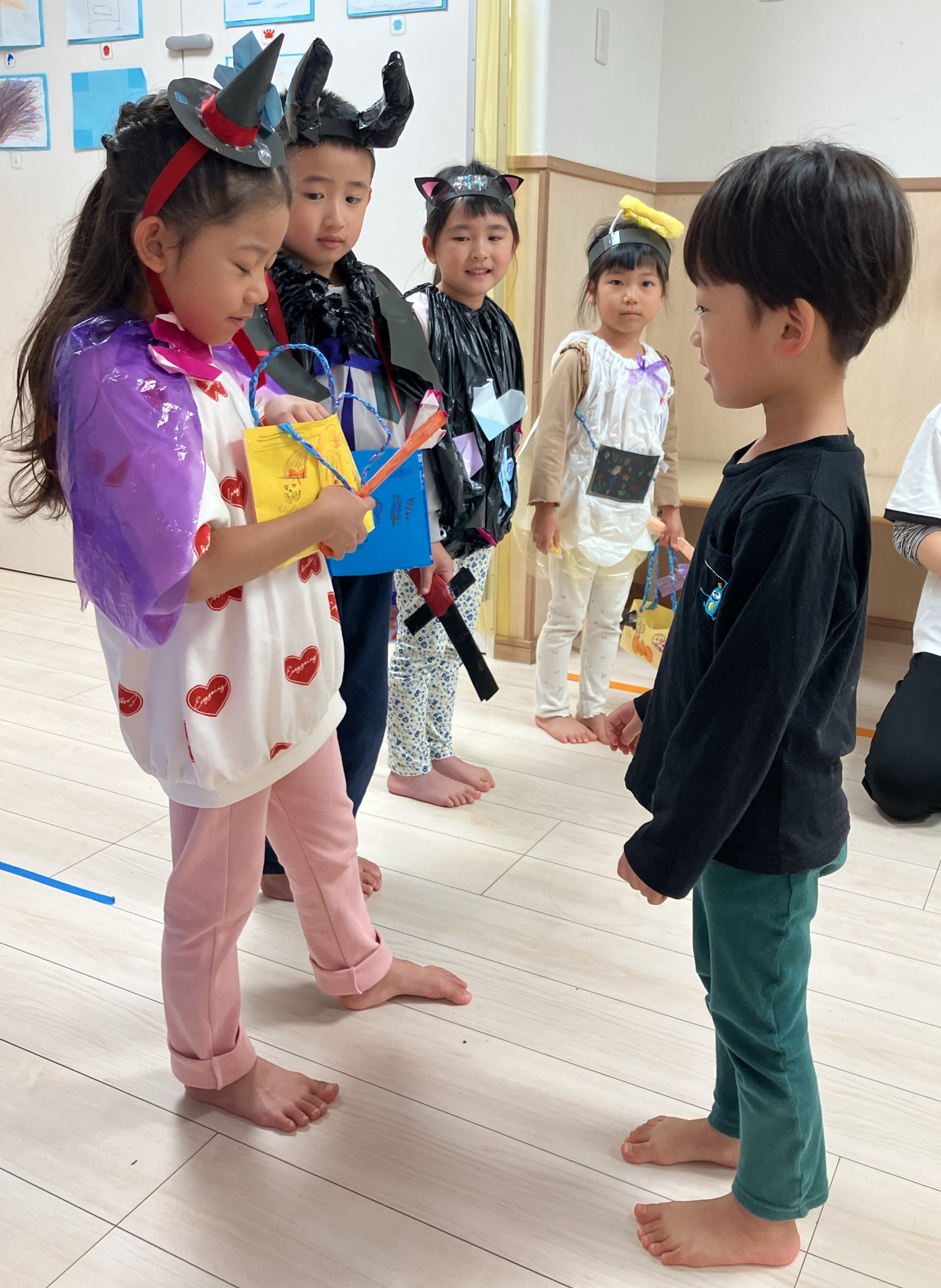自分たちで作った衣装を着た5歳児が