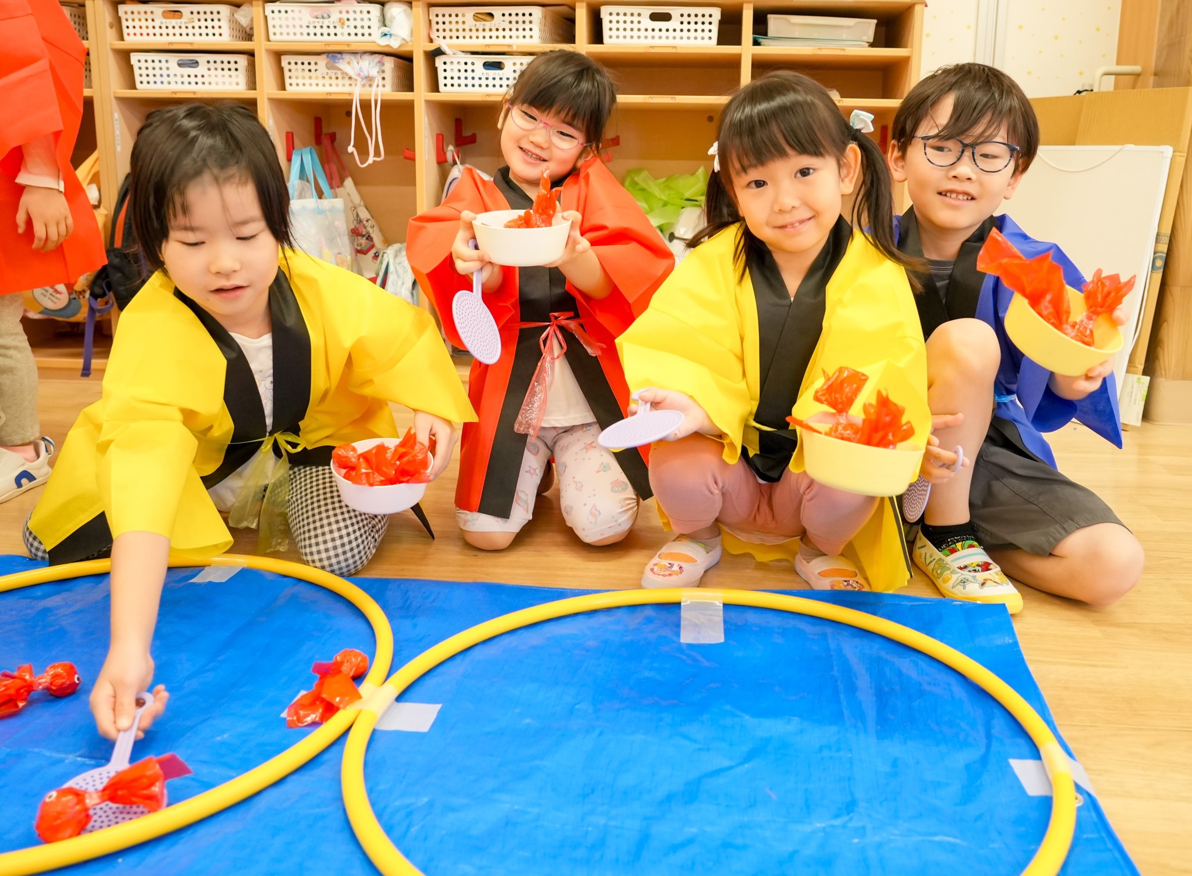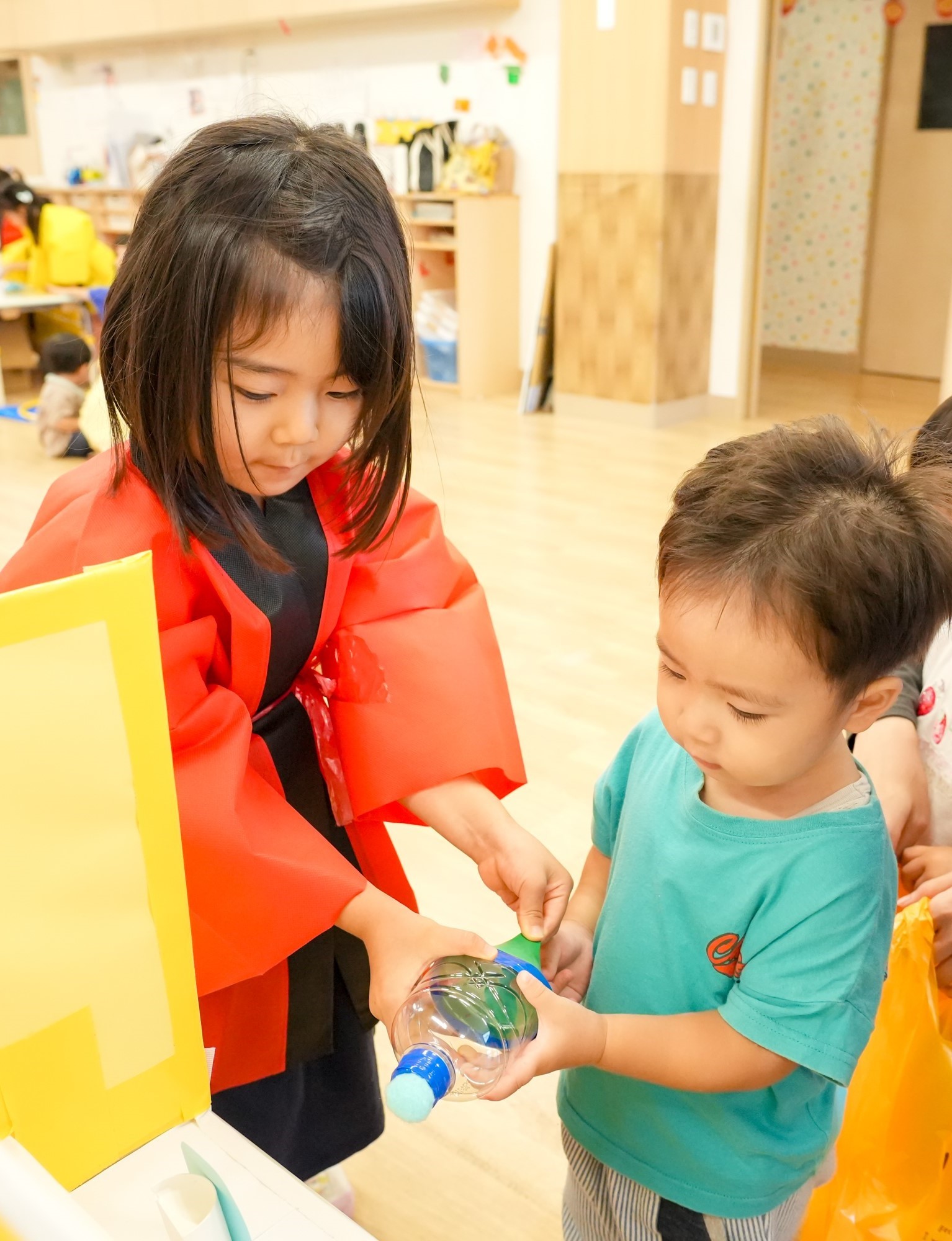 4・5歳児さんは、はっぴ姿でお客様をお出迎えします♪
