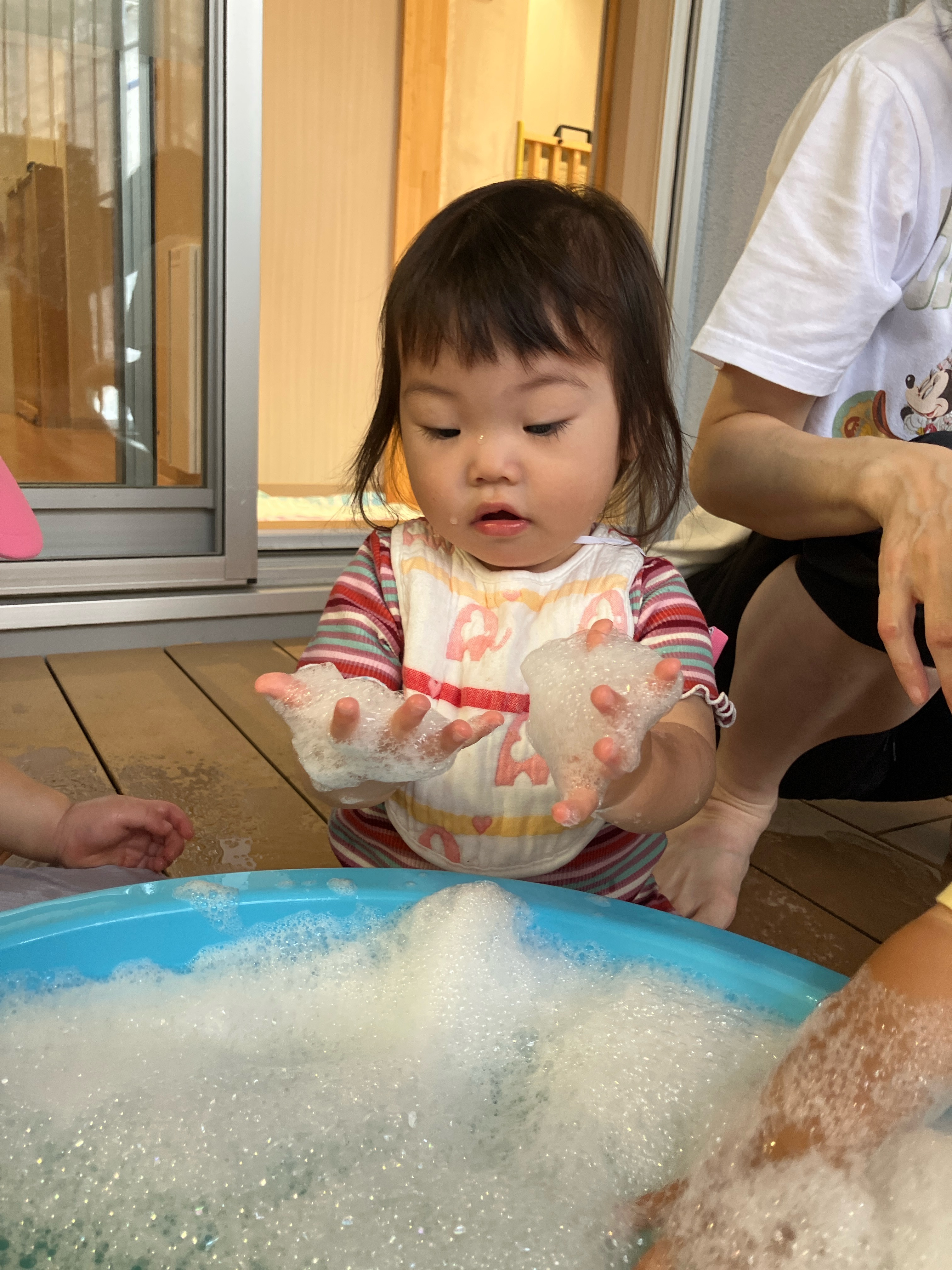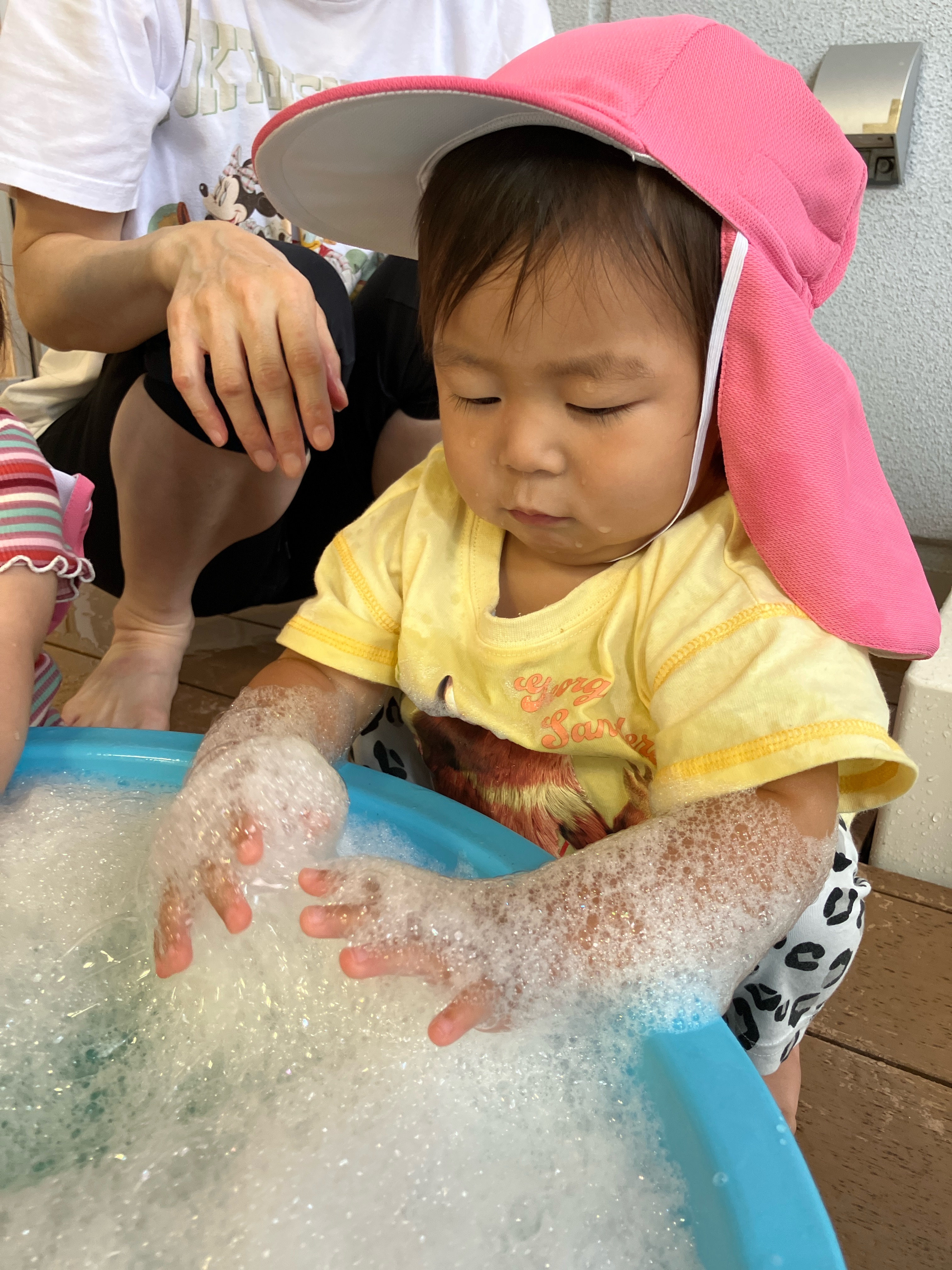フワの泡に興味津々!泡の感触や心地よい感覚を楽しむ