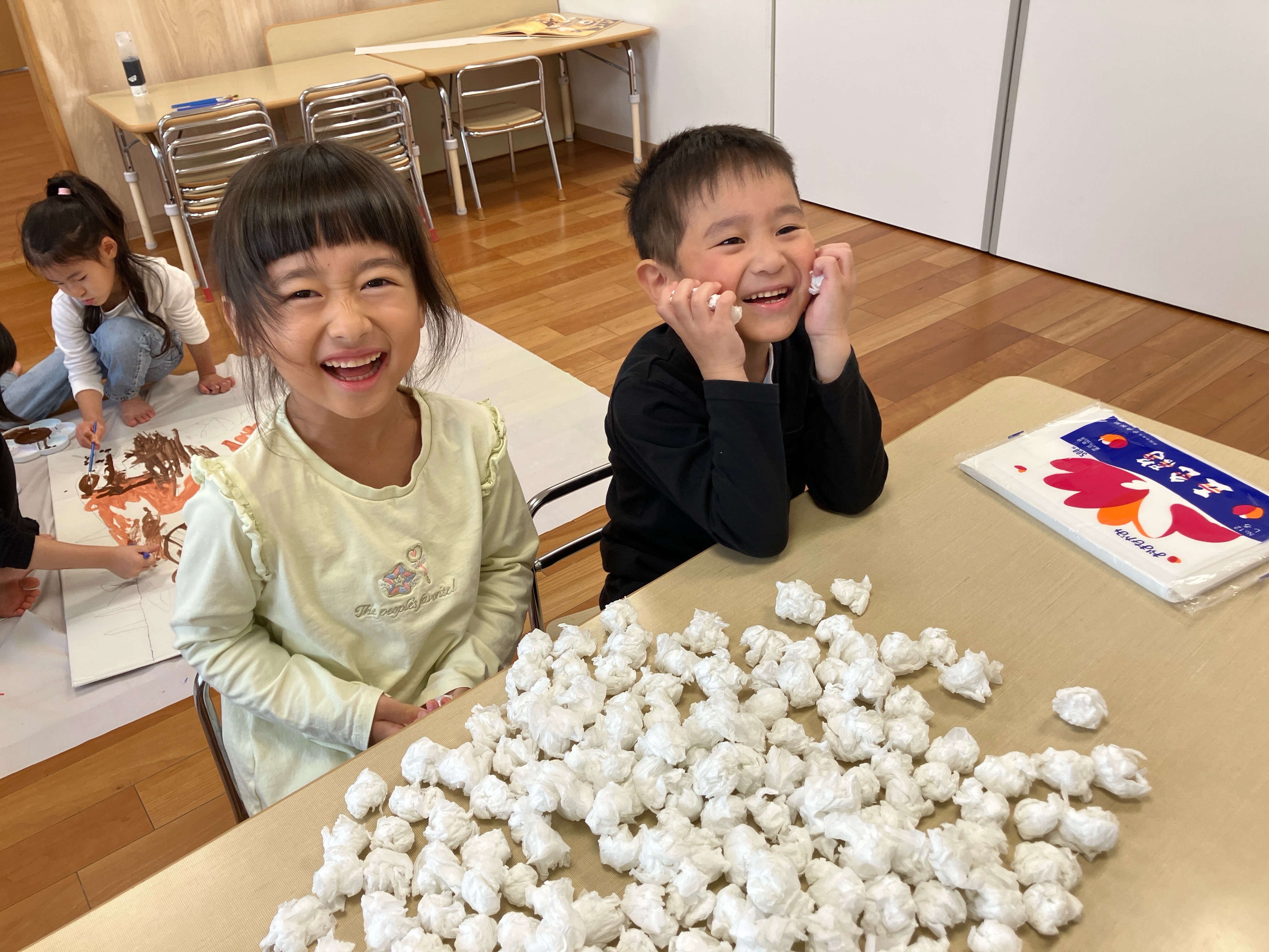 お花紙を丸めて雪を作ったりしました!