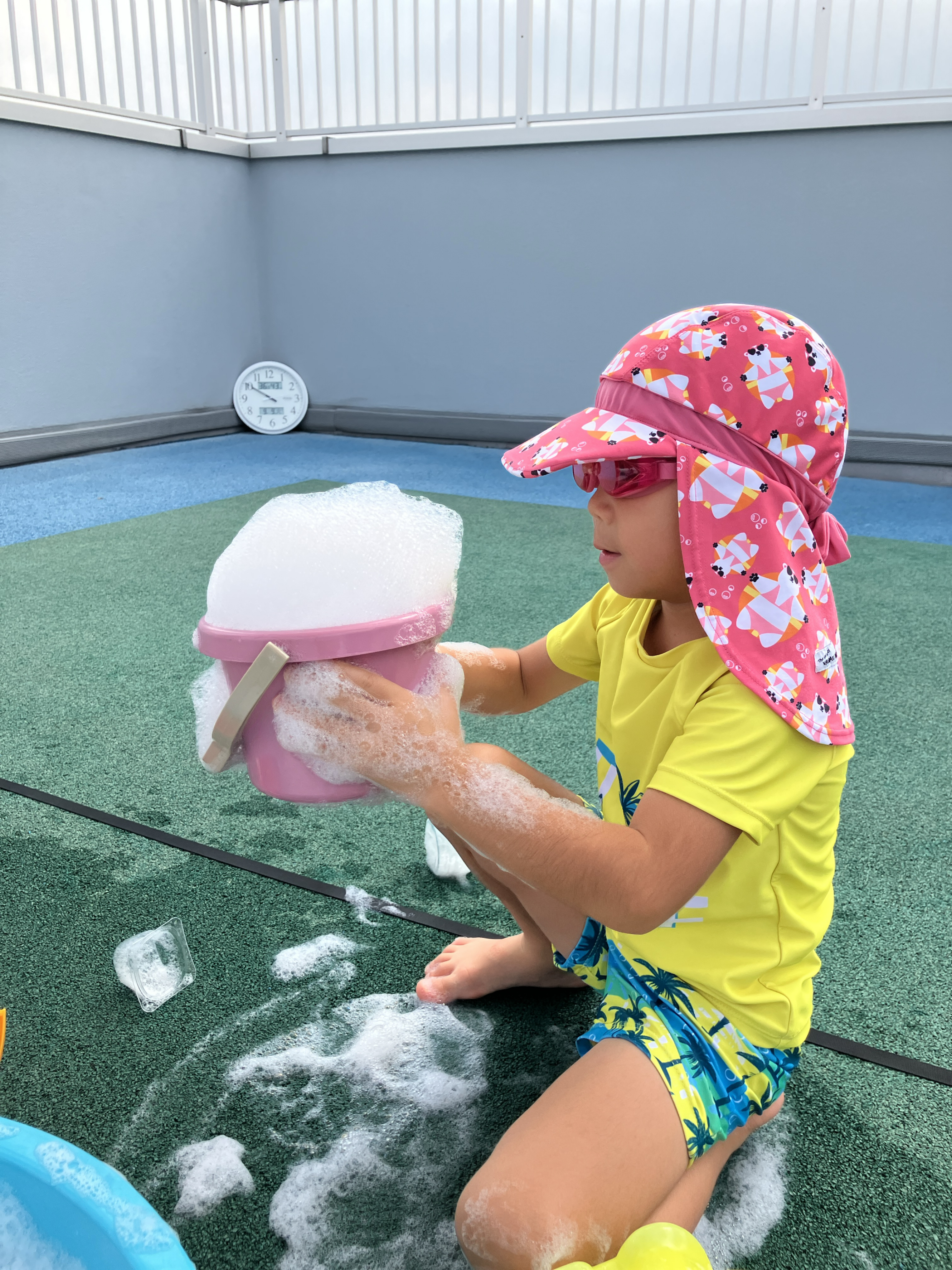 泡遊びではバケツにたくさんの泡を入れてかき氷などを