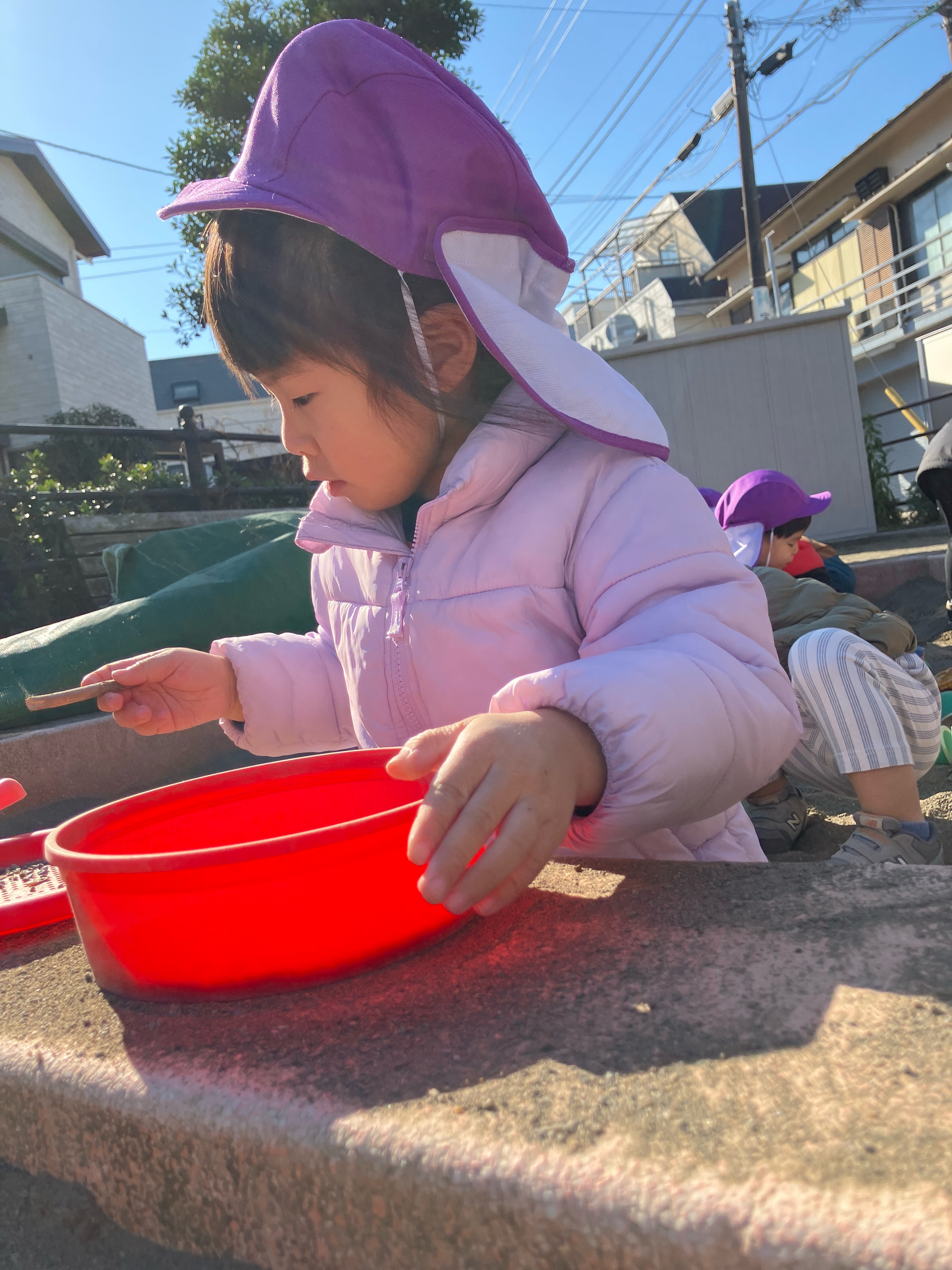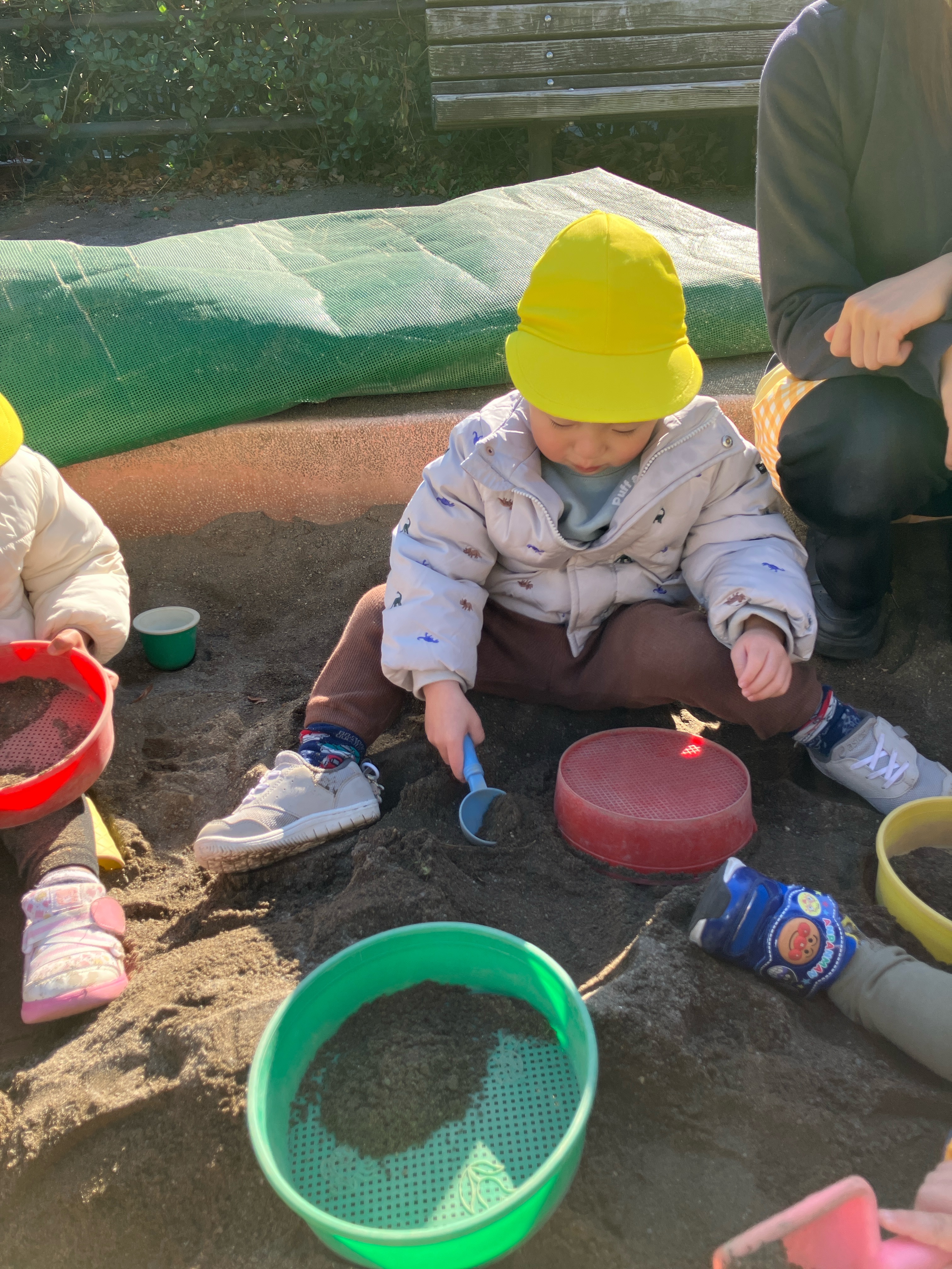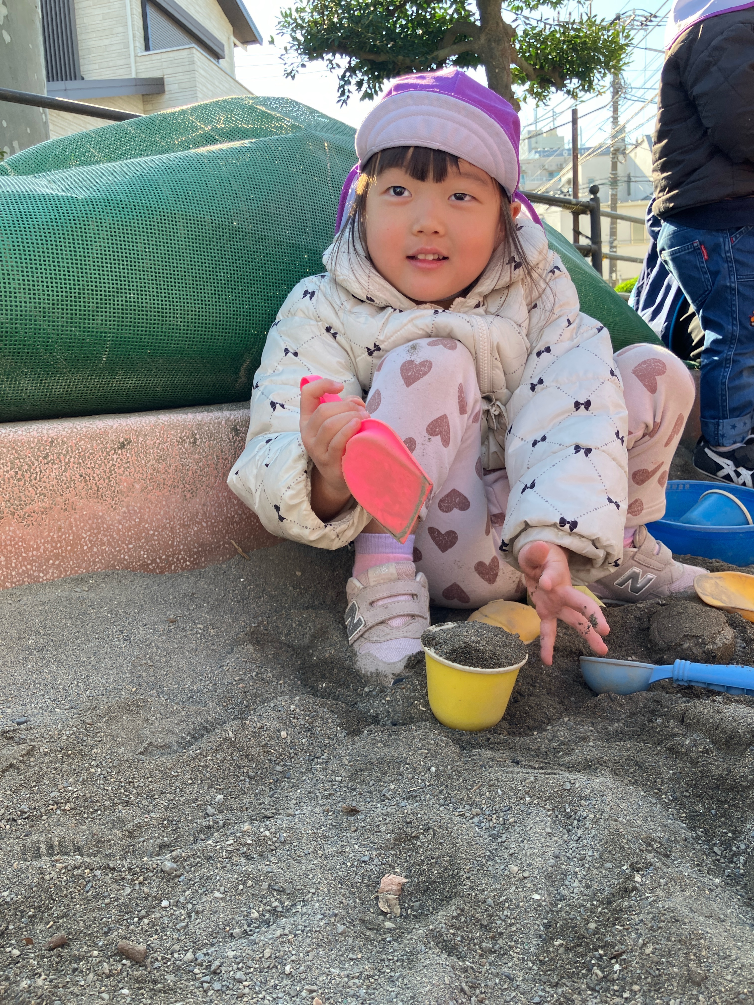 砂をすくったり、型にいれて型抜きをして楽しんでいます♪