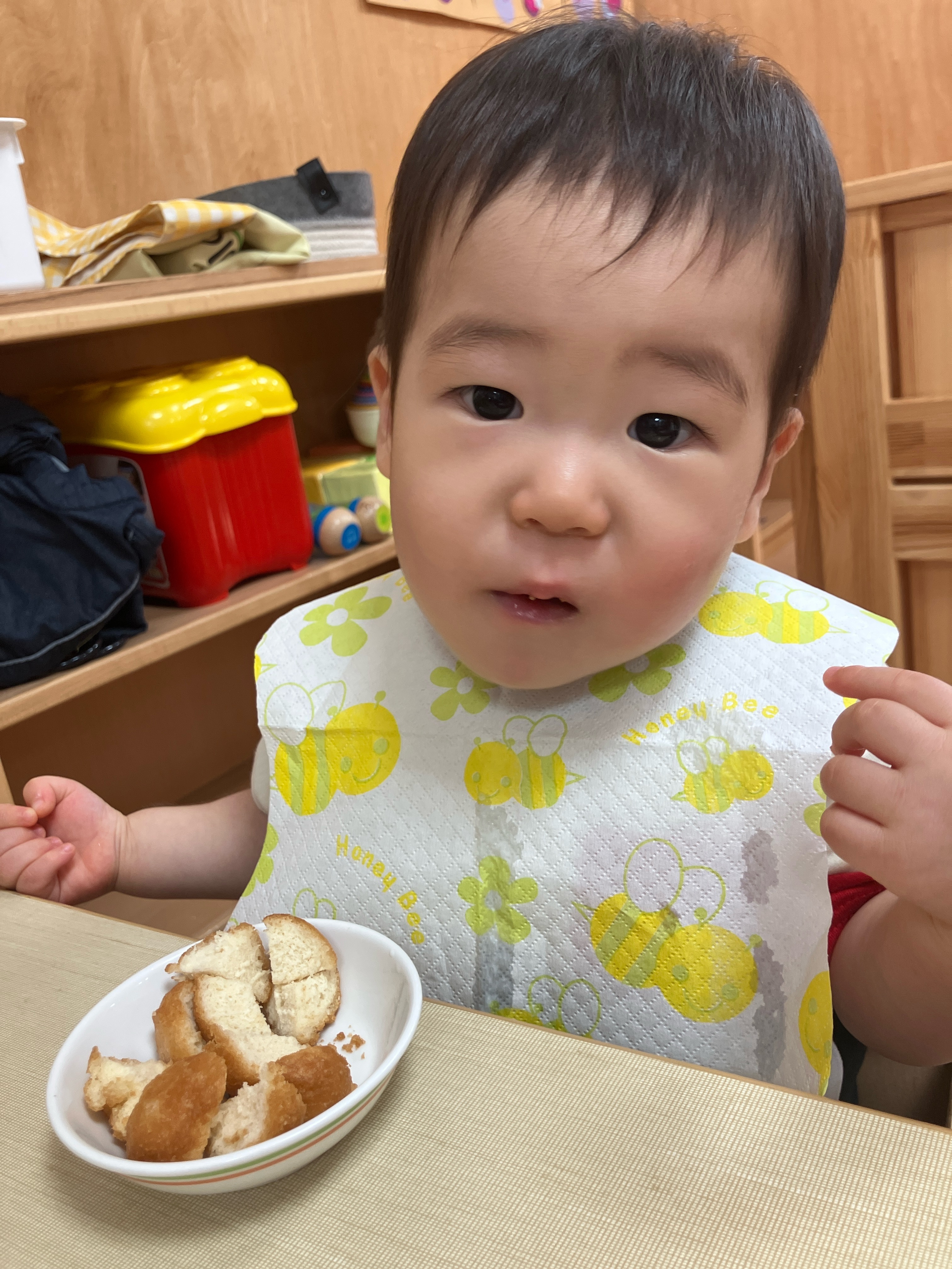 0歳児クラスでも口の中で溶かしながら食べています♪