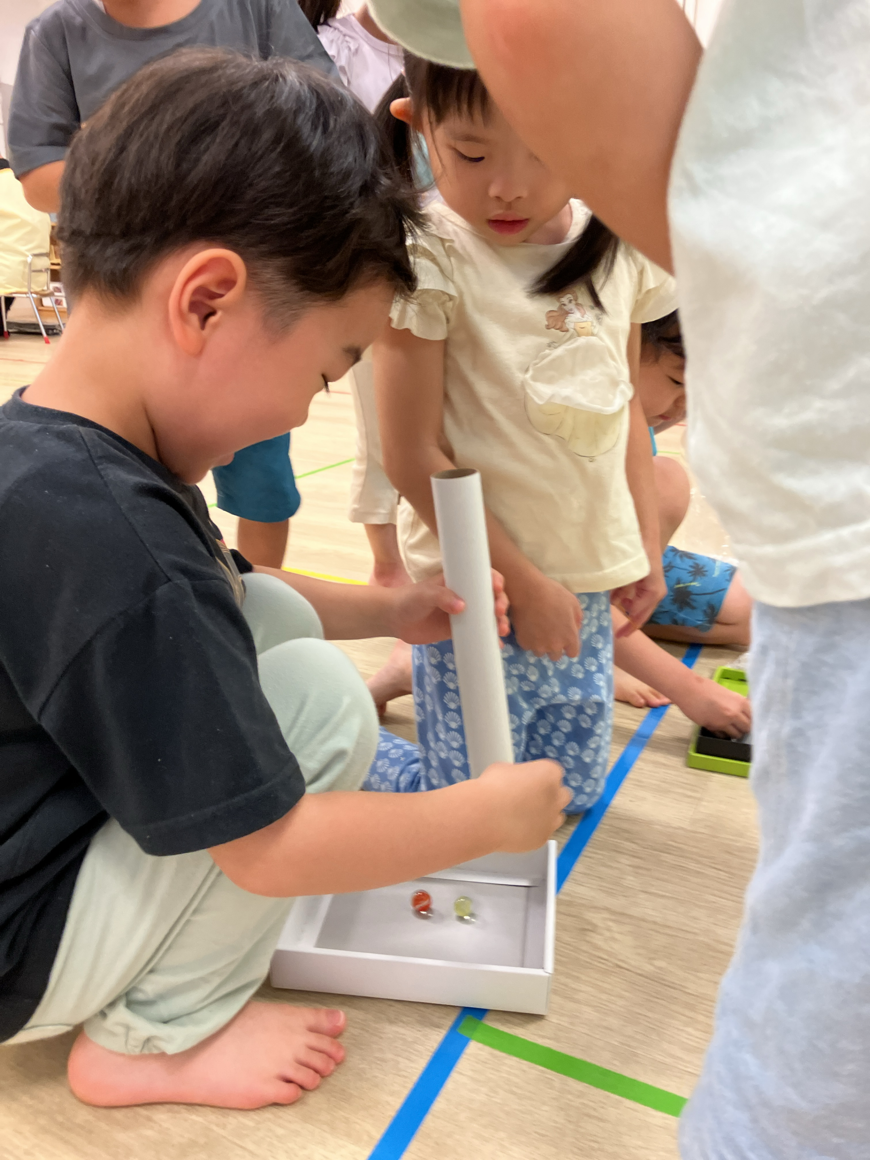 筒にビー玉を入れ、落ちる音を楽しんだり