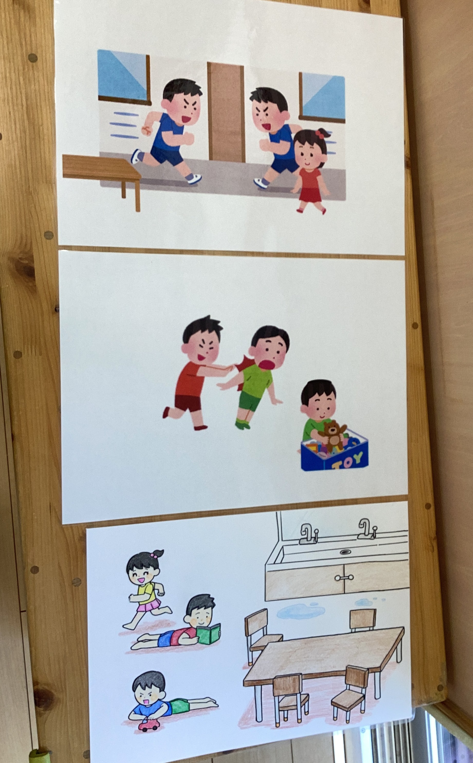 「床が濡れていたら拭くか、先生にいう!」