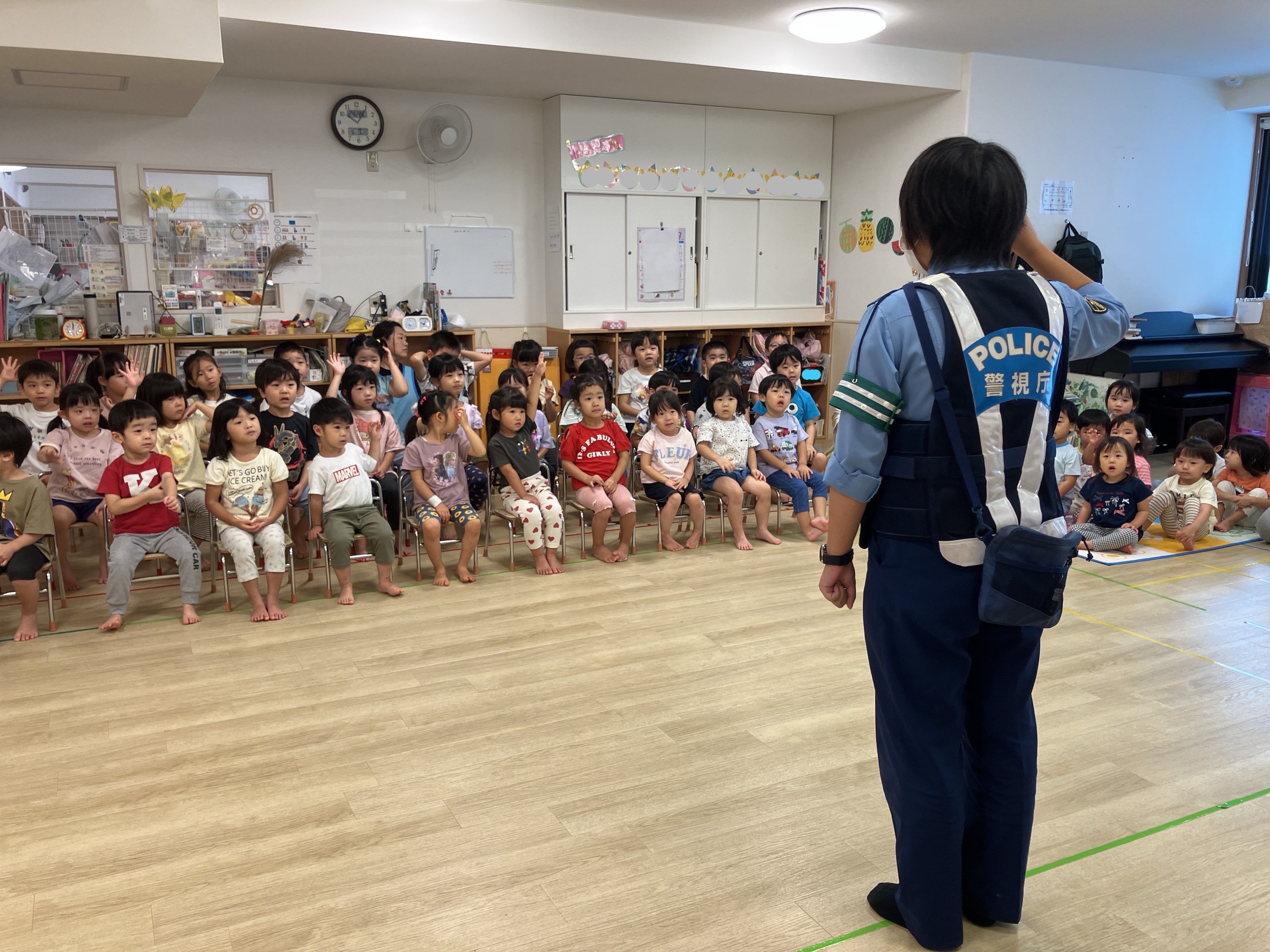 ソラスト前野町保育園に交通安全課のお巡りさんが来てくれました。