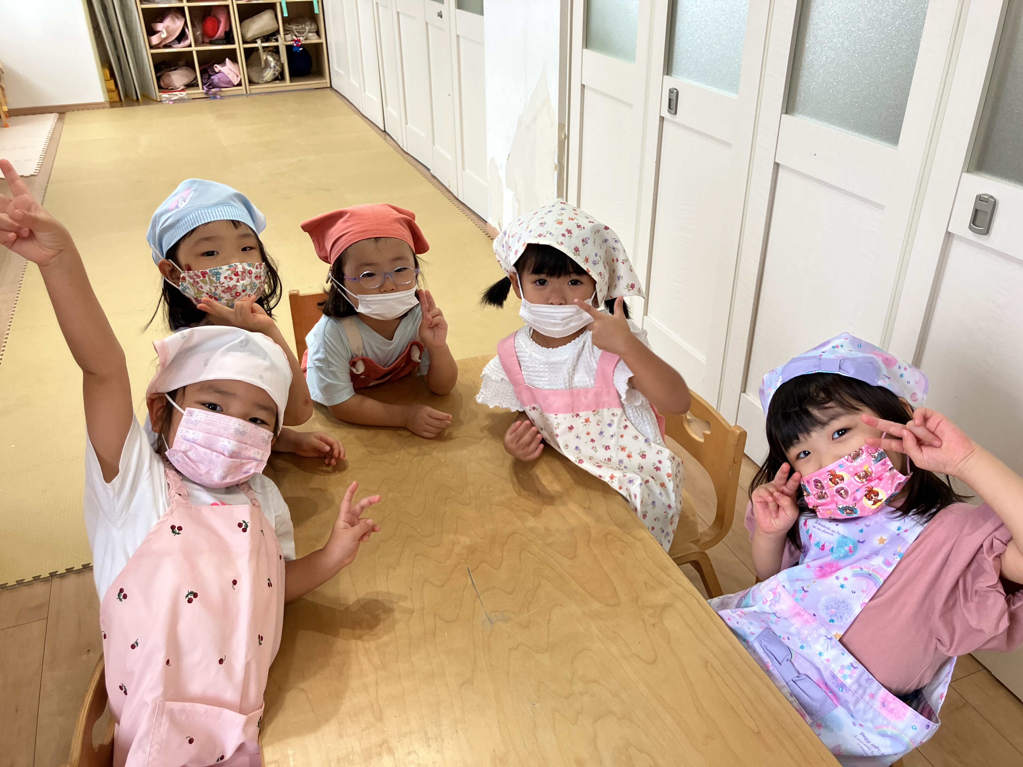 こだま組は初めてのクッキング活動です!楽しくクッキングしようね♡