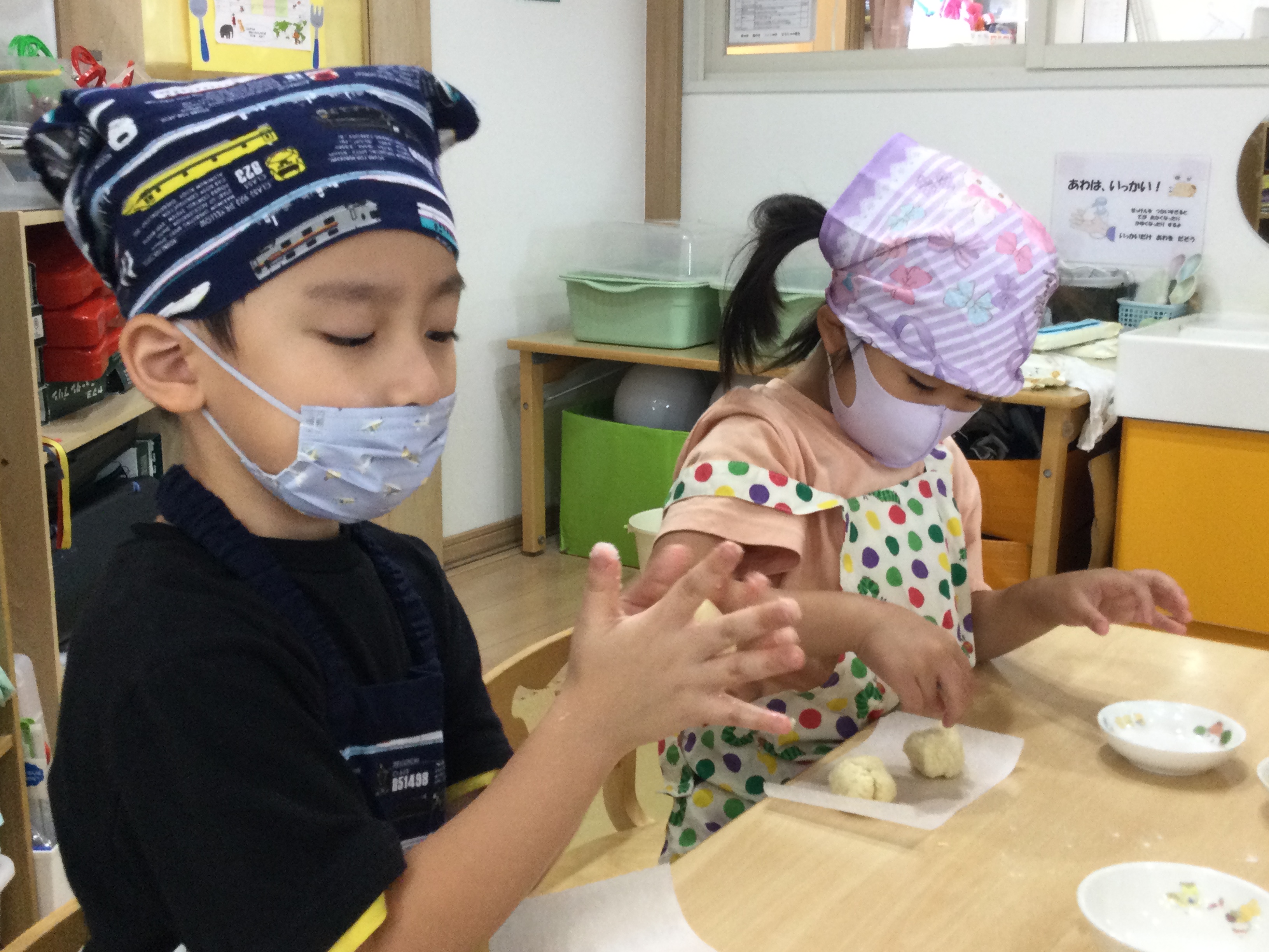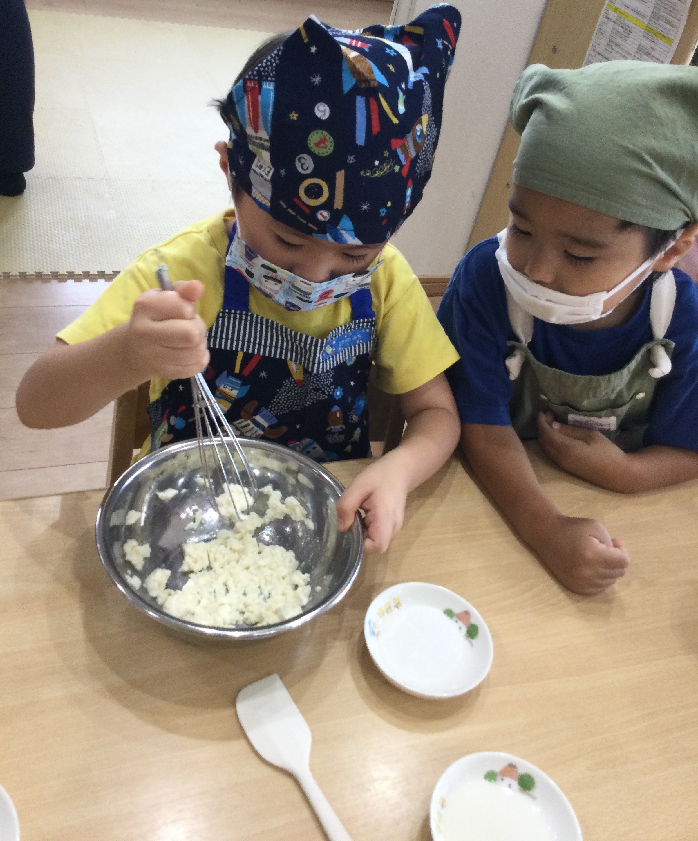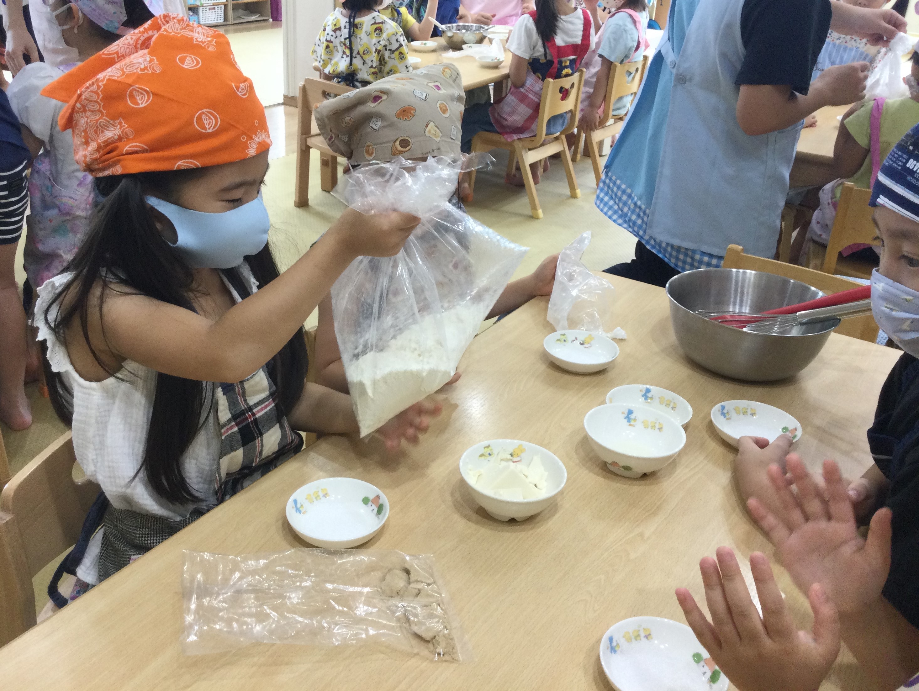 9月の食育はこだま・ゆめ・たいよう組のみんなと『ふわふわお豆腐パン作り』を行いました☆
