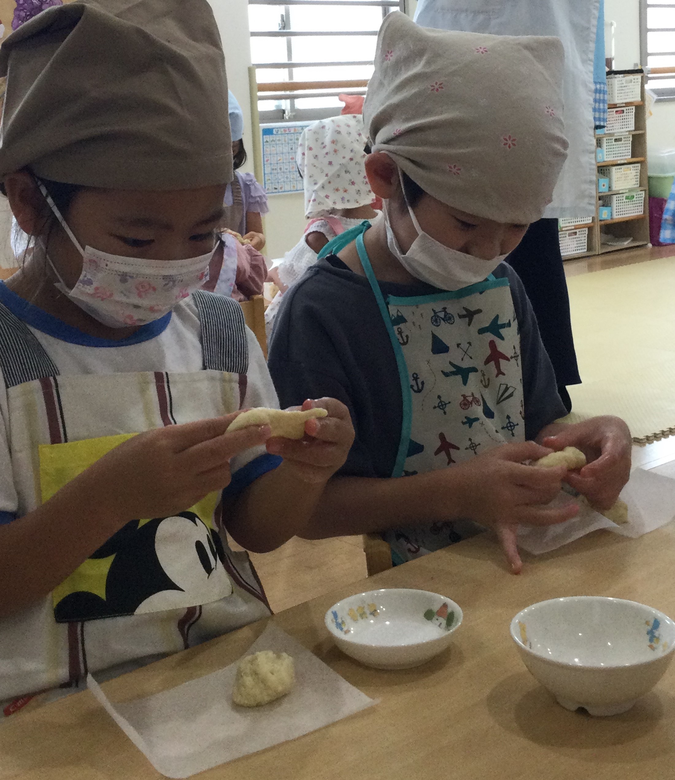 今回、こだま組は初めてのクッキング活動でしたが、身支度などの準備もスムーズに行うことができていました。粉をふるったり、材料をこぼさないようにしたり、生地が手にくっつかない様にするなど少し難しいと感じる子もいましたが、できあがった手作りおやつを美味しそうに食べる姿が見られました。ゆめ・たいよう組は久しぶりのクッキング活動だったので、張り切ってみんな楽しく参加できました。また、生地作りの際には役割分担を決め子ども同士協力して上手な生地ができていました☆