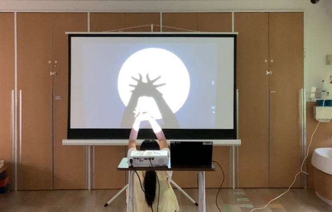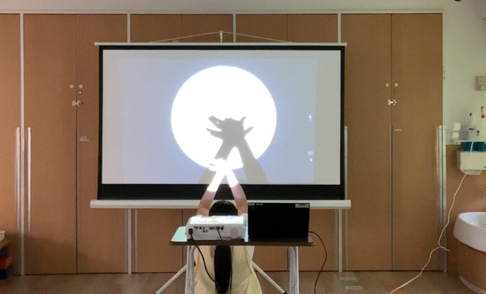 お月見集会では先生の影絵クイズの出し物に子ども達は楽しんでいました。