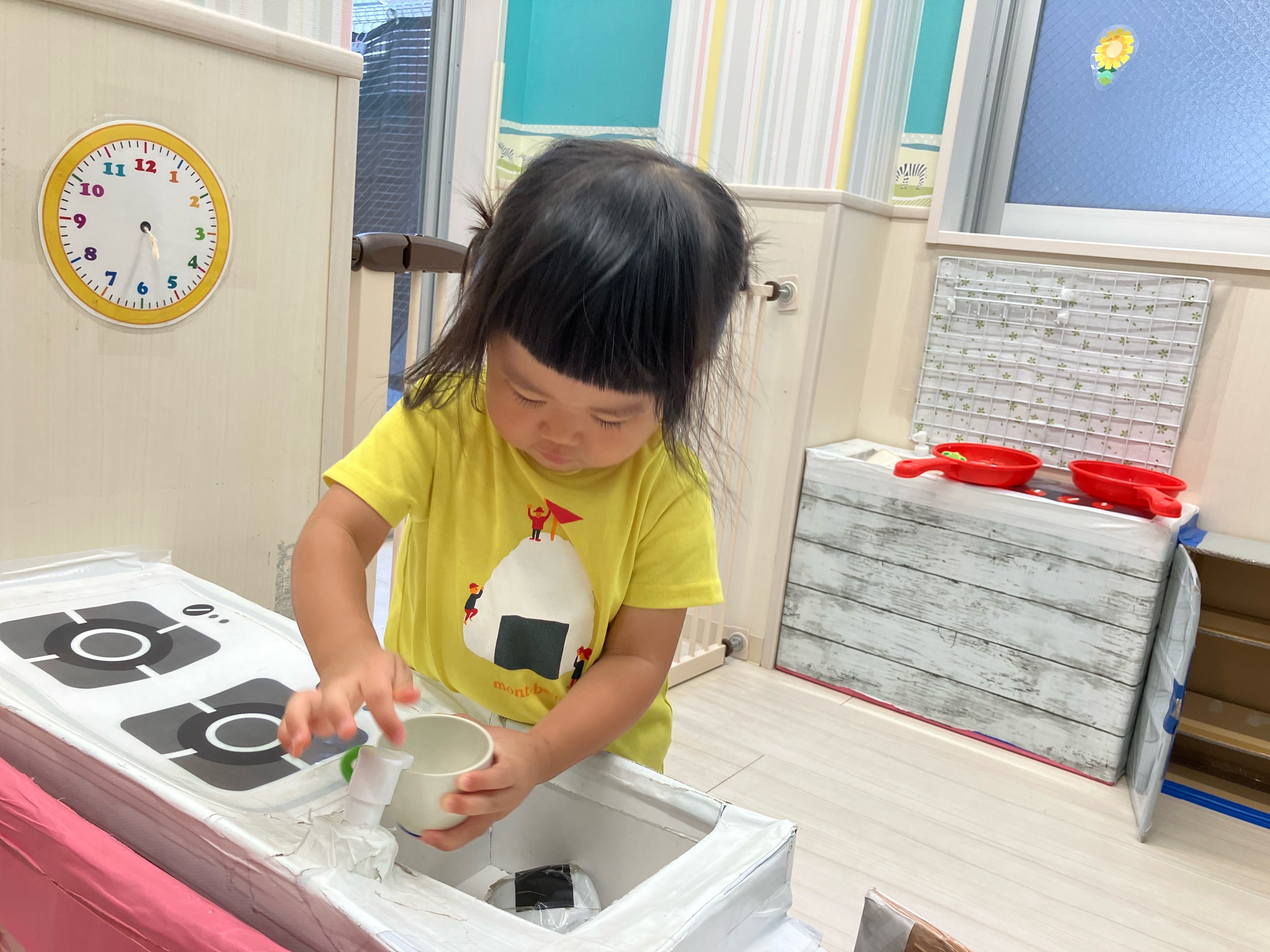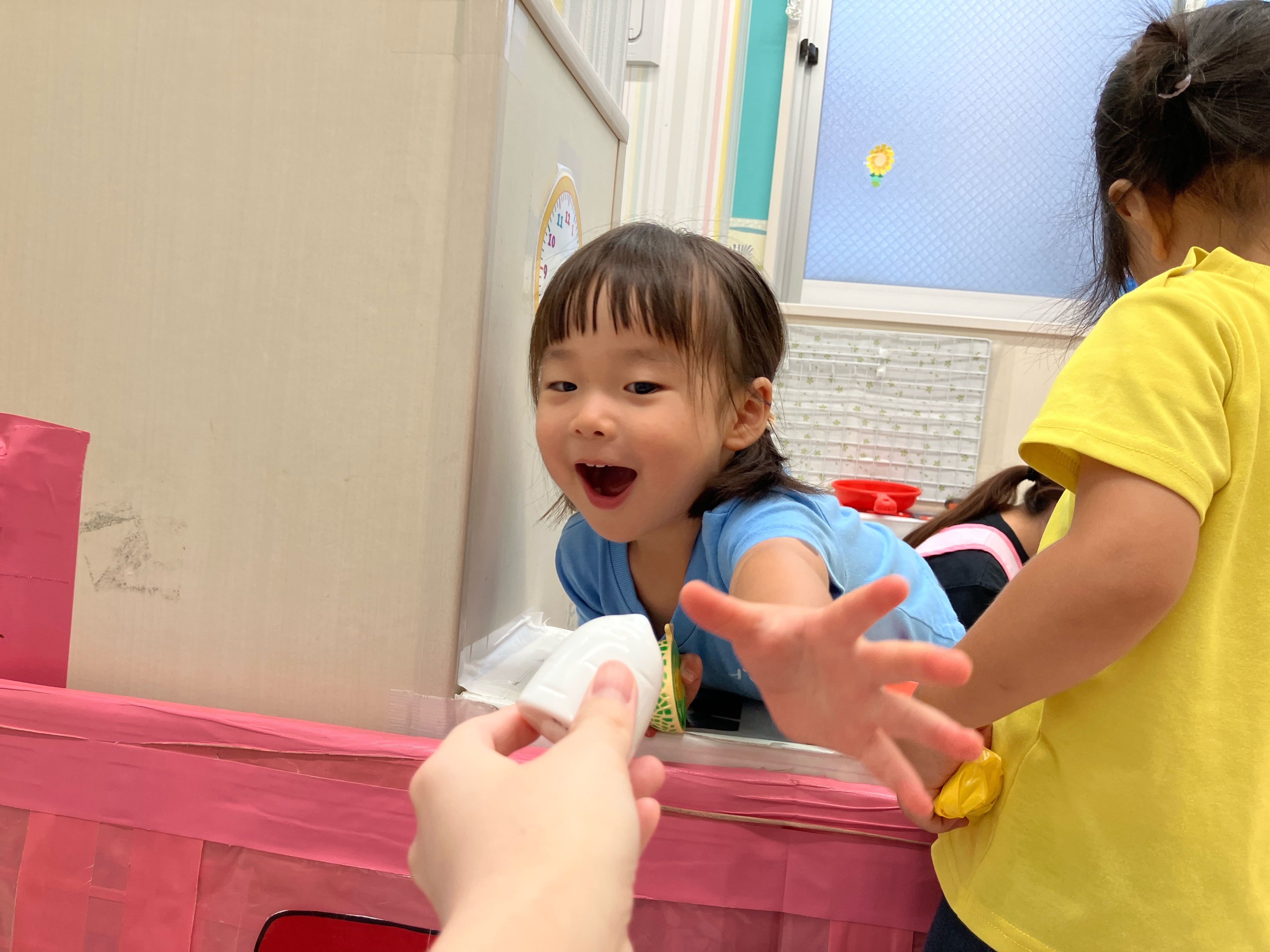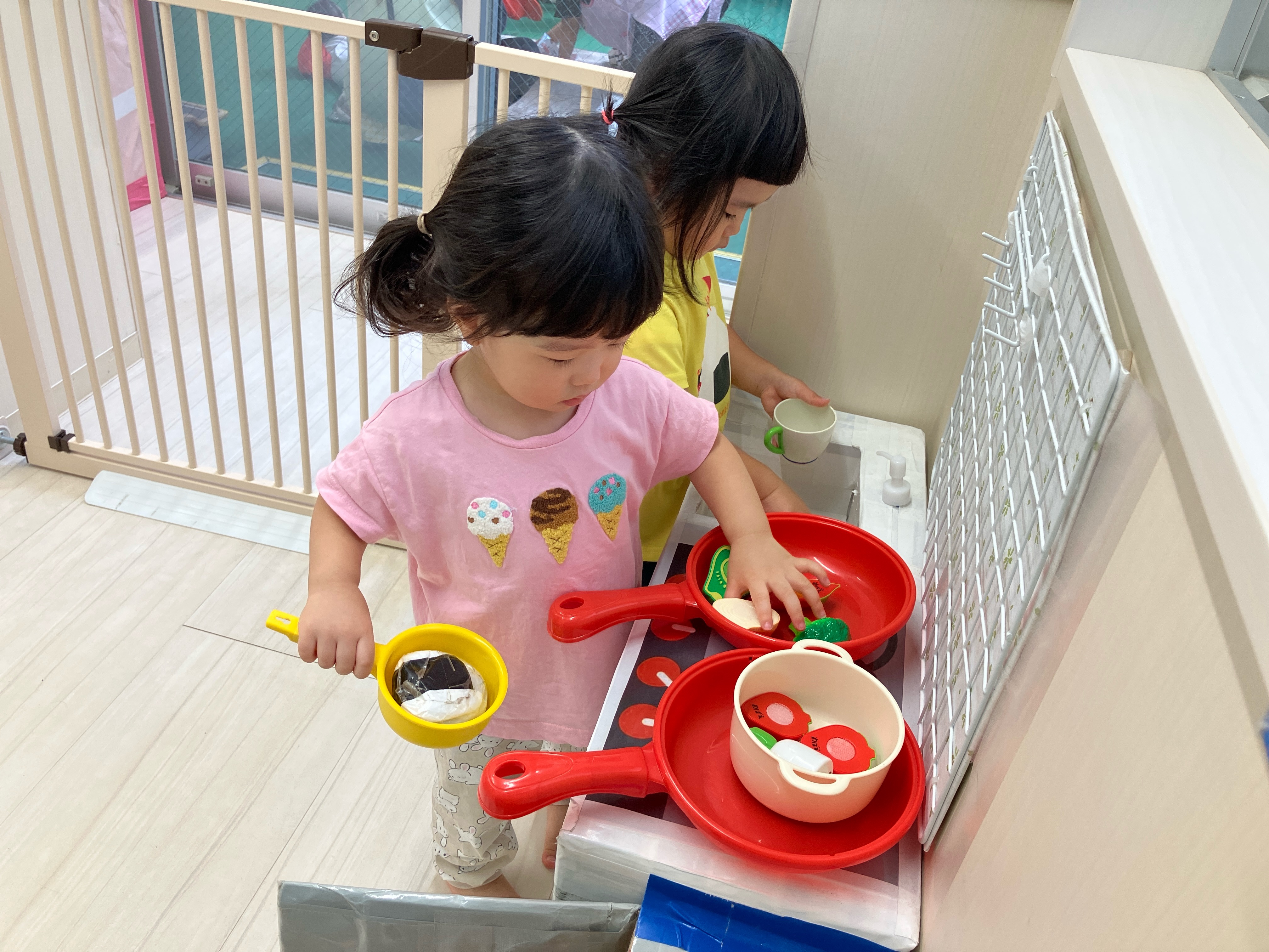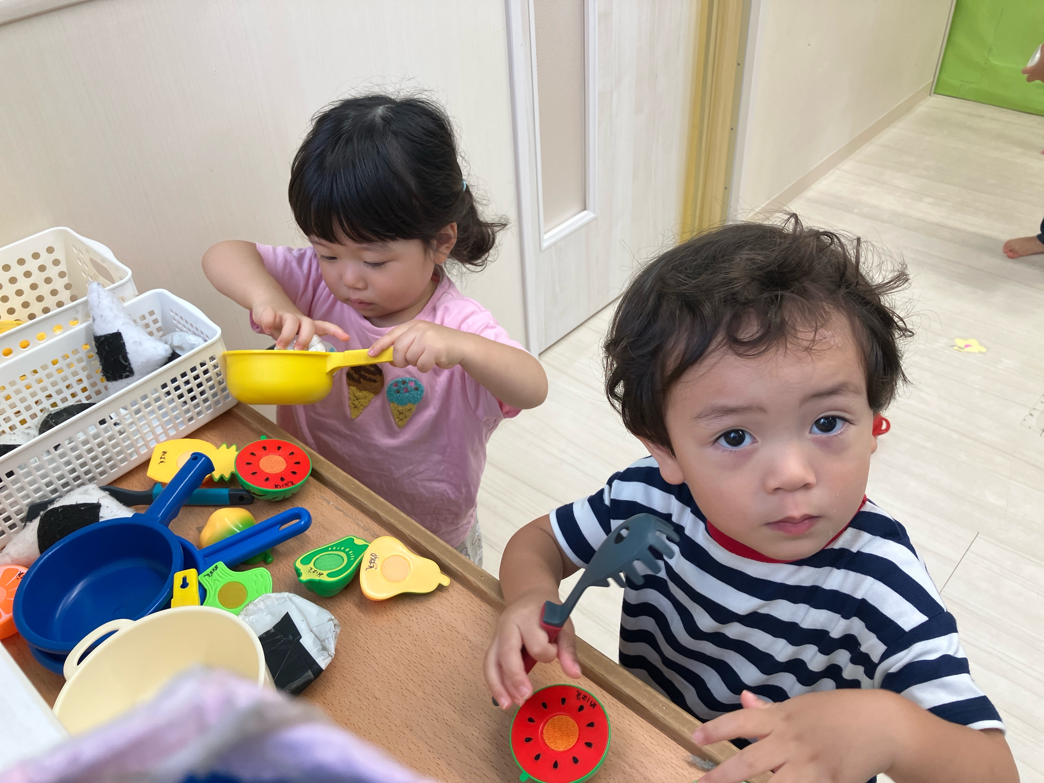「あむあむ、美味しい」と食べるふりが上手な子どもたちです。