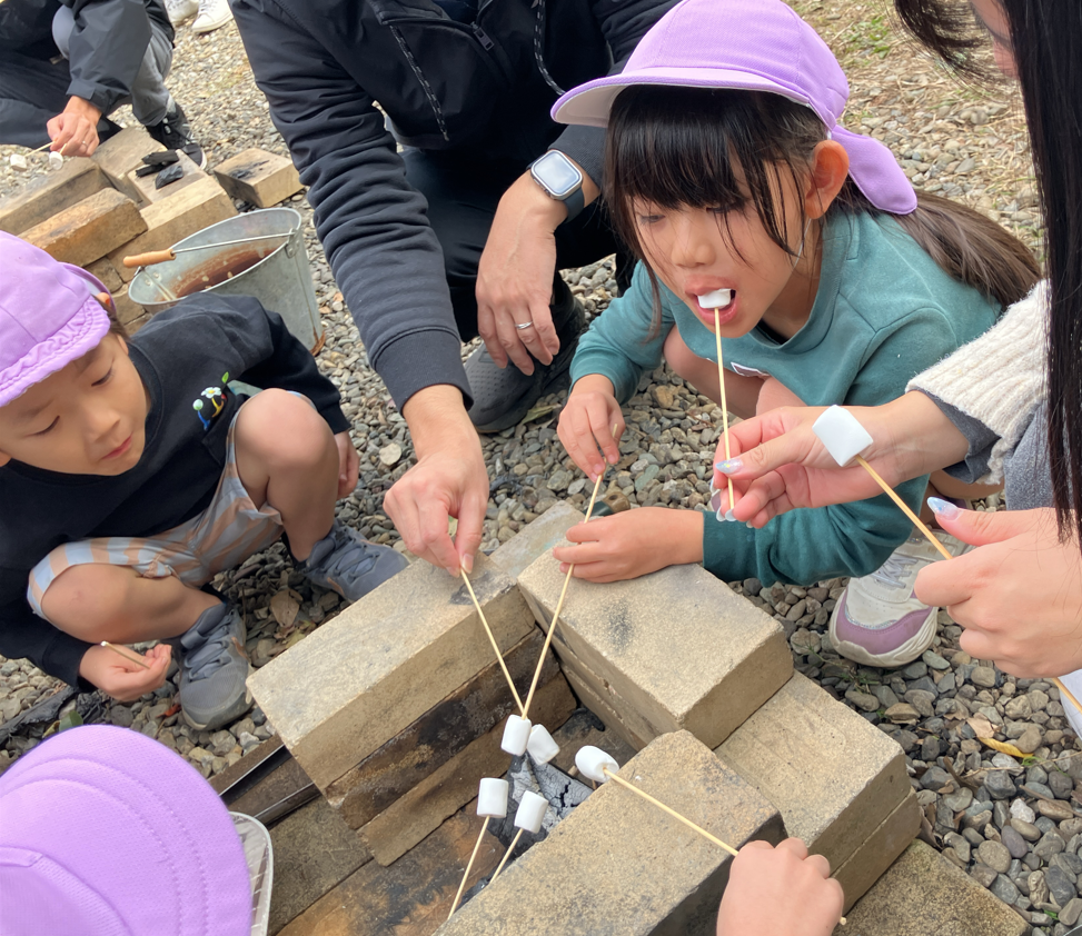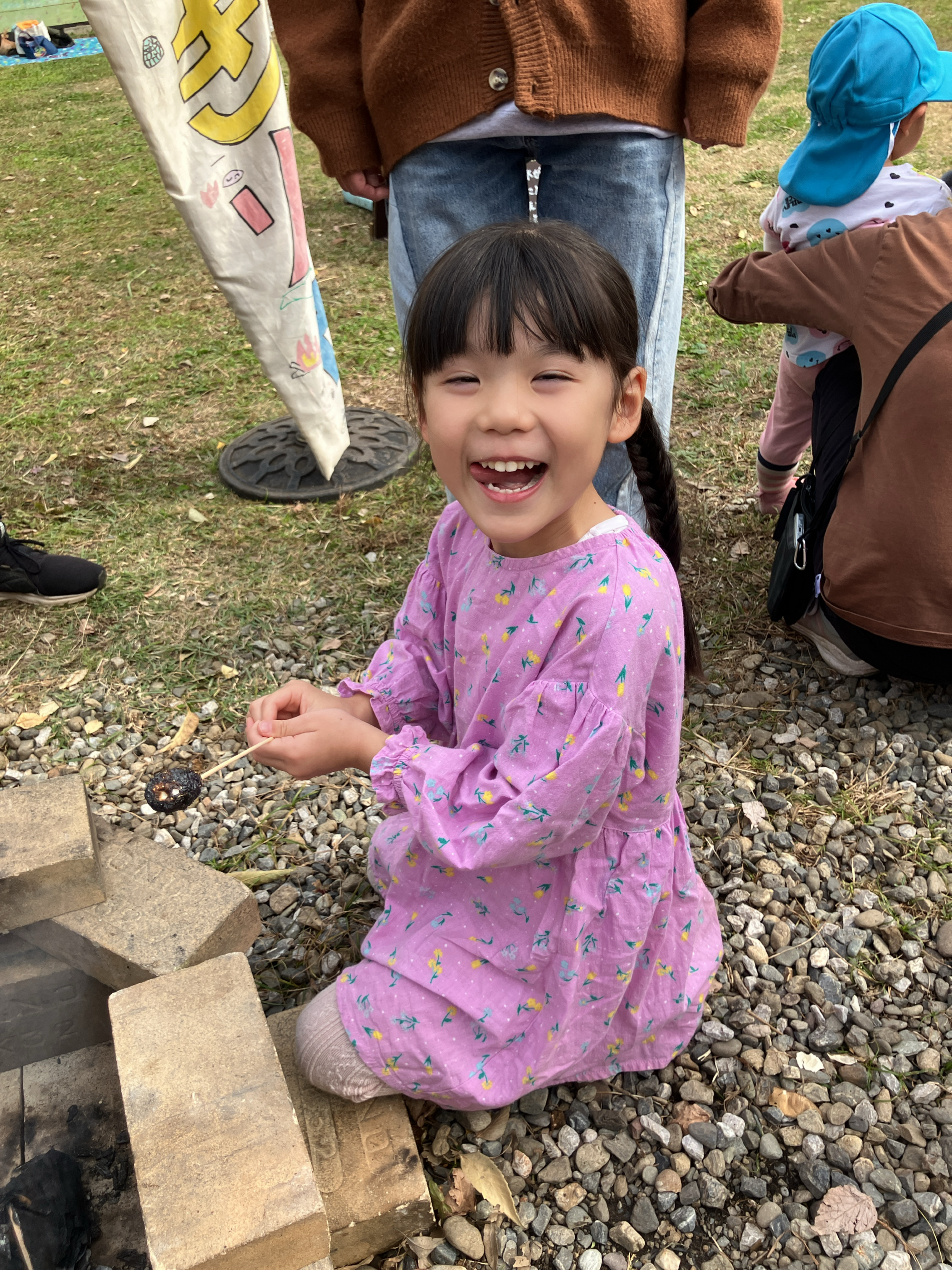 無事に火が着いて、焼きマシュマロ!火起こししてたのは