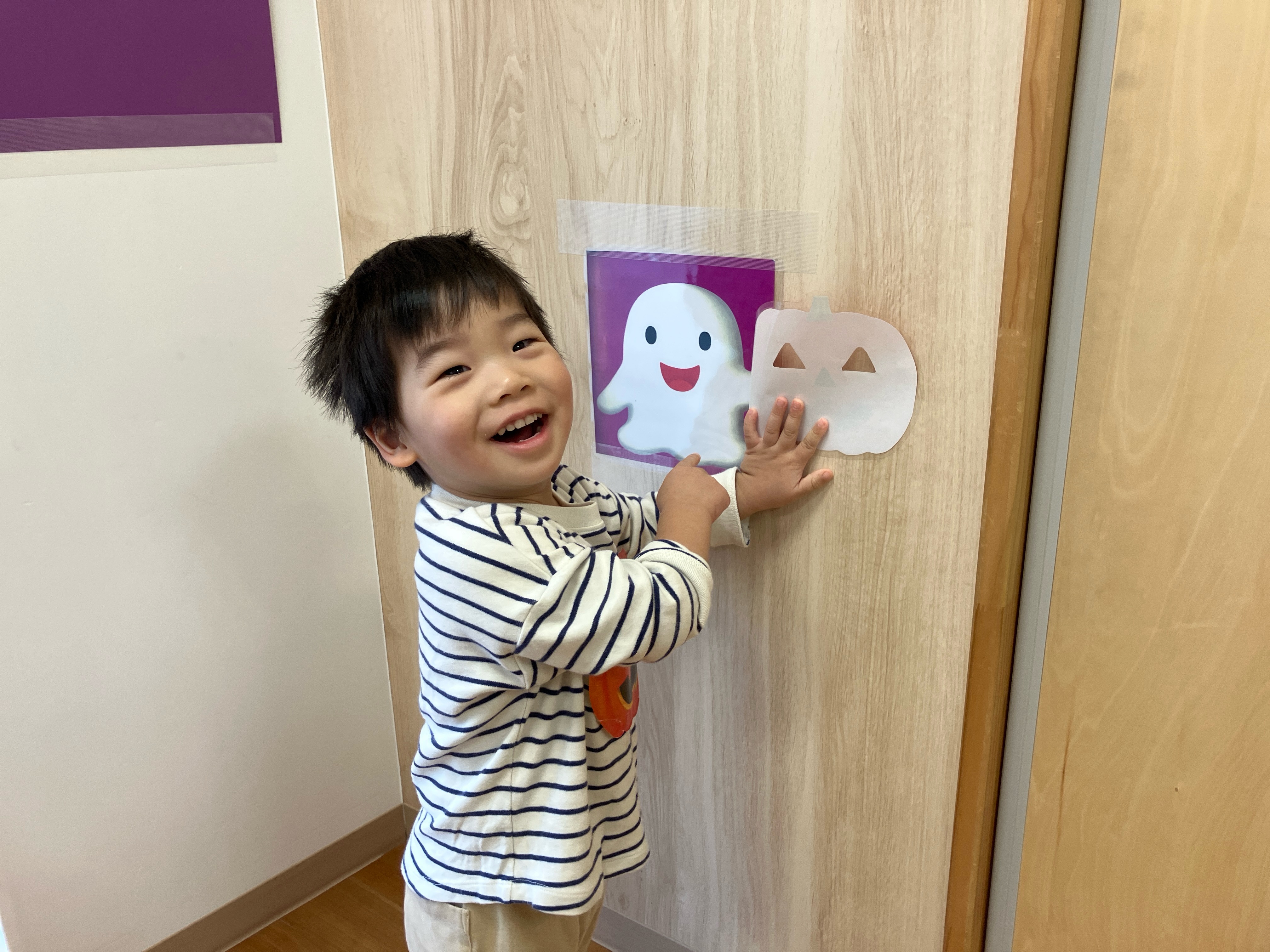 早めに保育園に戻ると、お部屋におばけが隠れていまし