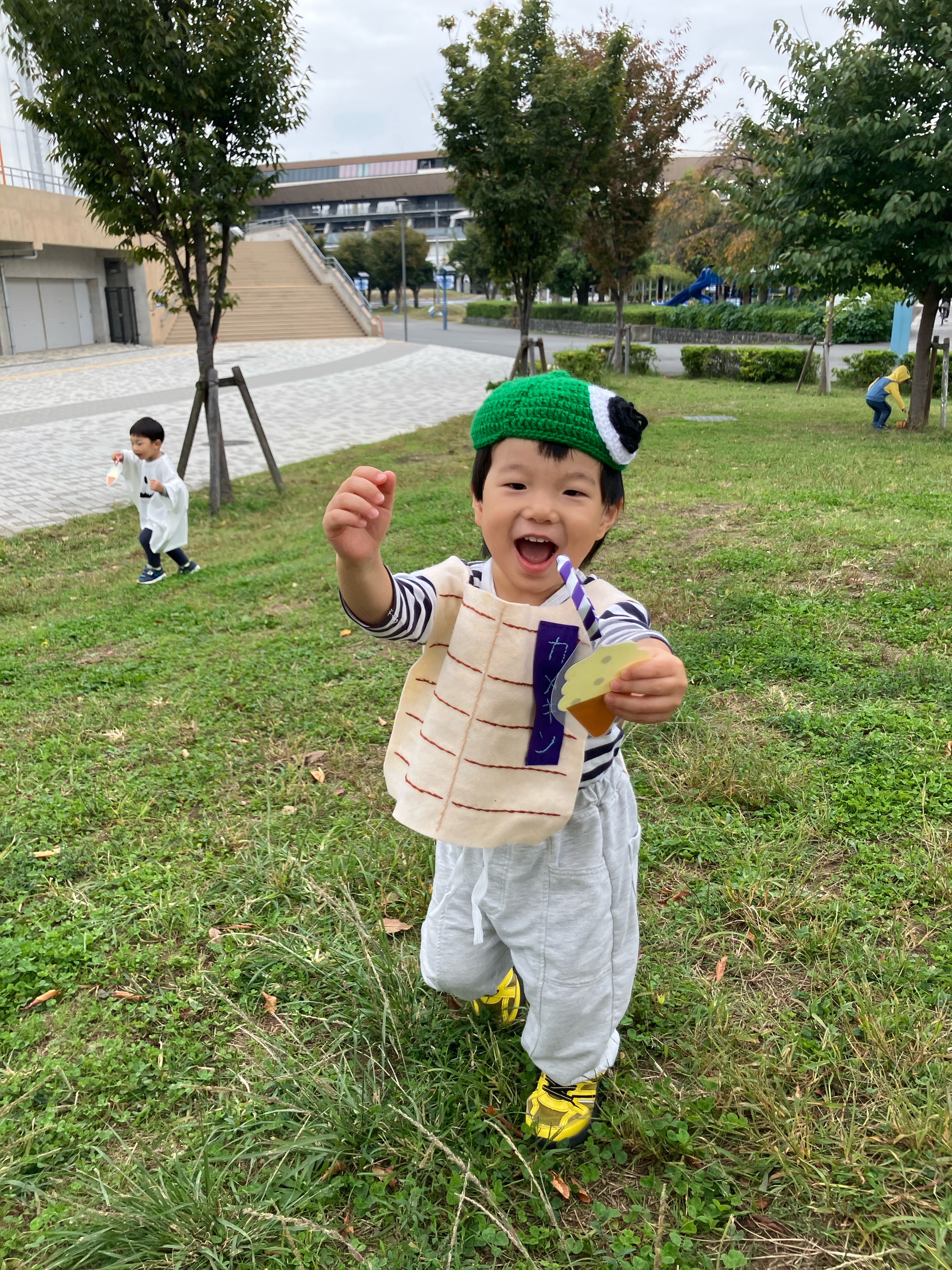 ひかり組は衣装を着て近くの芝生へ!![]()