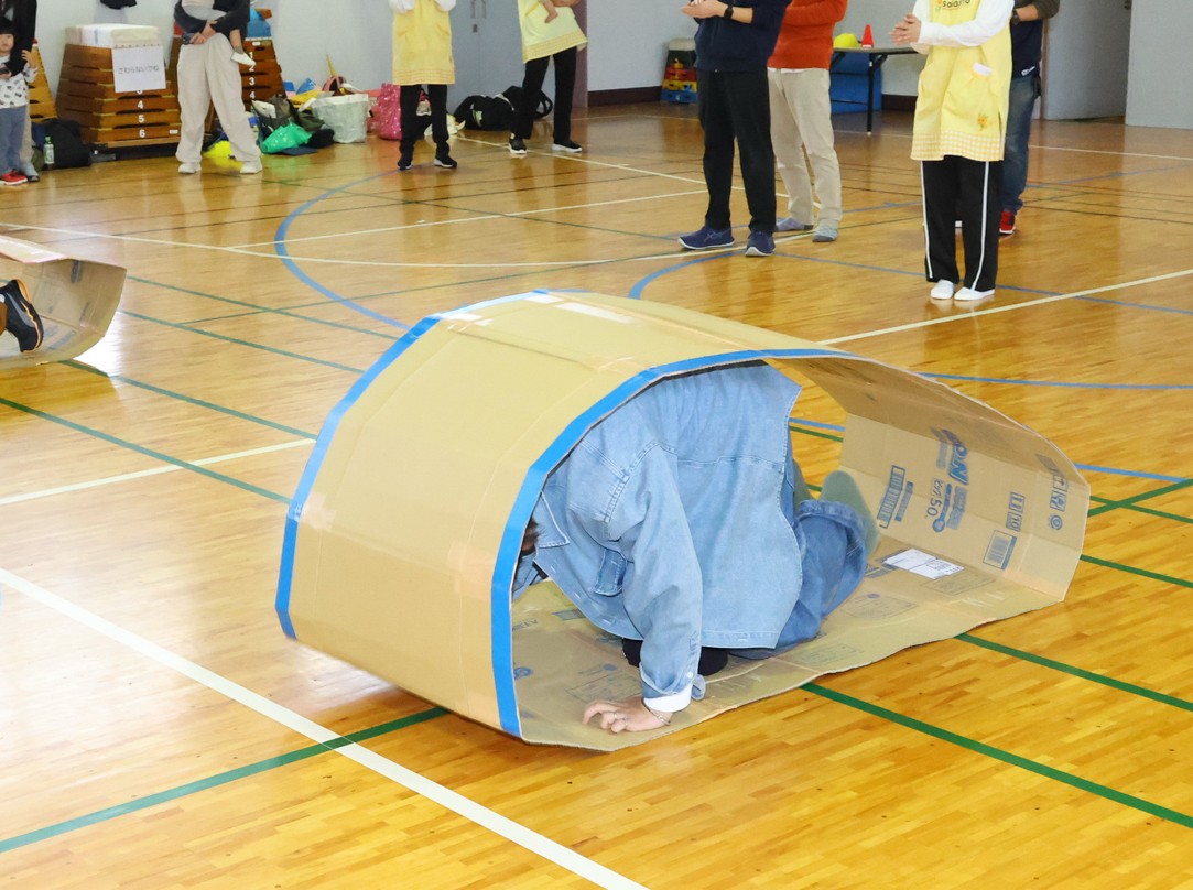 子どもたちの遊びを保護者の方にも体験していただきます。