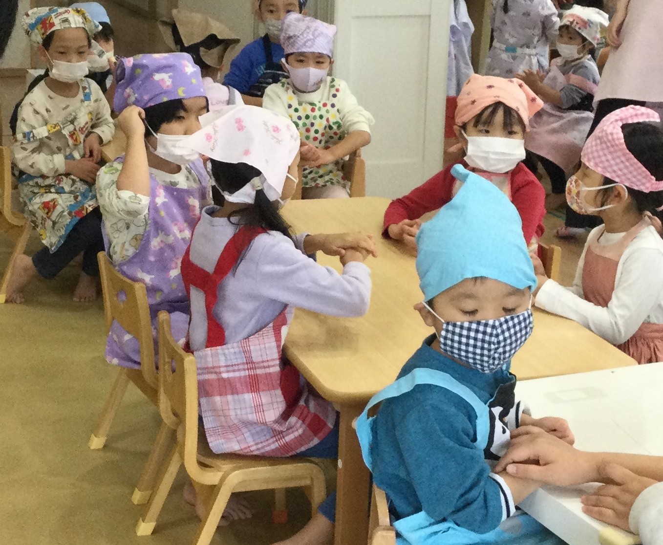 エプロン、三角巾、マスクみんな準備OKです!