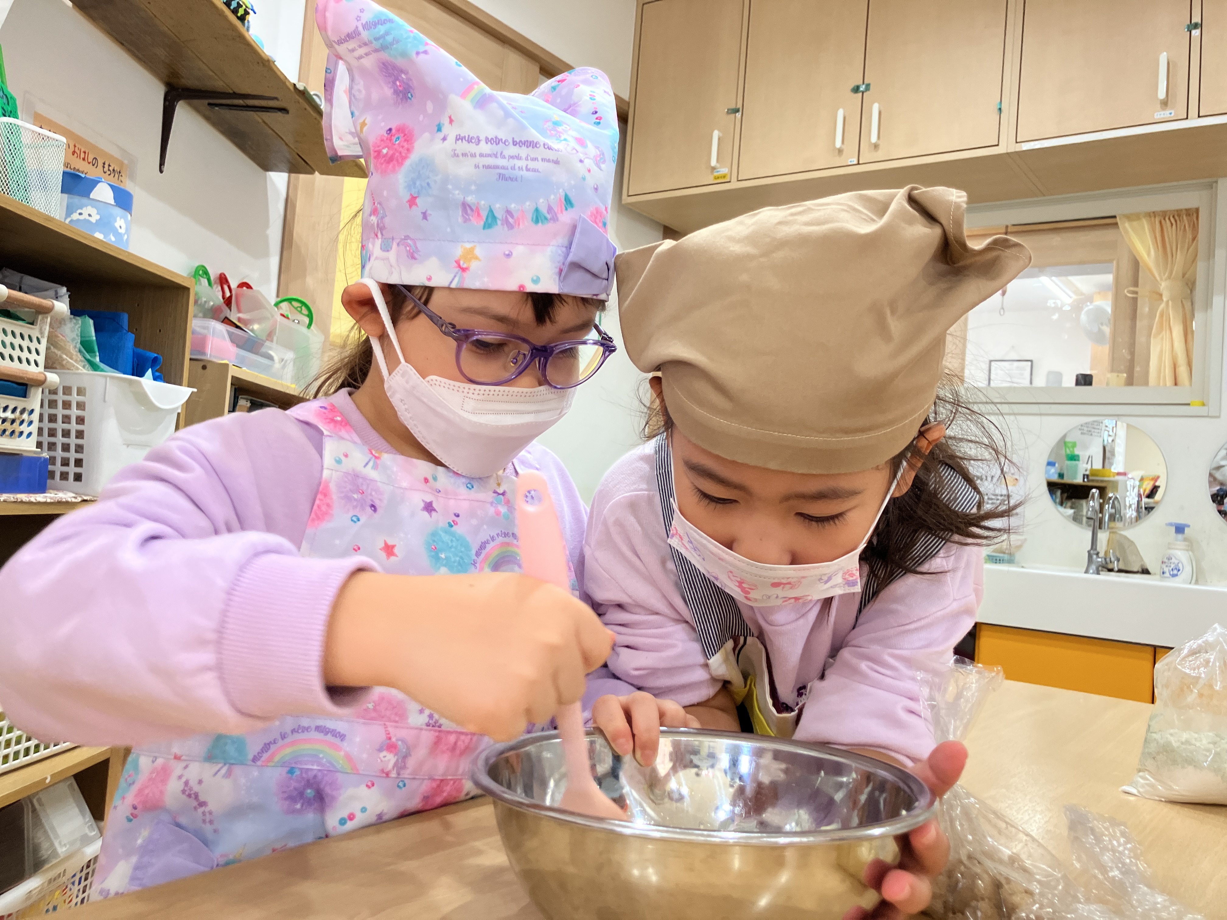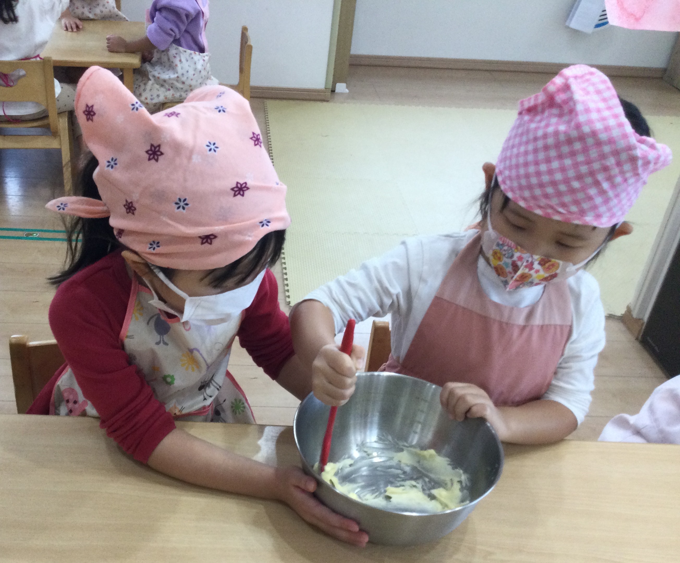 しっかり混ざったかな?「この位で大丈夫かな?」「うん、いいね!」