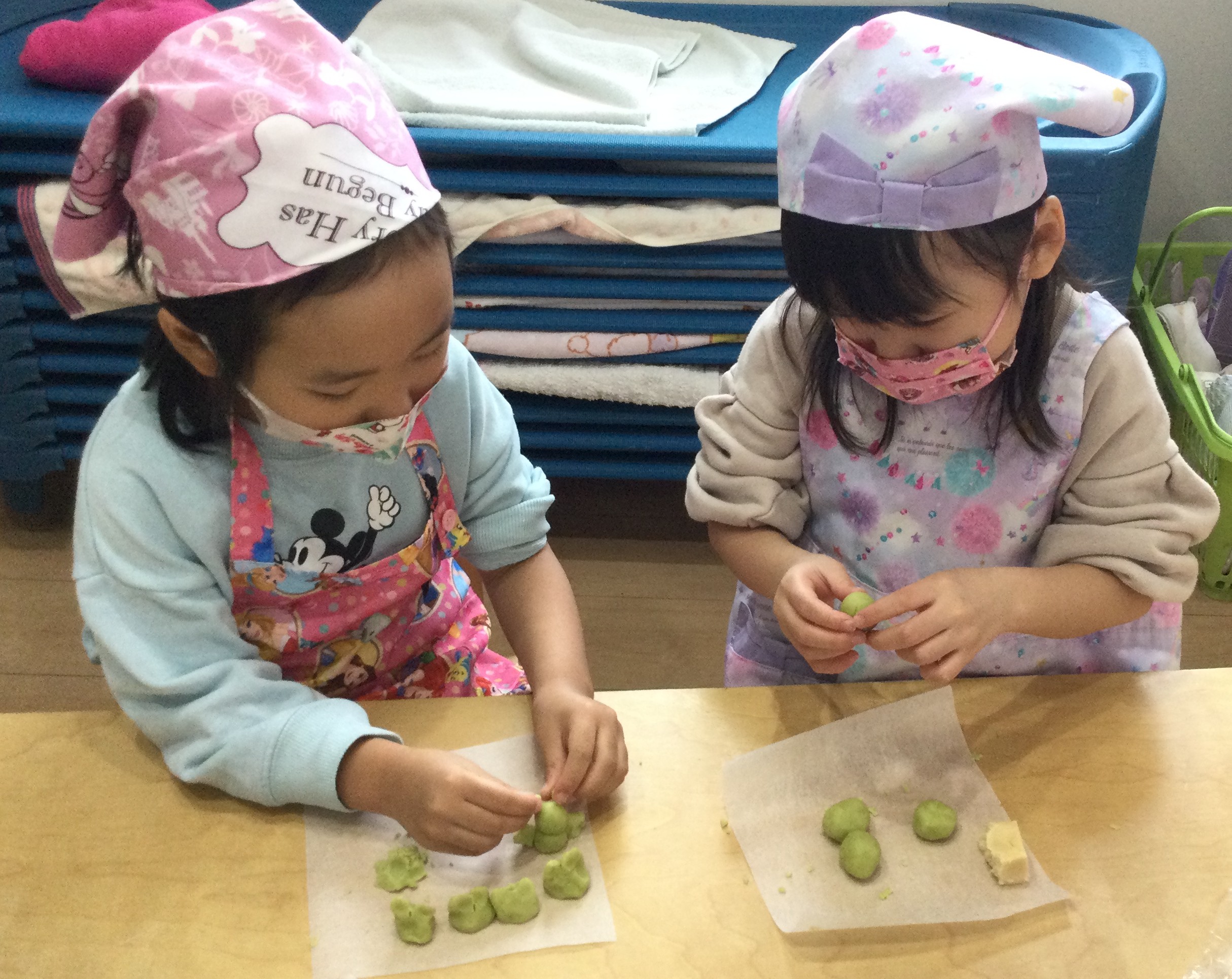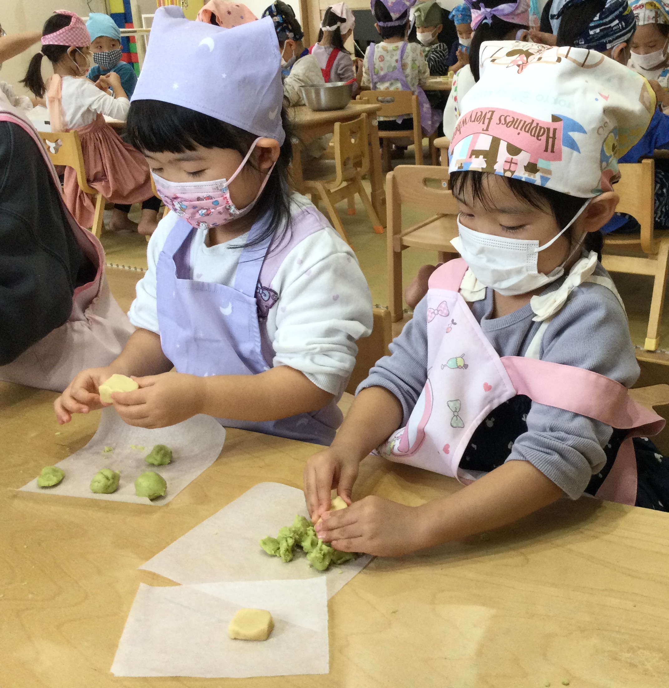 11月の食育は幼児クラスで、『抹茶クッキー作り』を行いました。