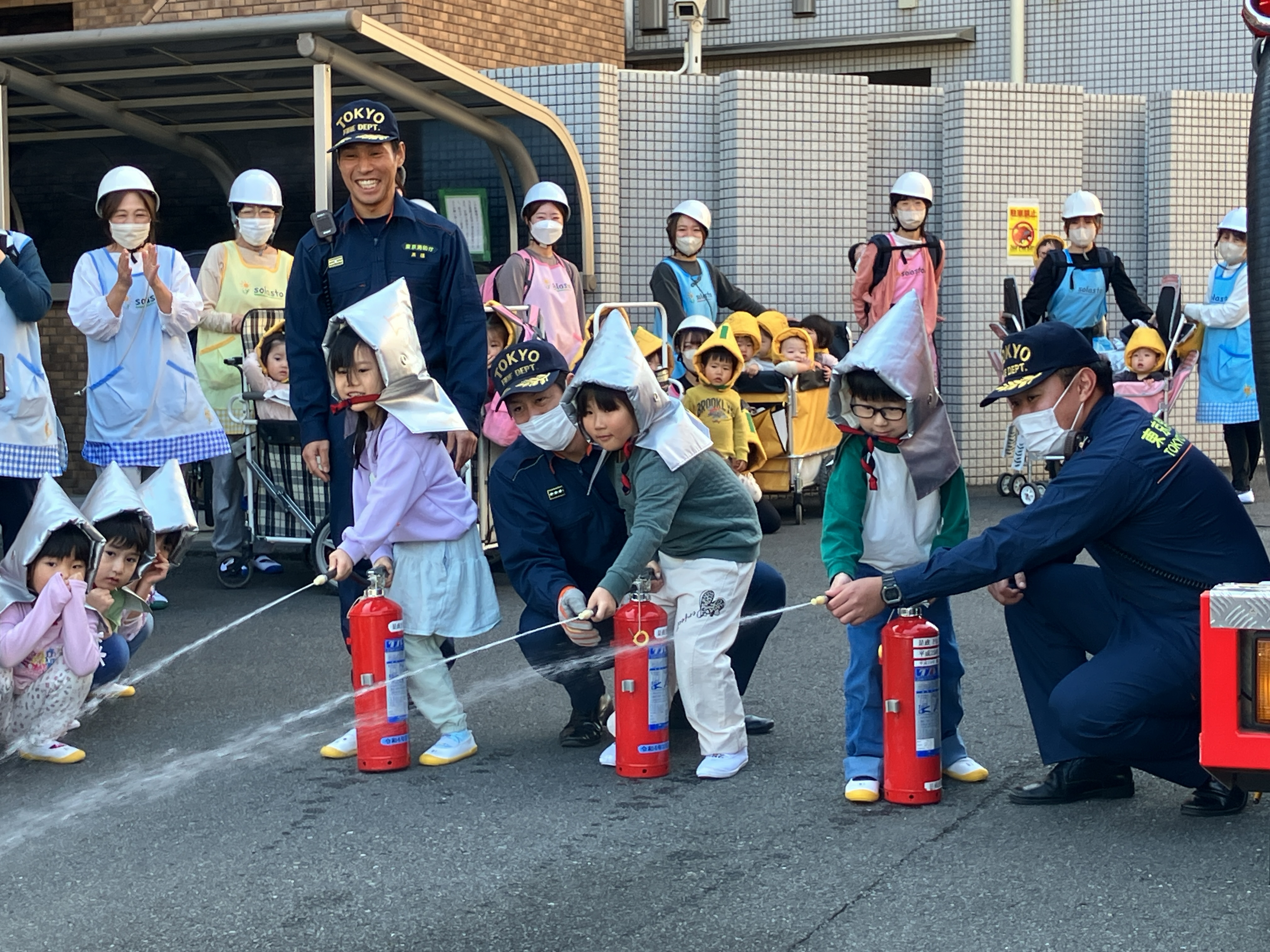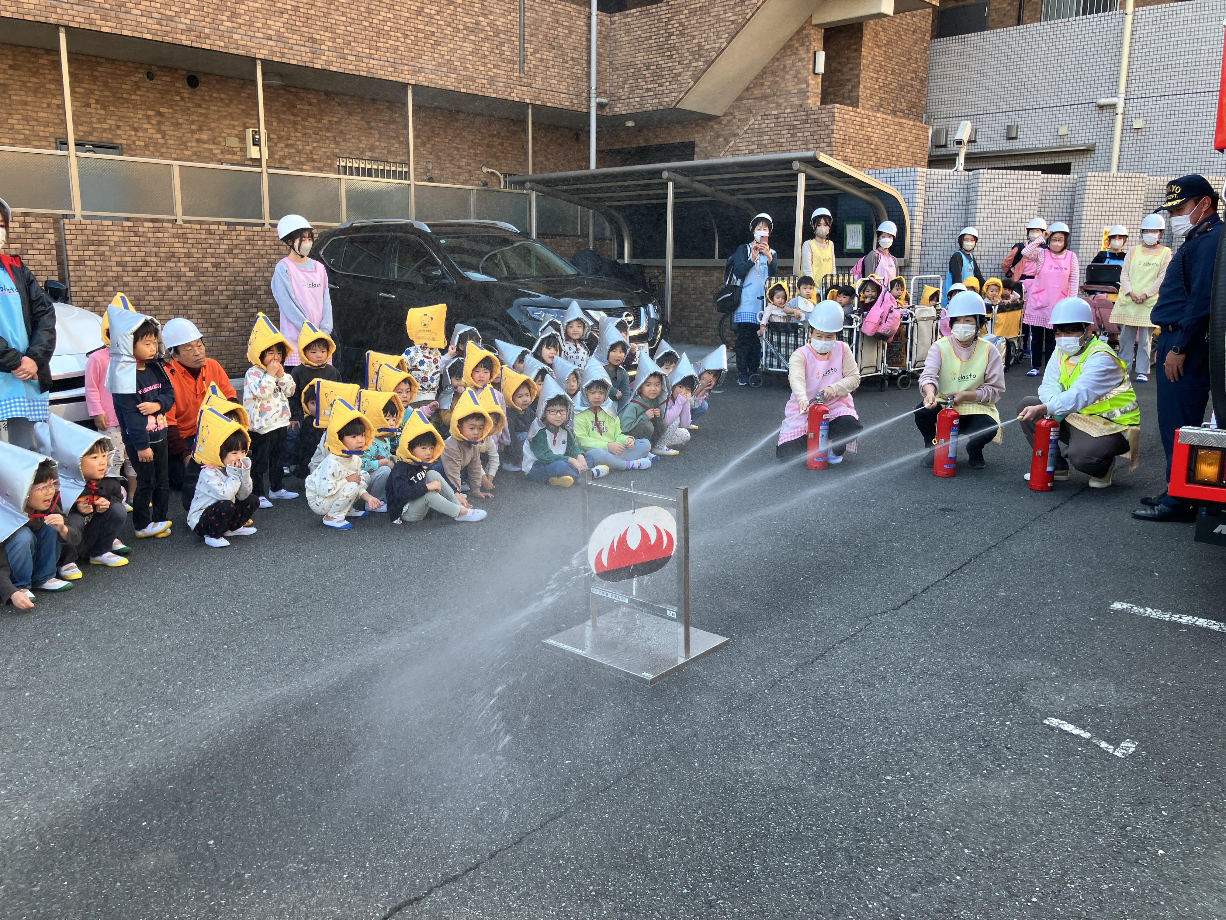 たいようぐみ(5歳児クラス)のお友達も、消火訓練を体験!