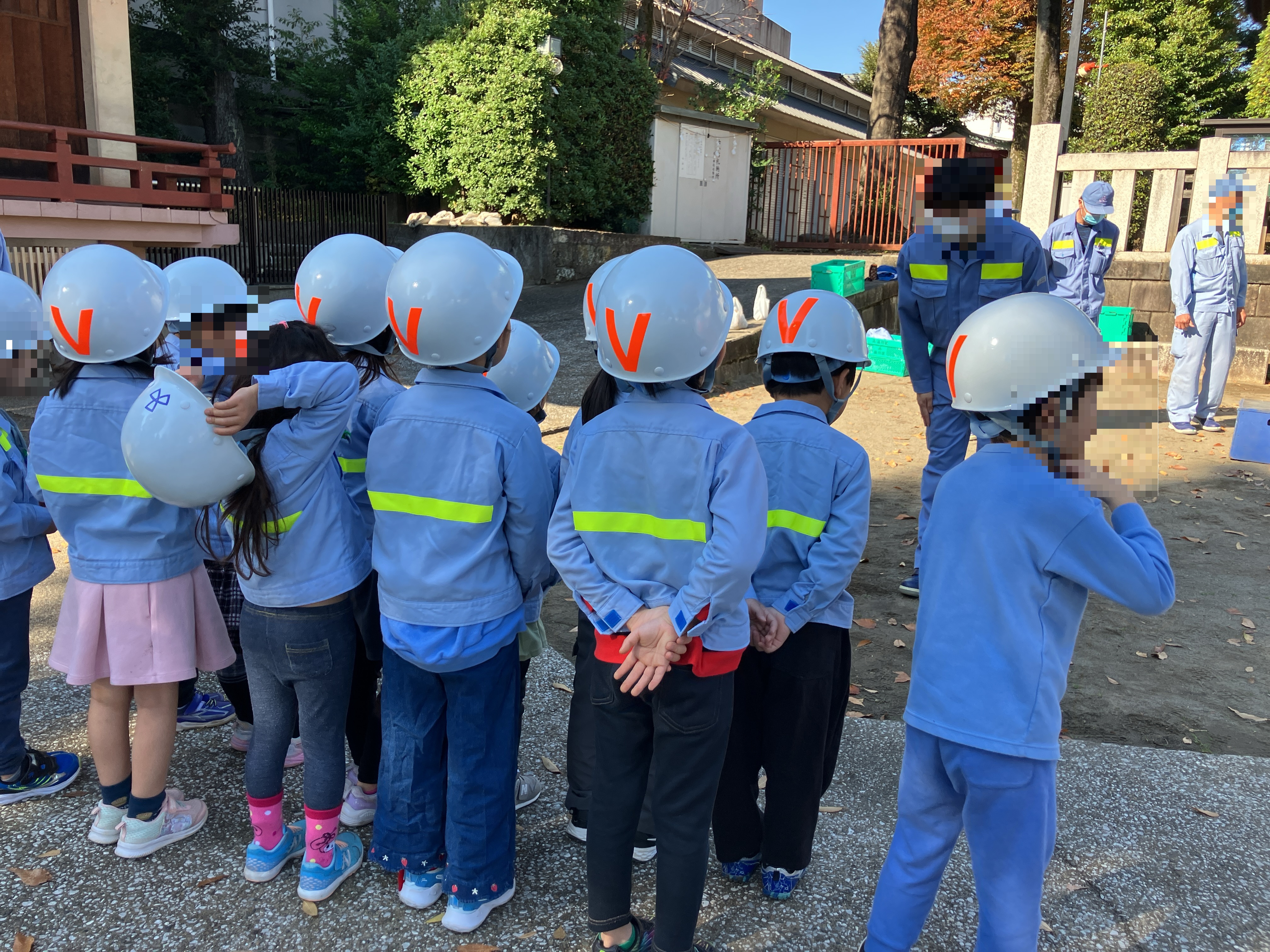 清掃車のしくみが分かる"スケルトン車"を体験する前に制服も着させてもらい、嬉しそうな表情を浮かべた子どもたち。スケルトン車へ出発です。