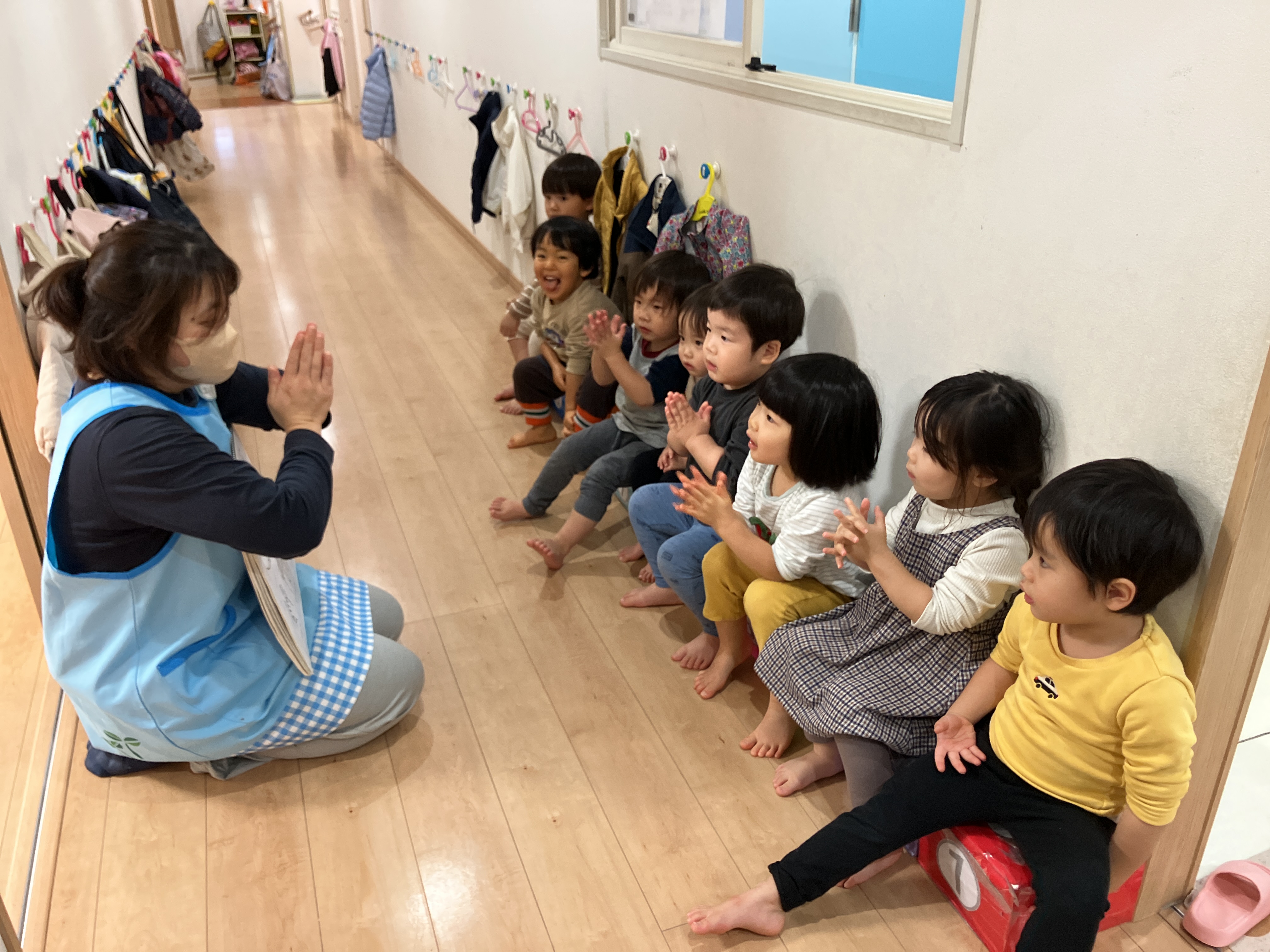 絵本の中にも手を洗う動作が出てくるのでみんなでゴシゴシ~と真似っこ。