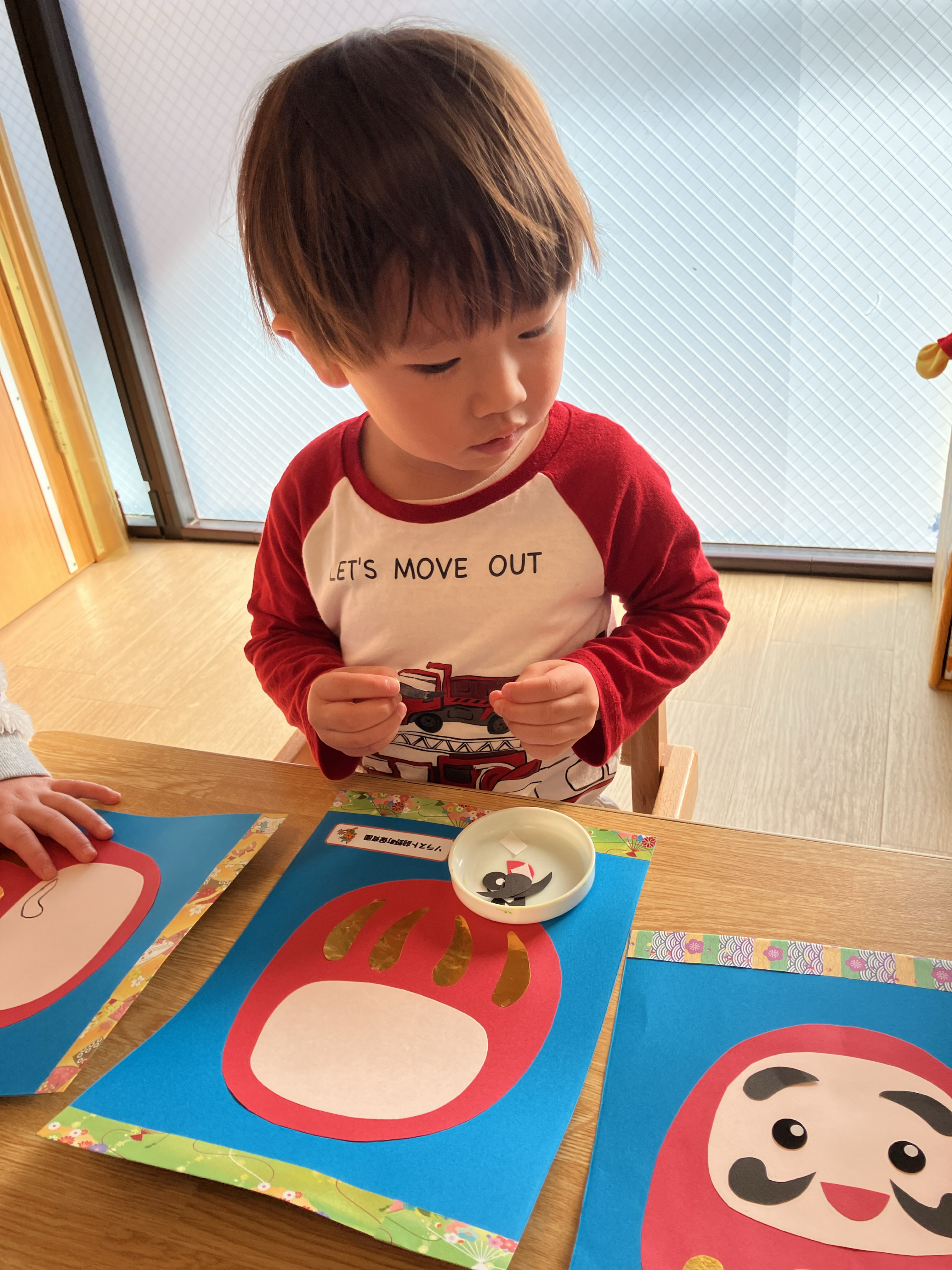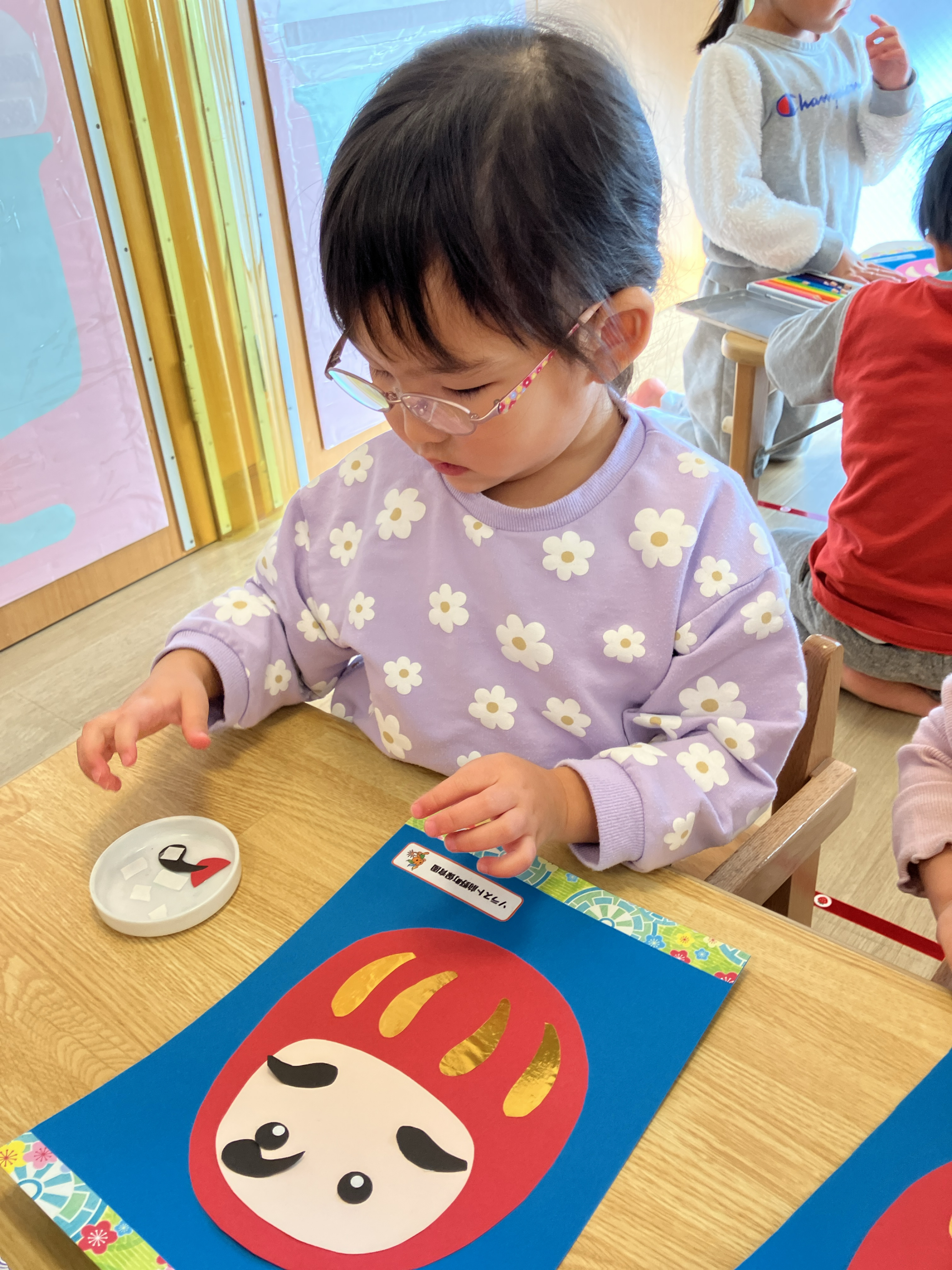 だるま製作では黙々と作品作りに取り組む子どもたち。