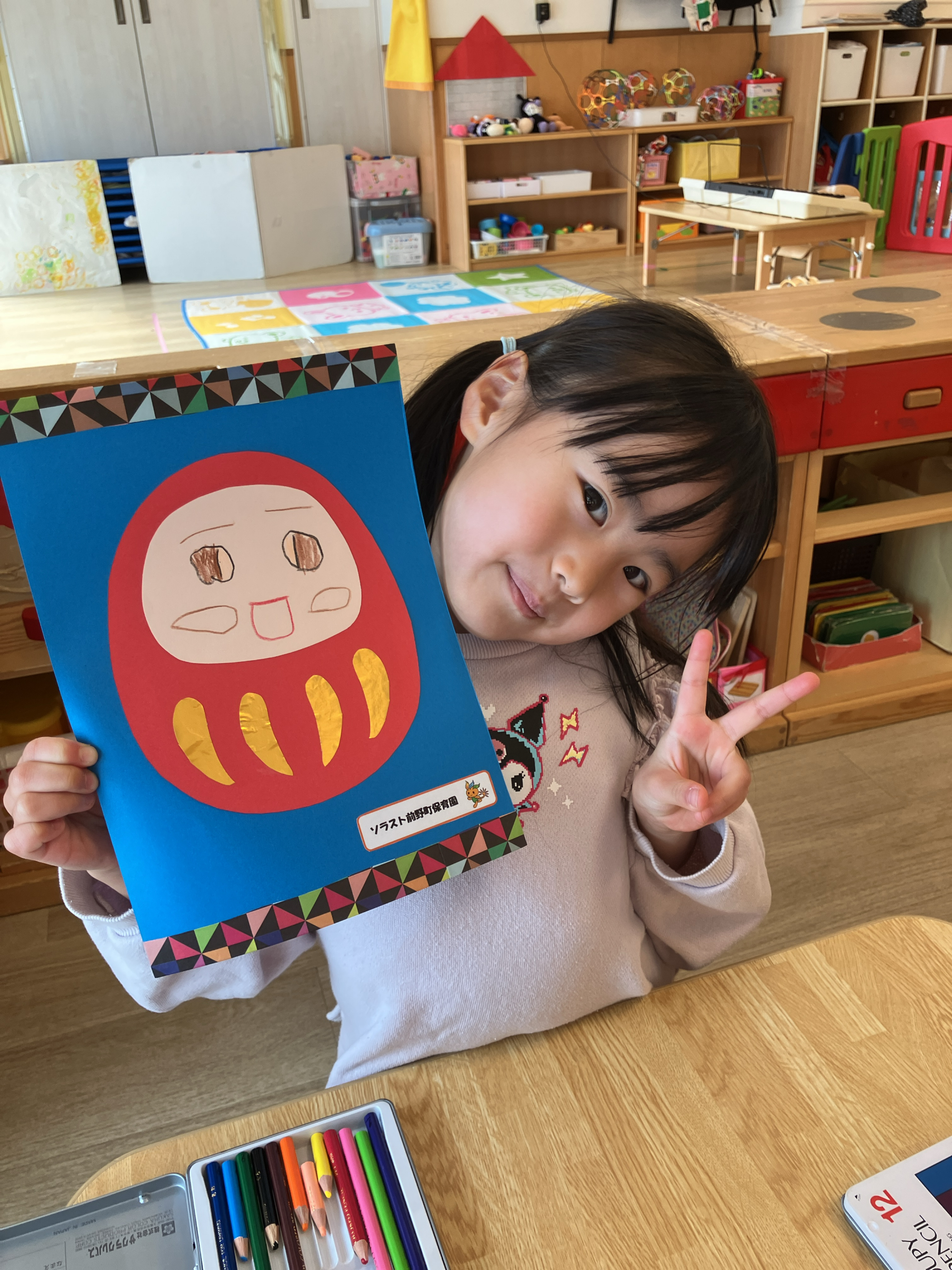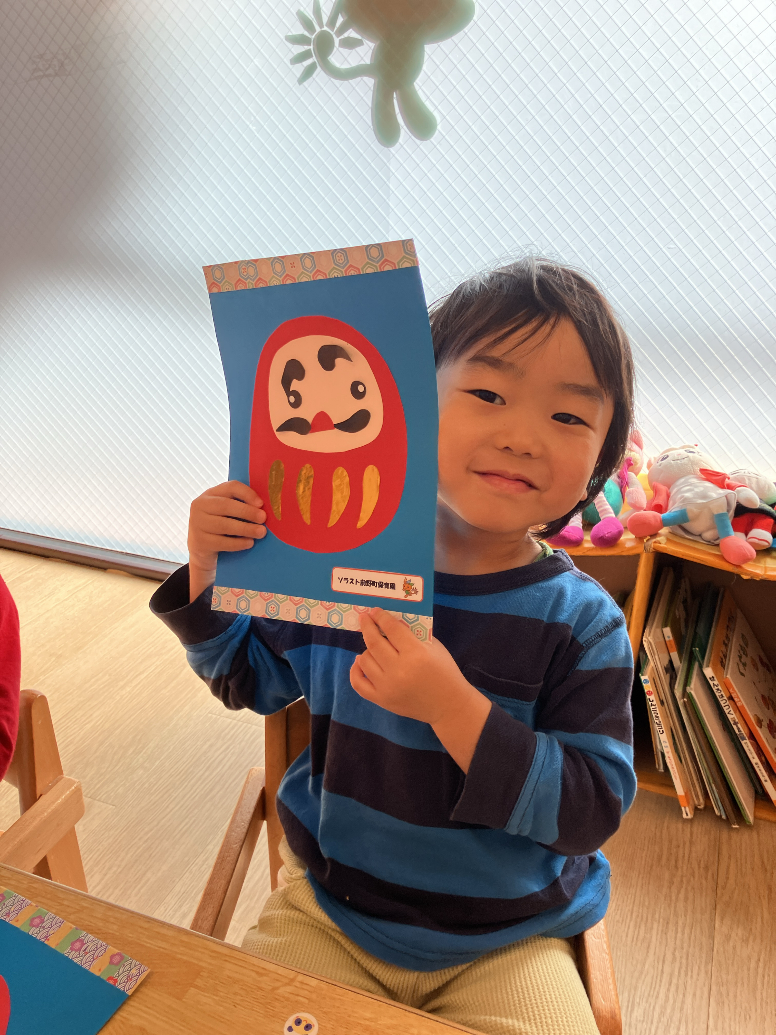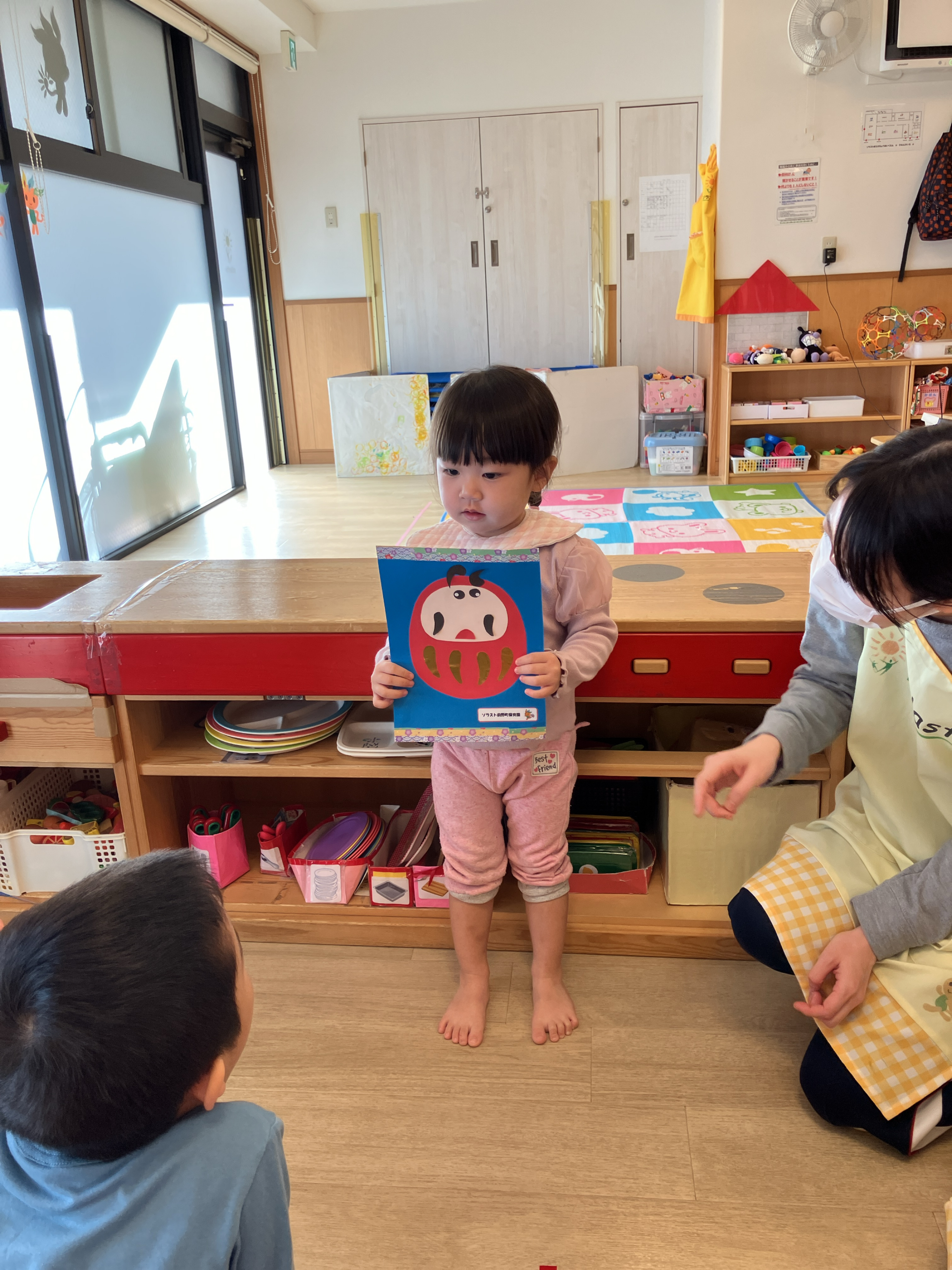 園児と一緒にだるまの製作と楽器遊びを楽しみました。