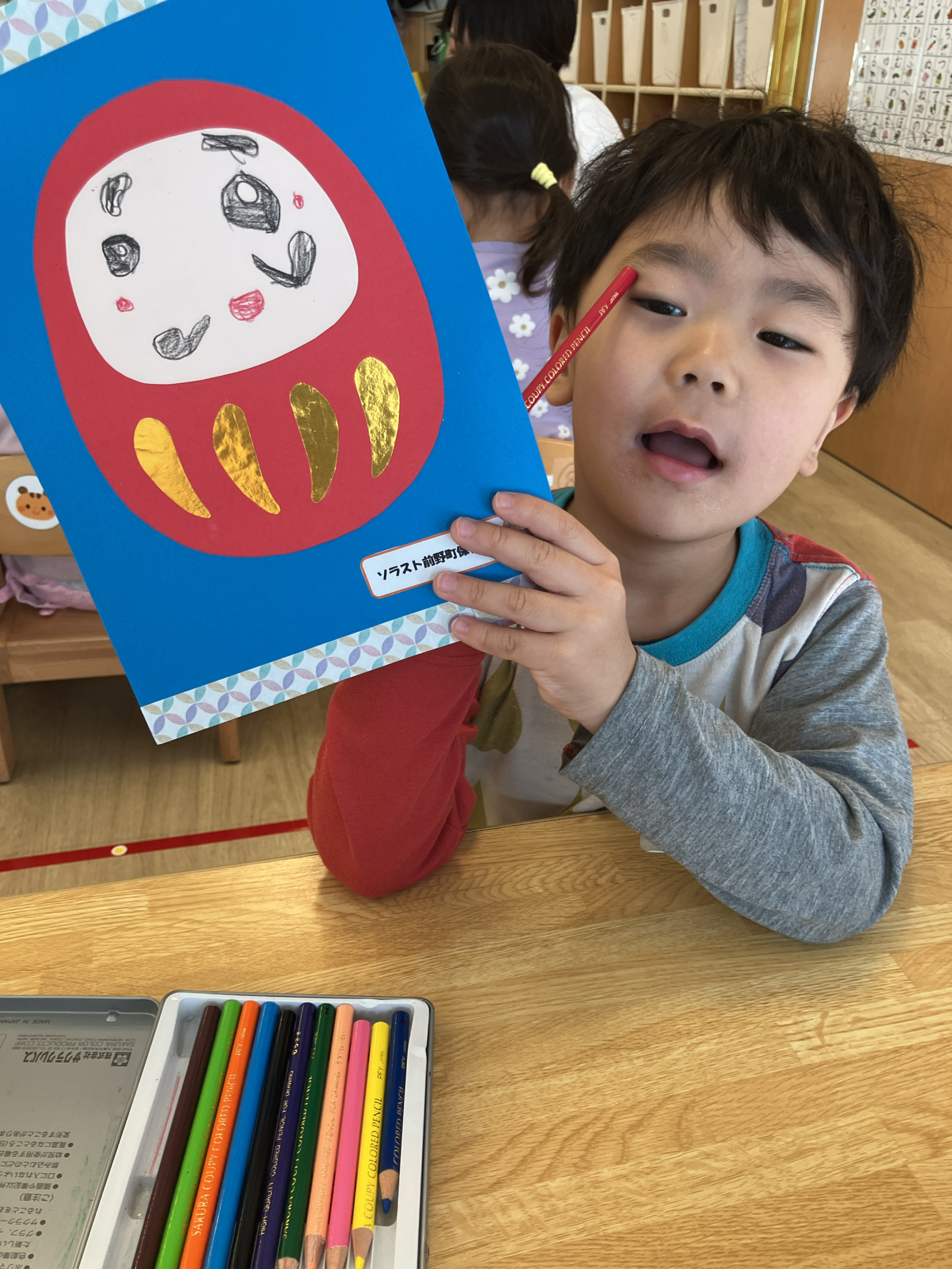 顔を描いて自分だけのだるまを作りました!