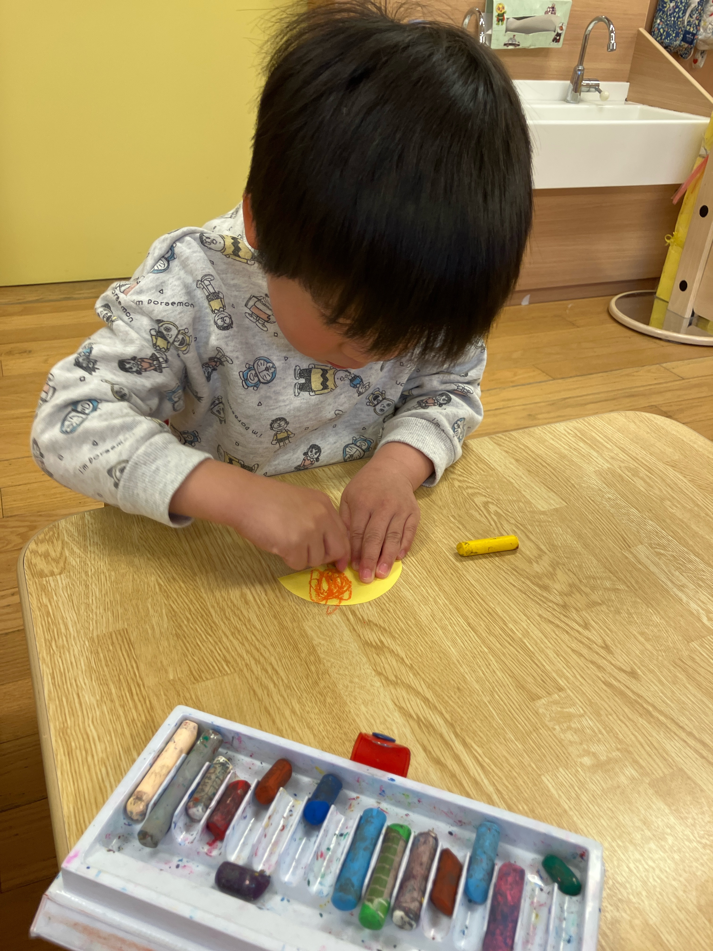 クレヨンを持つこころ組さんの表情は真剣そのもので職人さんのようですね!
