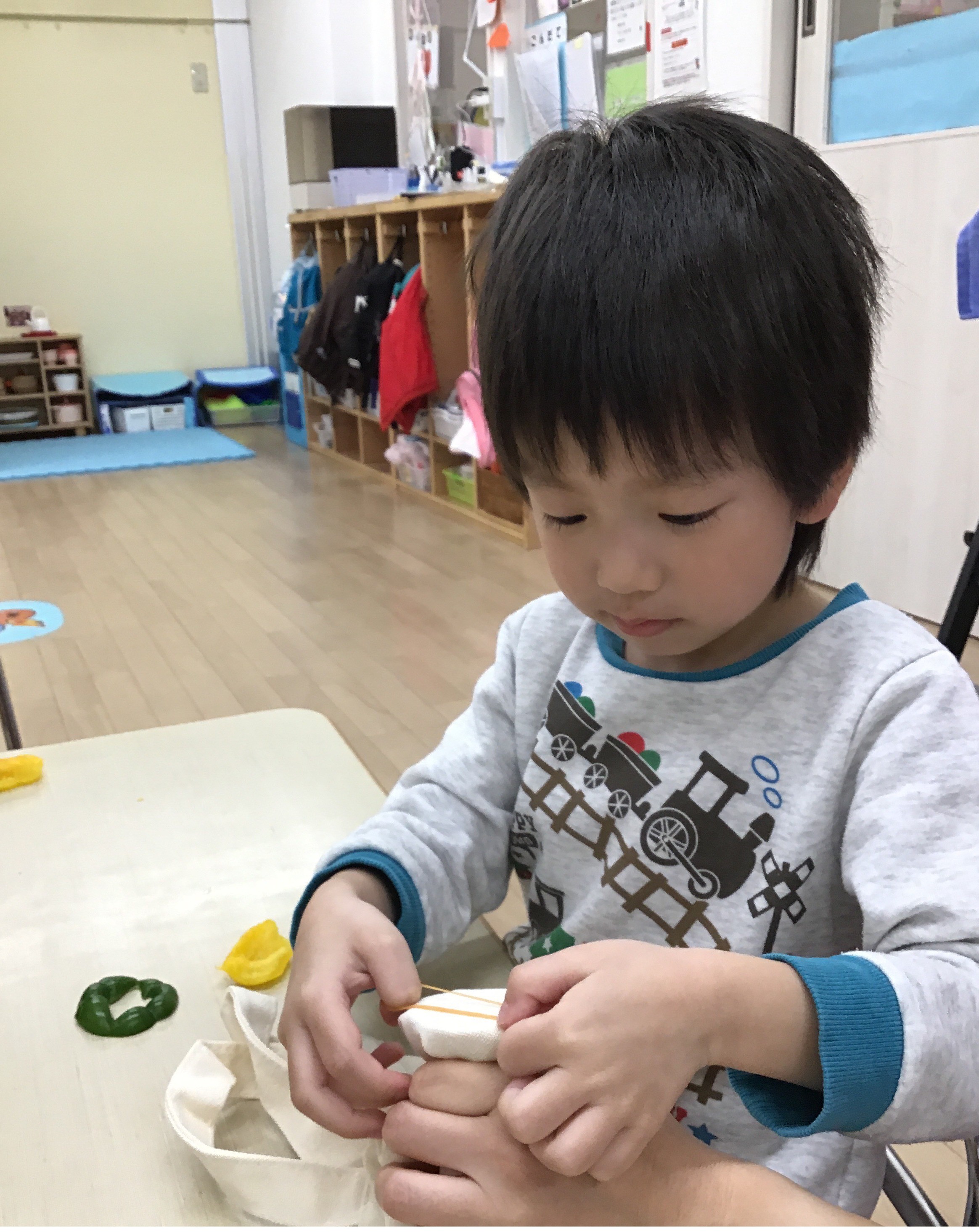 輪ゴムで縛るのは難しいけれど、挑戦しました。