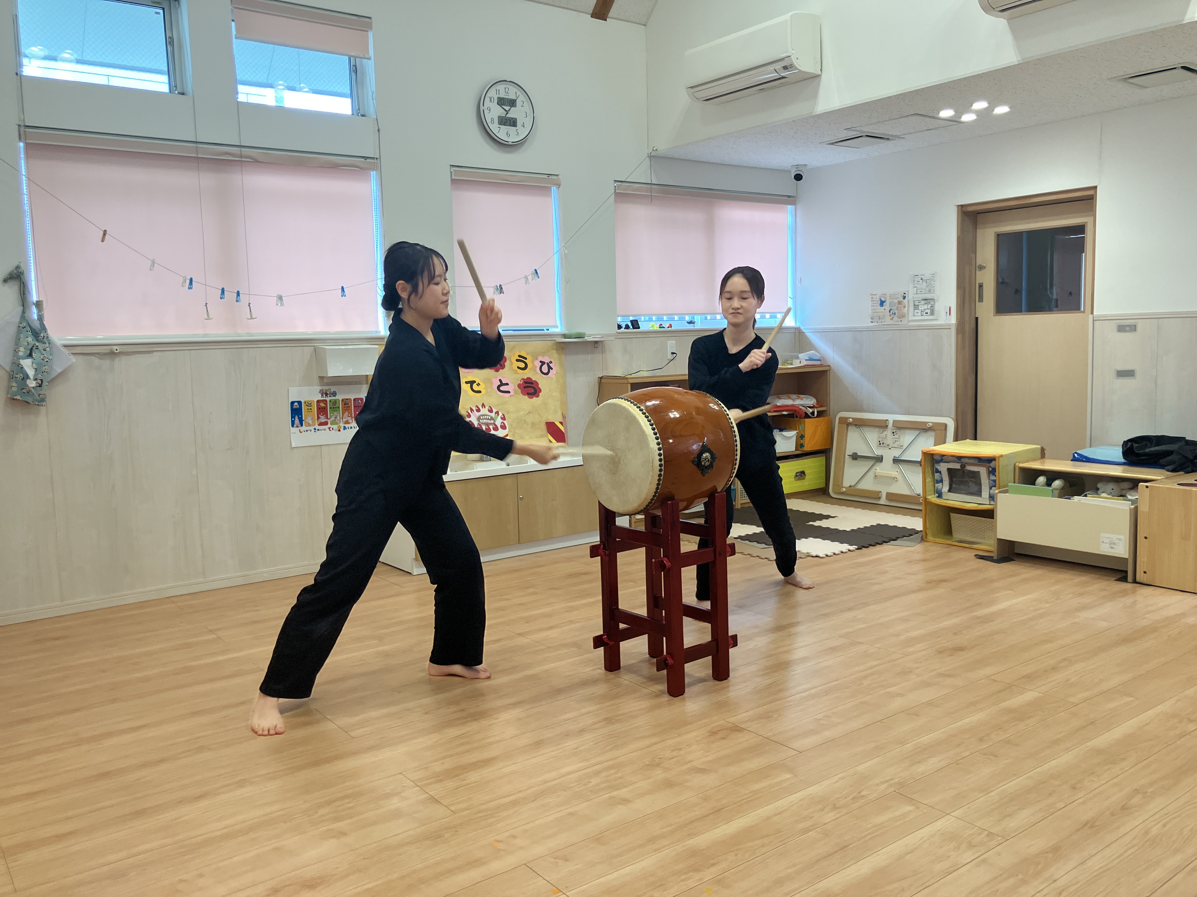 系列園から借りた子ども用の太鼓ですが、音は本物!
