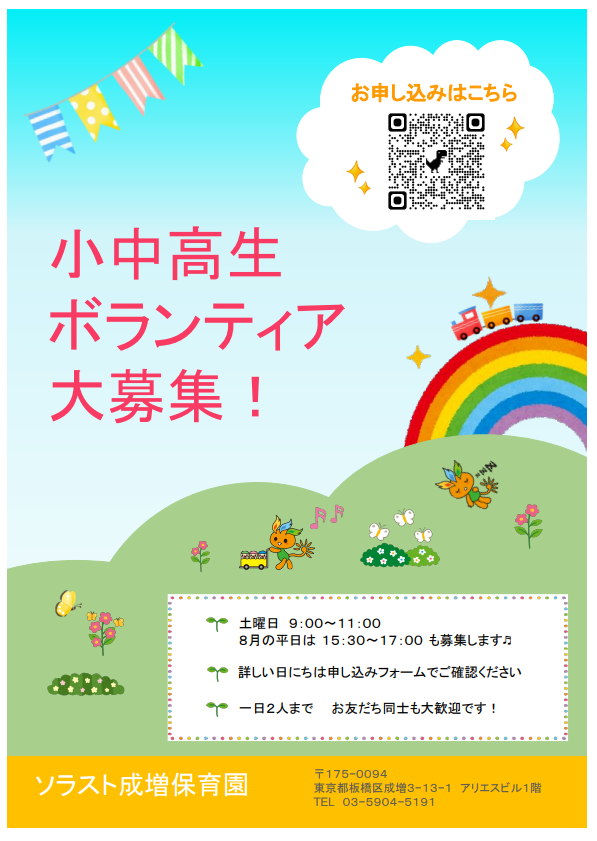 ソラスト成増保育園☆小中高生ボランティア大募集!